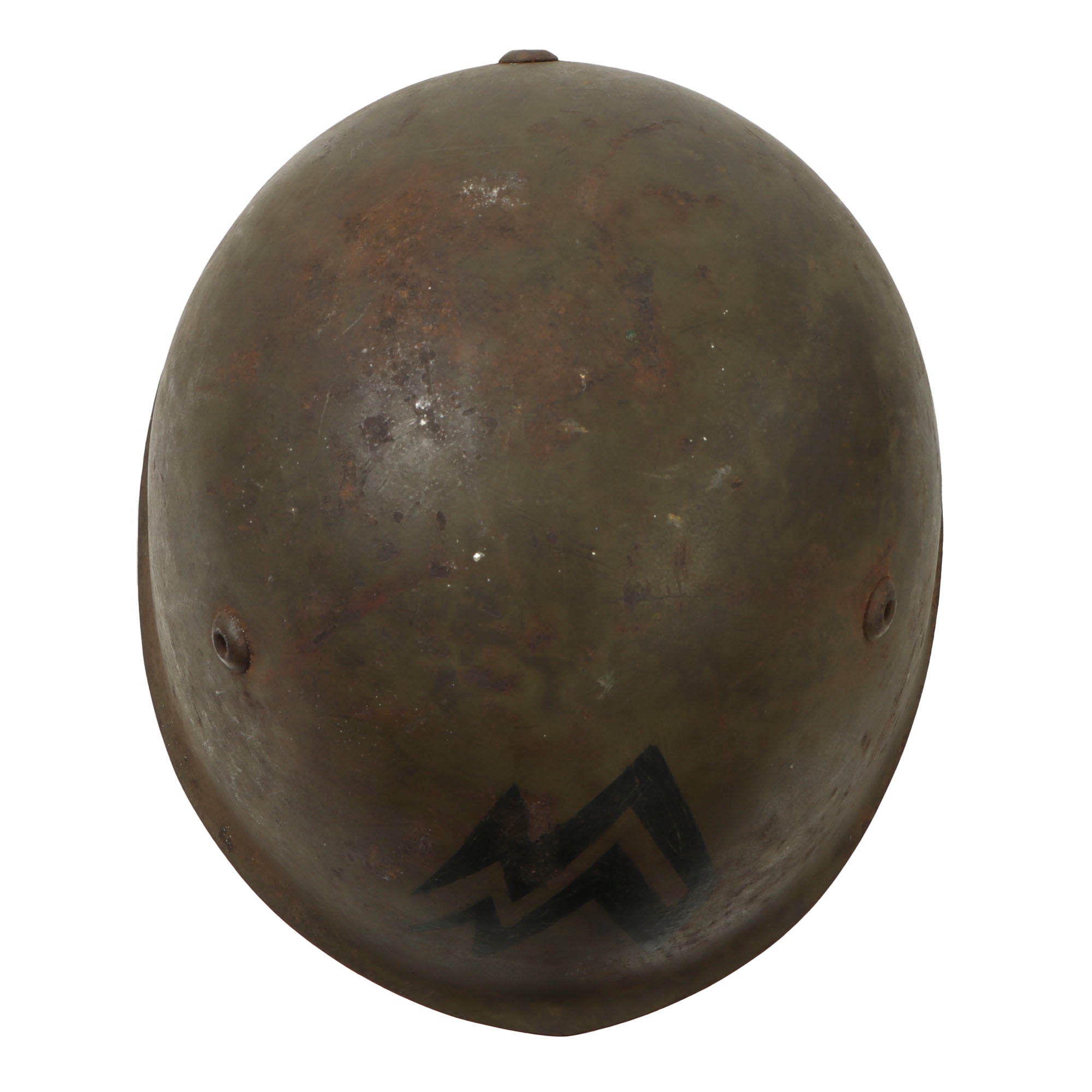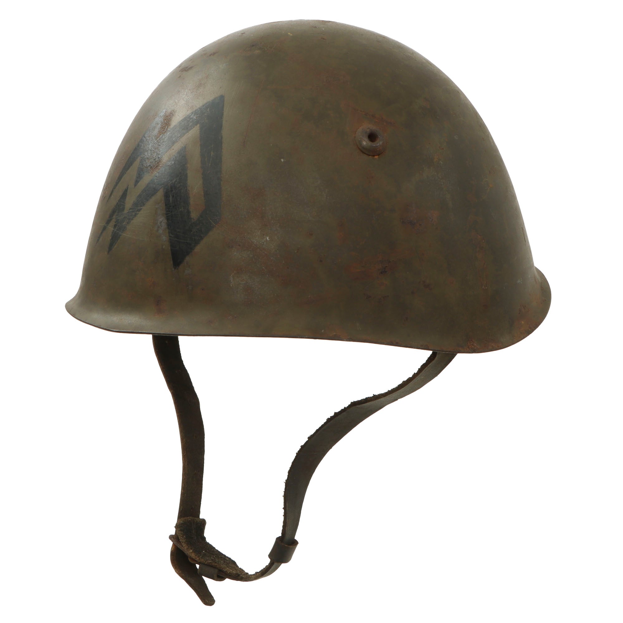 Original WWII Italian M33 Helmet Painted with Fascist Militia RSI Socialist Lightning Stencil