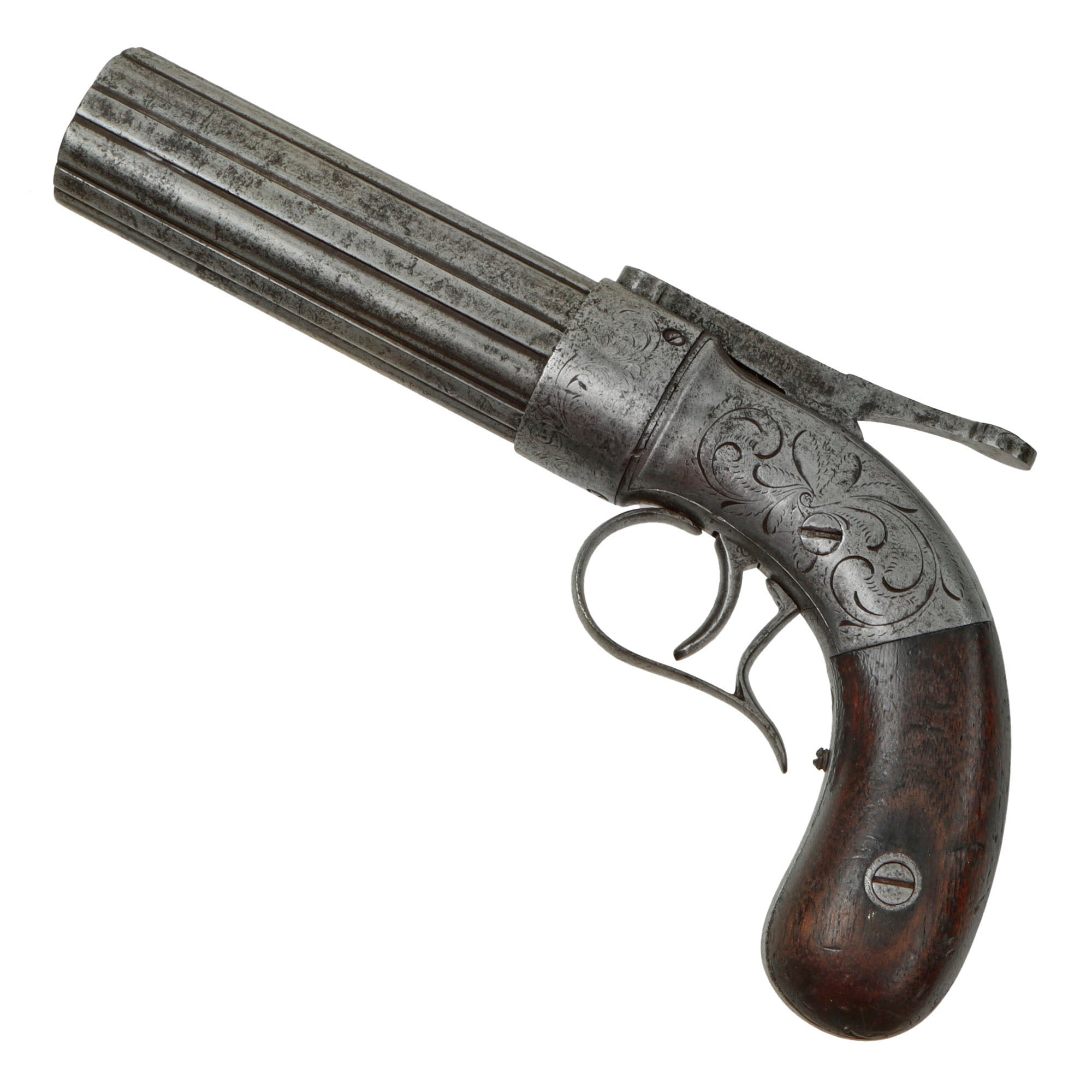 In lovely condition, a very interesting early pepperbox design. Ready to research and display!