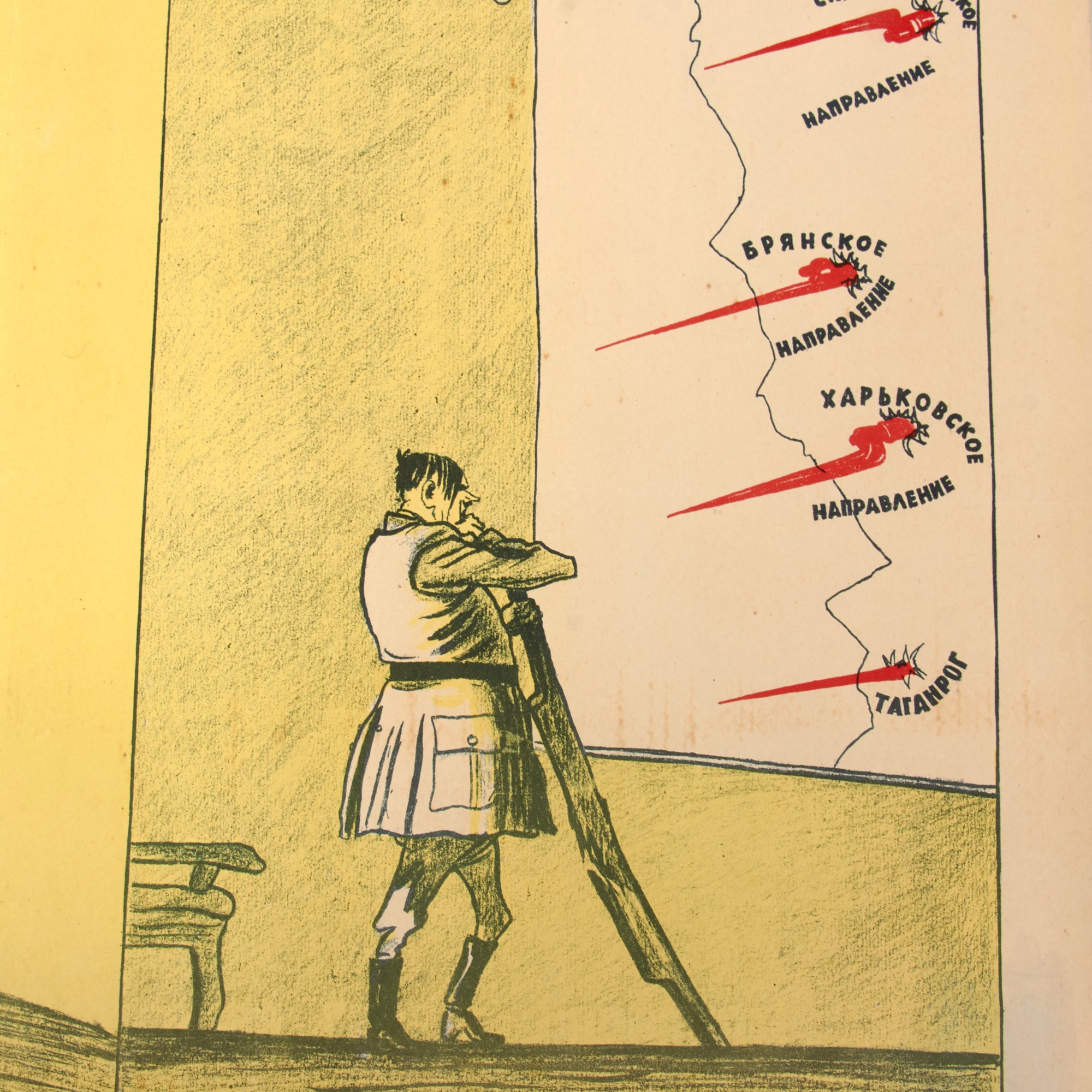 The poster was published by Boyevoy Karandash, RSFSR Artist publishing house, “Combat Pencil” Poster No. 80. It measures 14 x 20 3/4”.