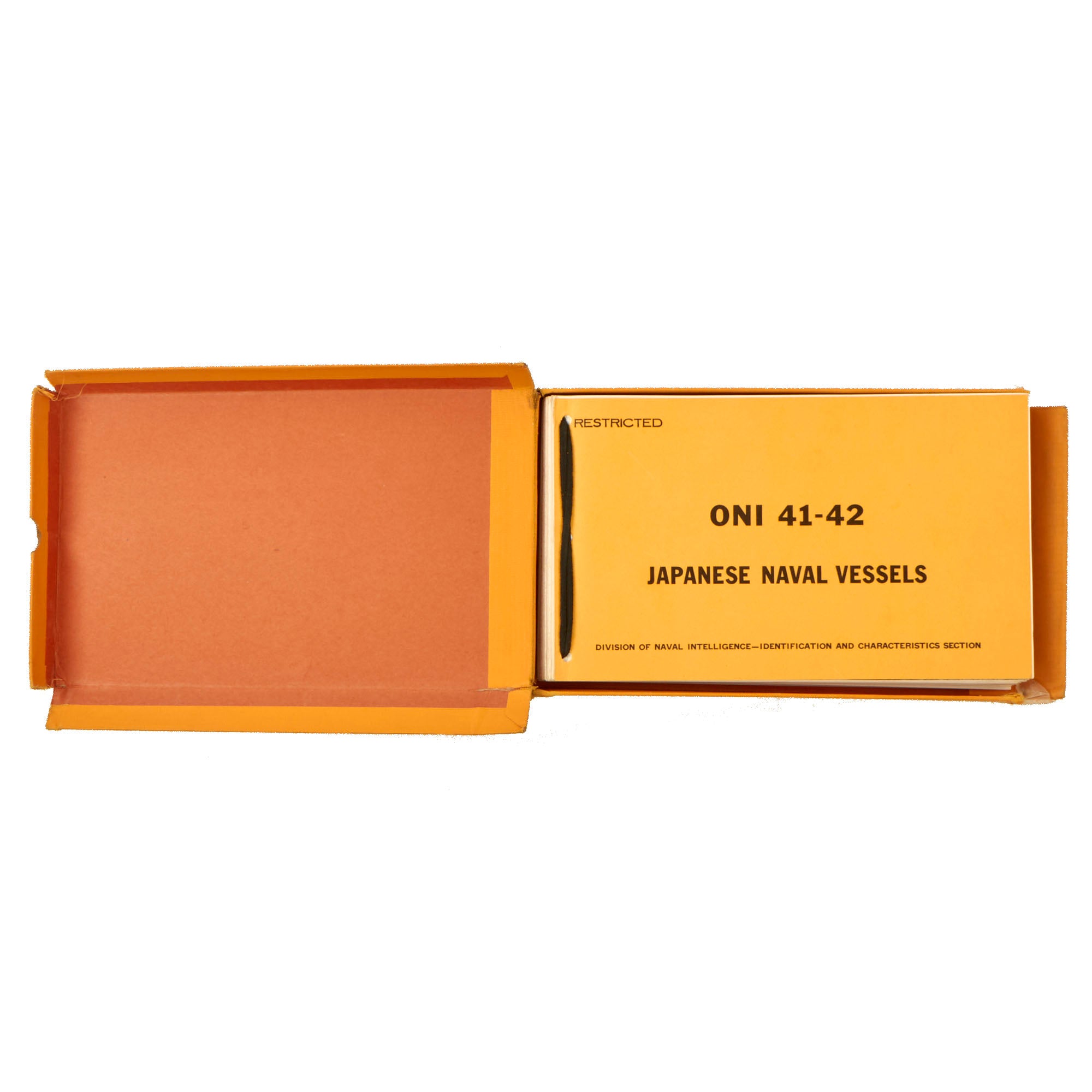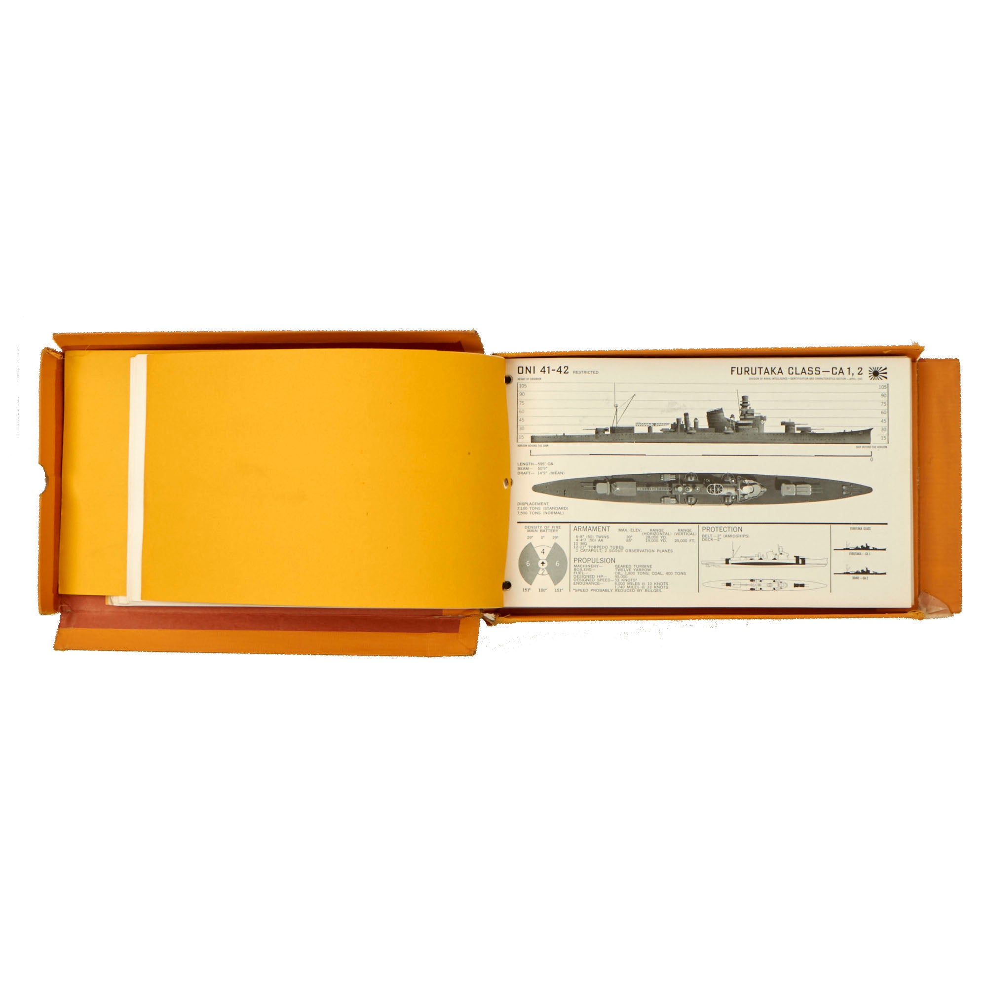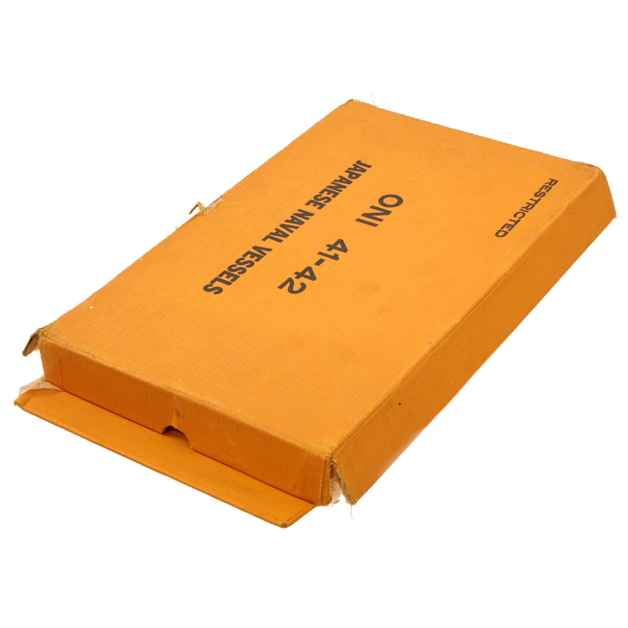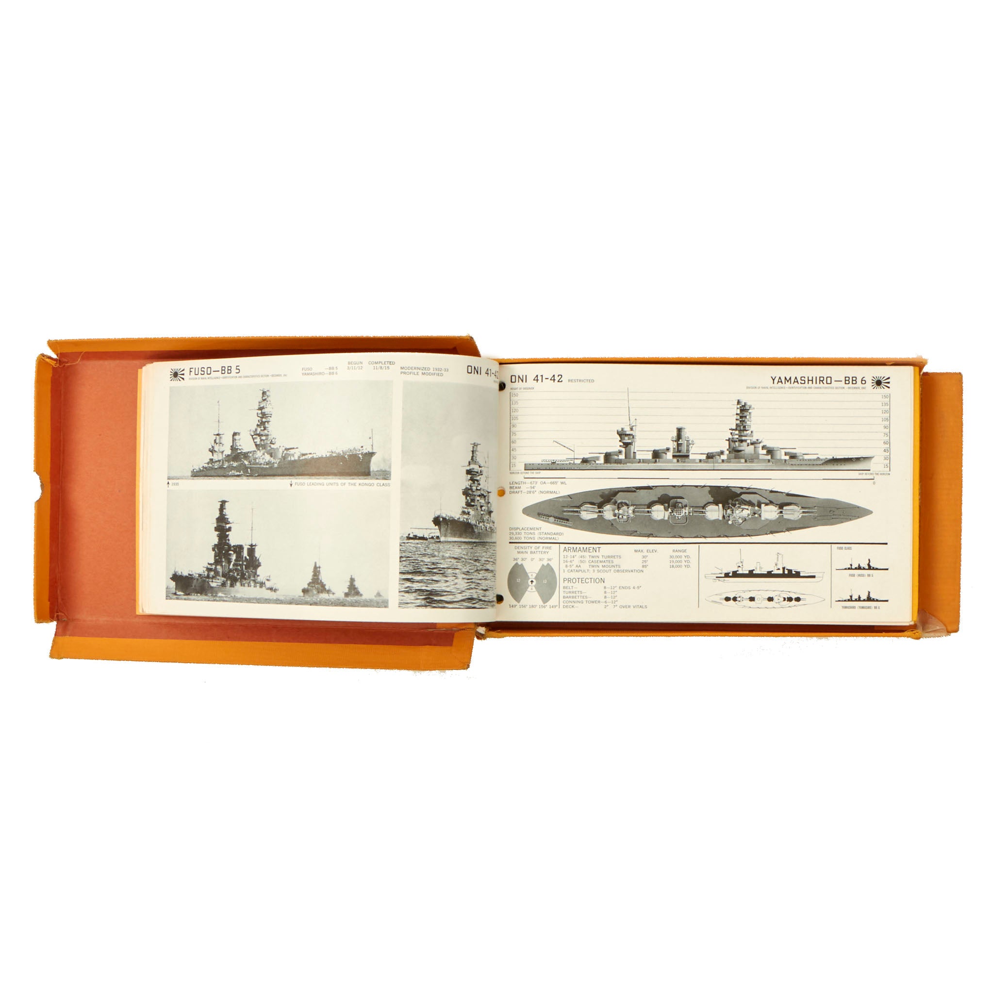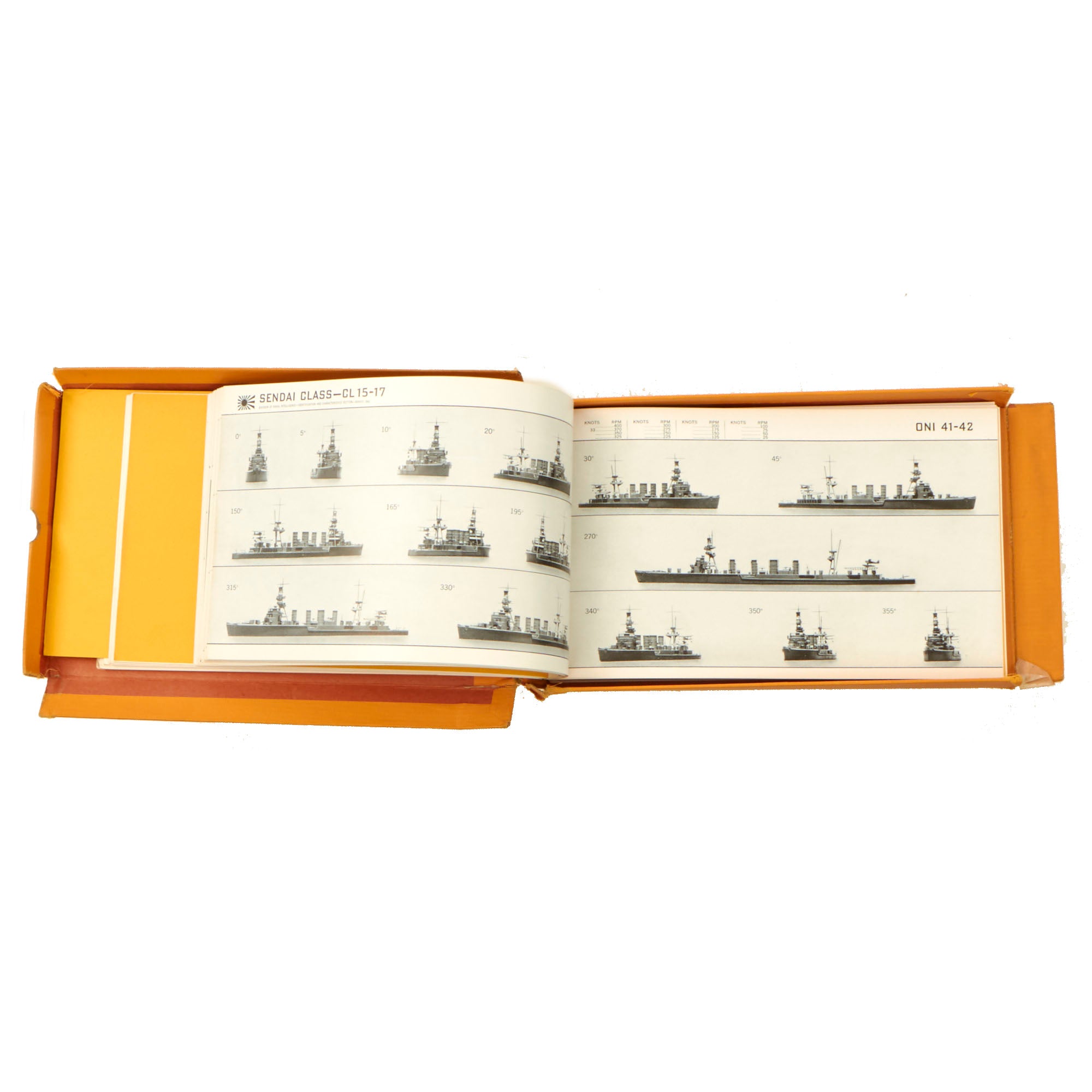 Original Item: Only One Available. Now this is a great Office of Naval Intelligence identification book for Japanese Naval Vessels. The book is in very good condition and has good service use with the corners of the box splitting heavily but the book itself is in good order. This type of knowledge is very important when it comes to large scale warfare. The battlefield, seas and airspace get heavily clouded with friendly and enemy vehicles, so it is important to be able to discern them.