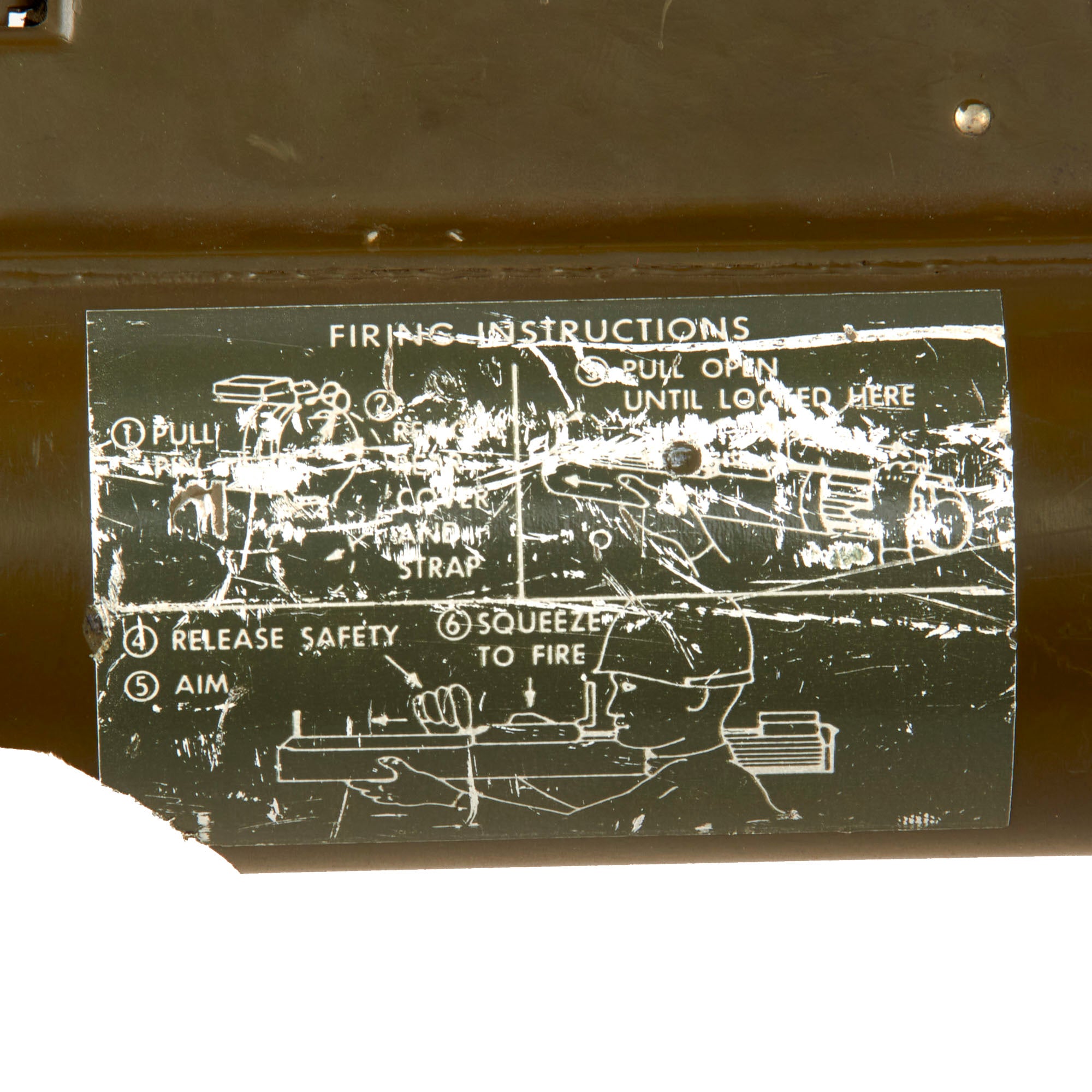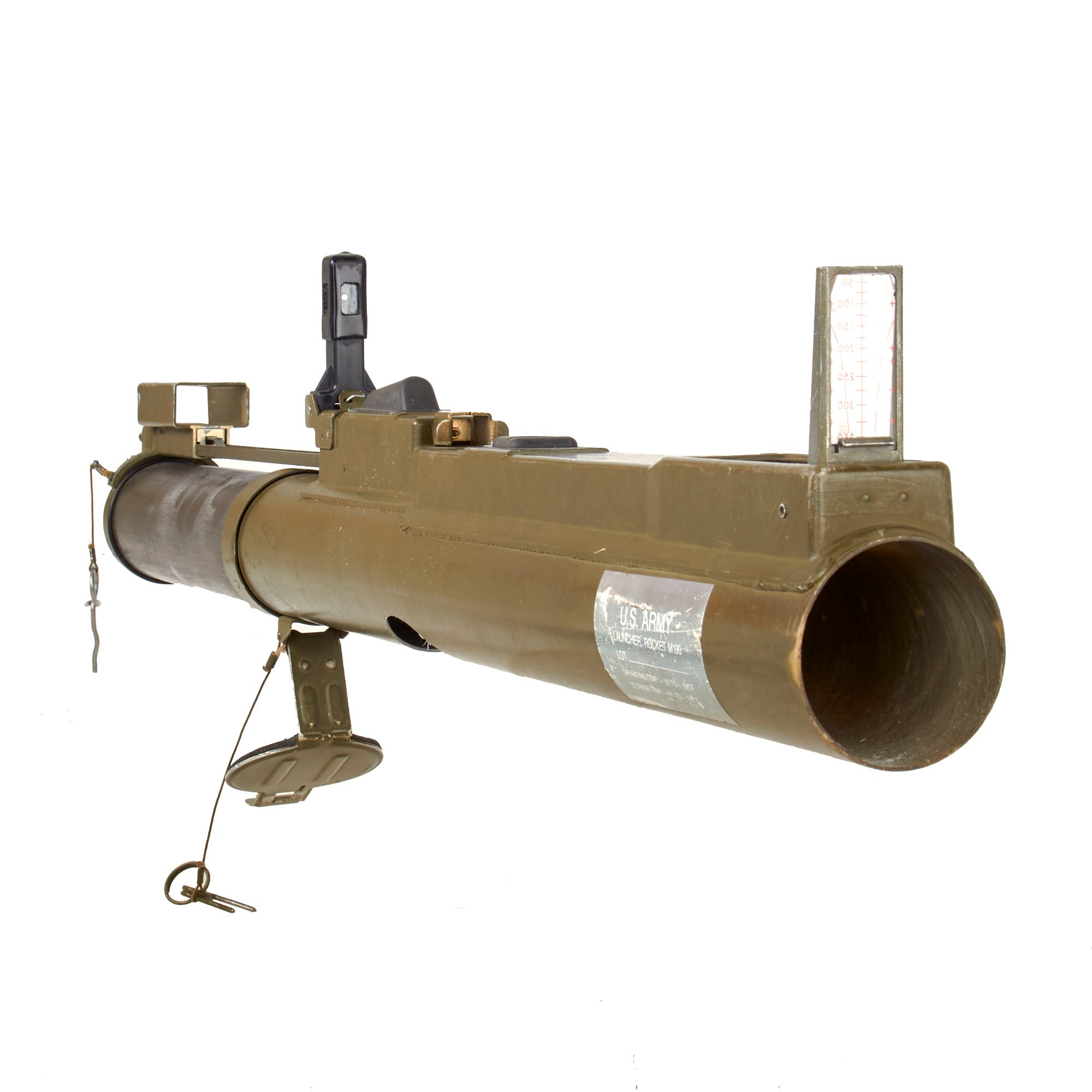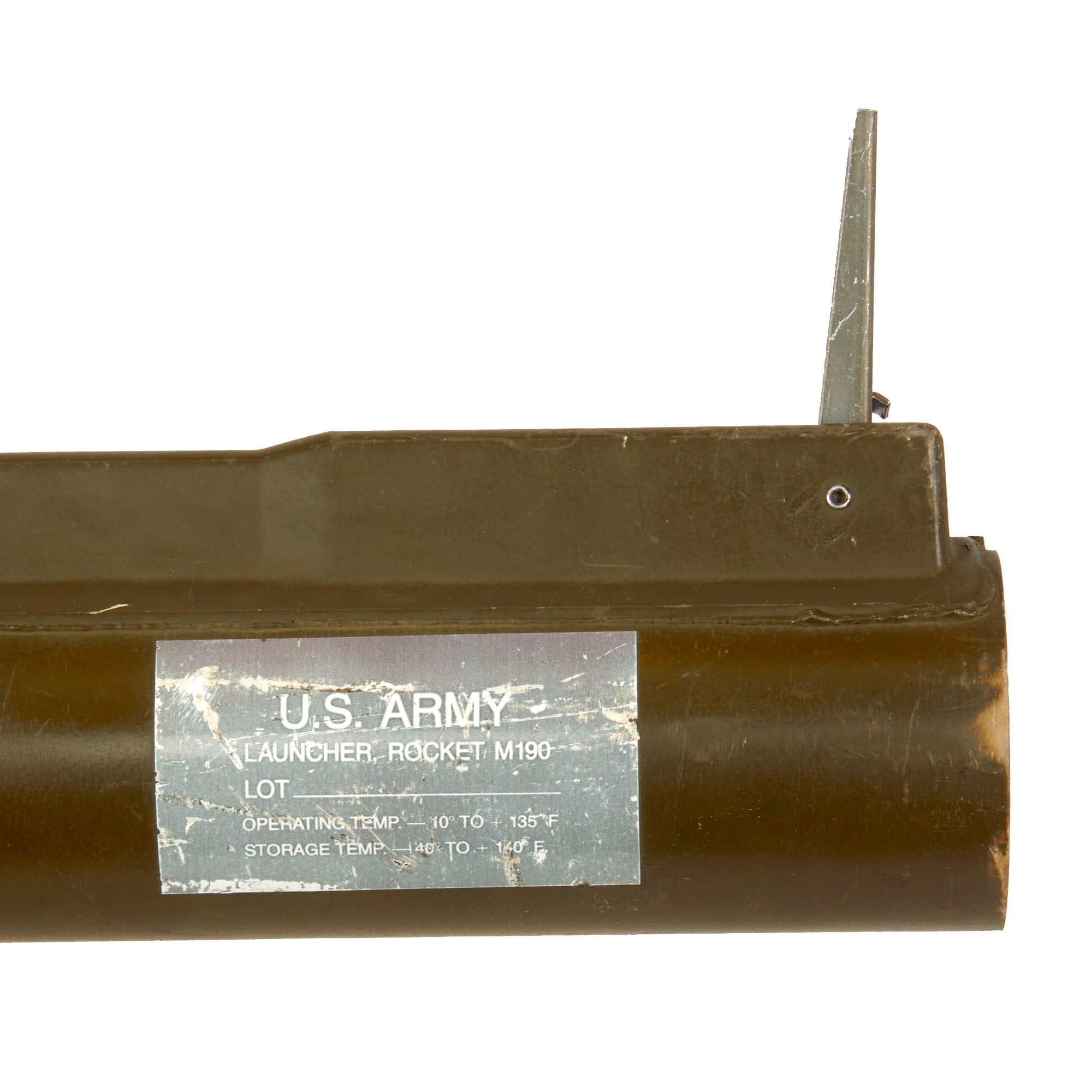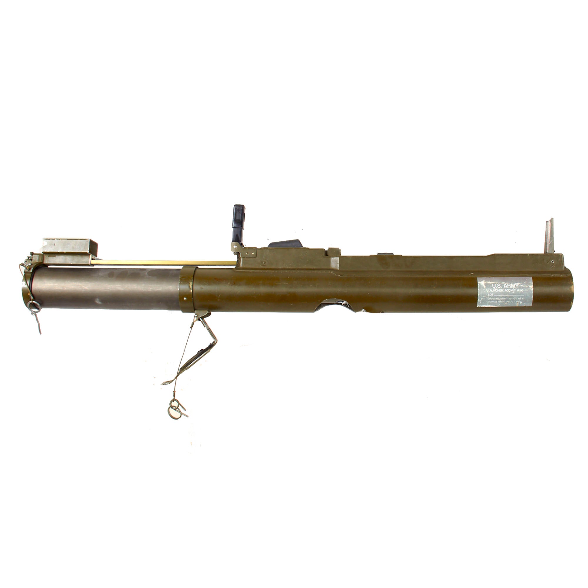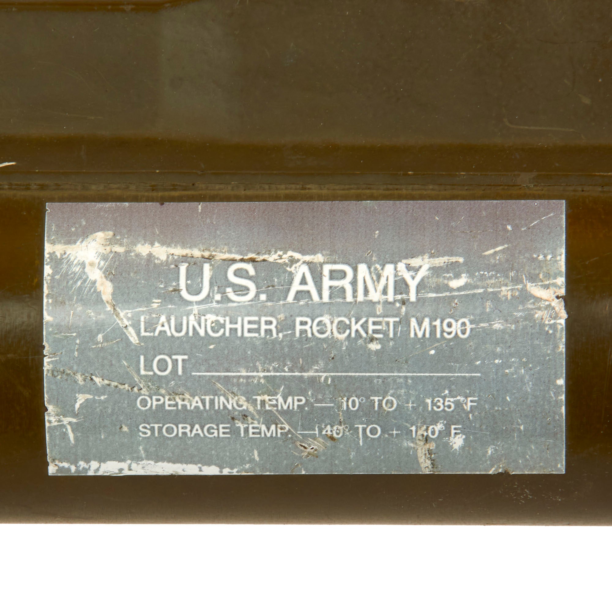 Original Item: Only One Available. This is an inert non-firing BATF compliant M72 LAW Light Anti-Tank Weapon offered in very good condition. Once fired, these tubes are unable to be reloaded, however, the M190s were designed to be reloaded with a sub caliber trainer. This does have the aluminum insert for the trainer and a hole has been cut in the tube to restrict a re-conversion from being made. This example retains the data tag but there is no date.