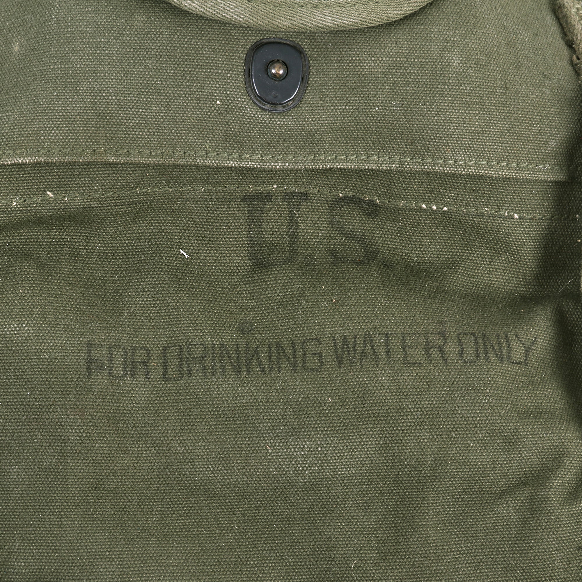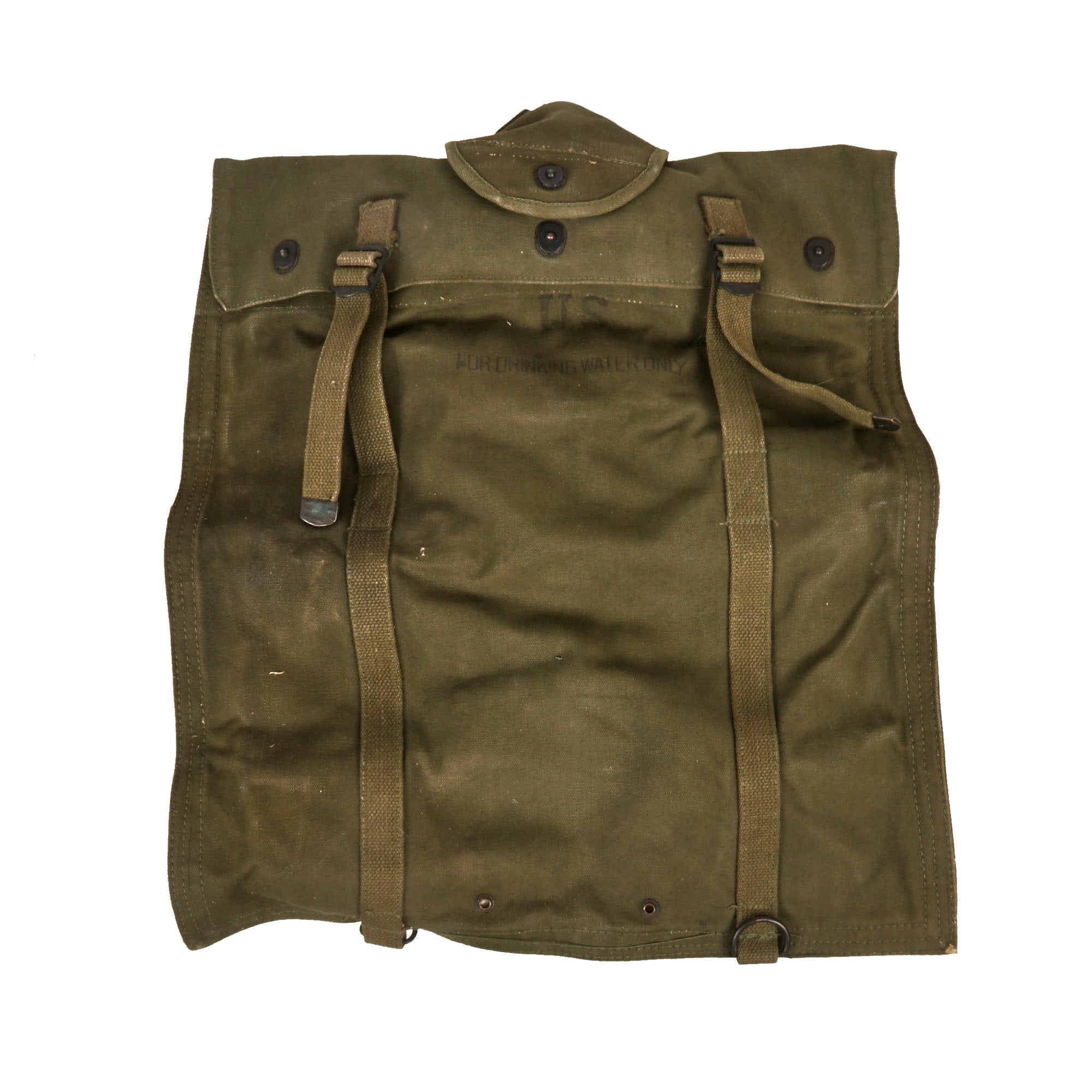 - WWII US Army 5 Gallon Collapsible Water Bladder Canteen Canvas Carry Bag. Marked for Drinking Water Only. Retains straps and is in good working order.