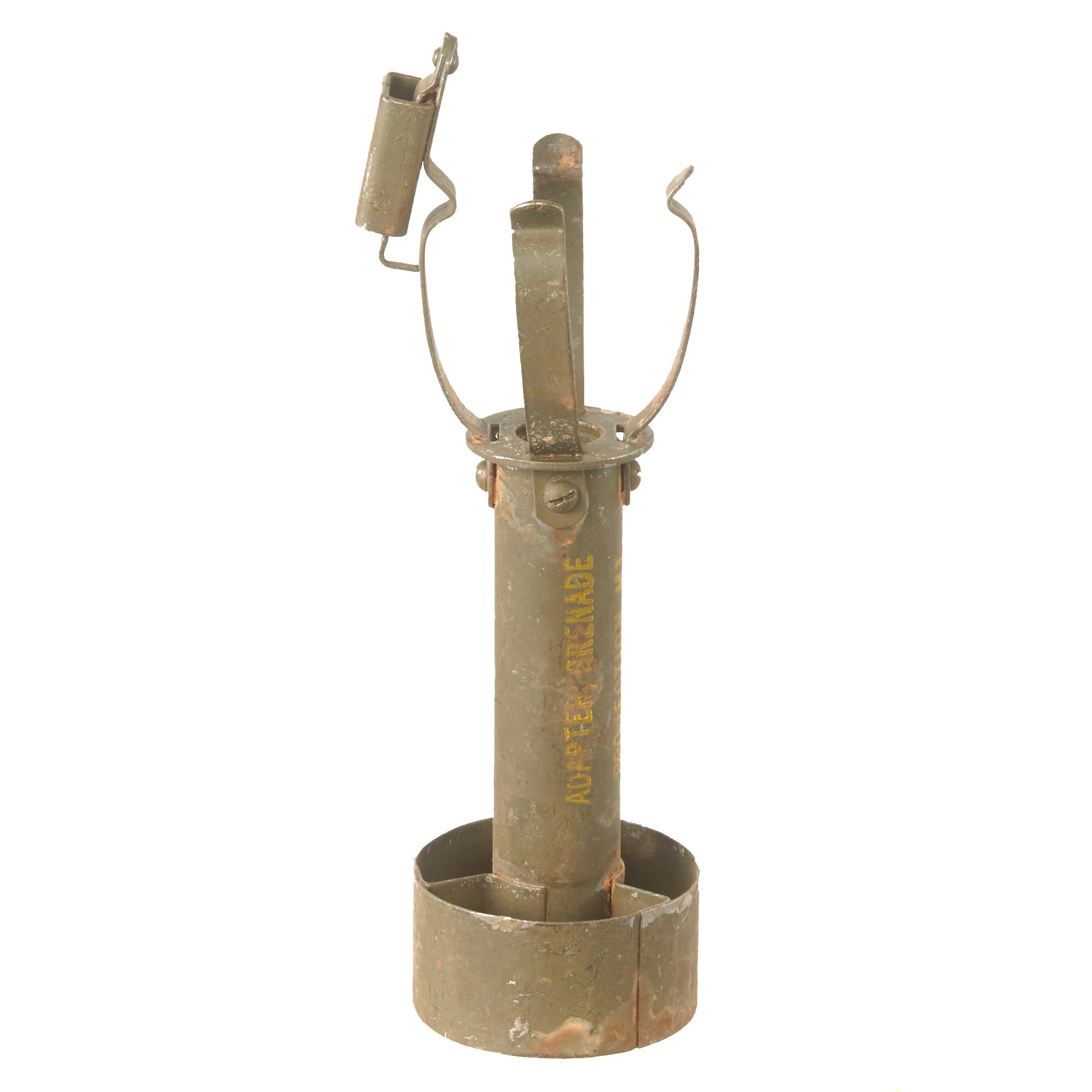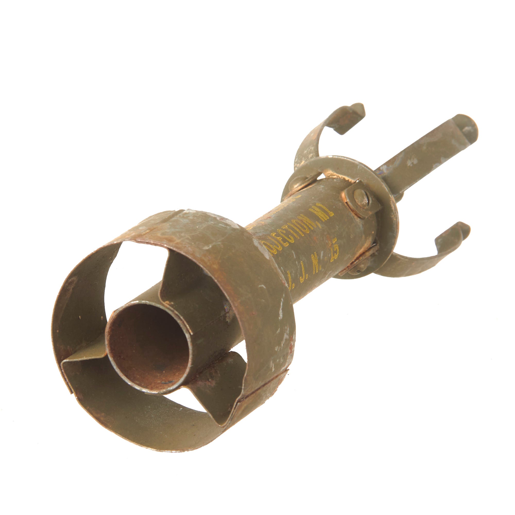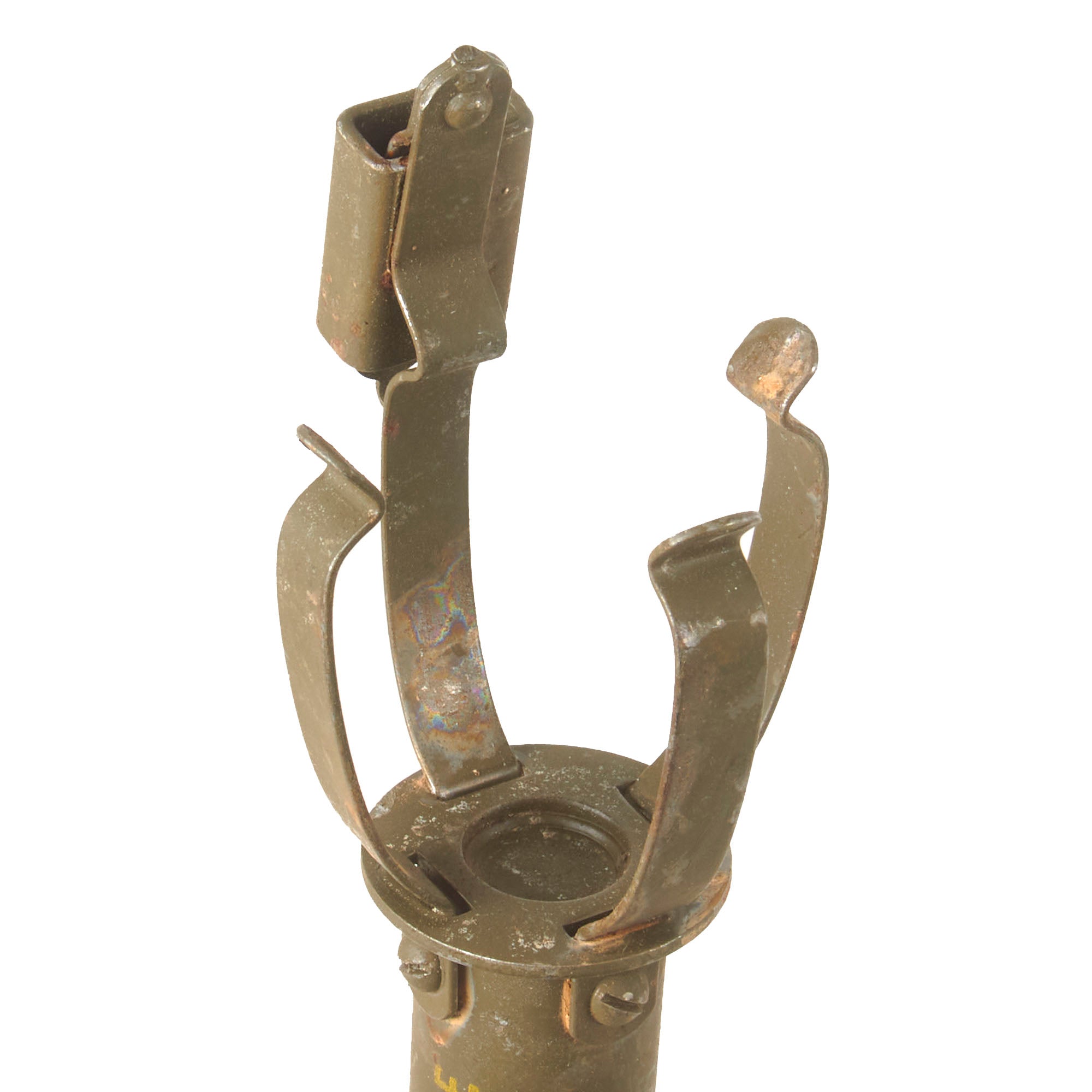 We are offering a fantastic selection of WWII issue Mk II Grenade launcher adapters, all dated 1944. They have relatively similar markings, but are all complete and in great displayable condition. We tested them all, and they will still fit a Mk. II Grenade. Some have paint loss and some have some oxidation, but all are dated 1944 and are in good shape.