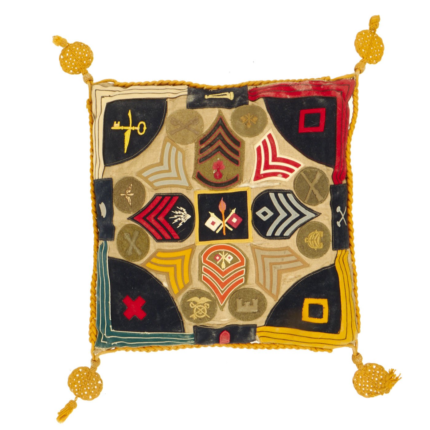 - Original Item: One-of-a-kind. The pillow case with pillow inside is composed of various American military patches ranging from the Indian Wars through Wold War One. We believe that all patches are authentic and not reproduction. Pillow measures approximately 12" square.