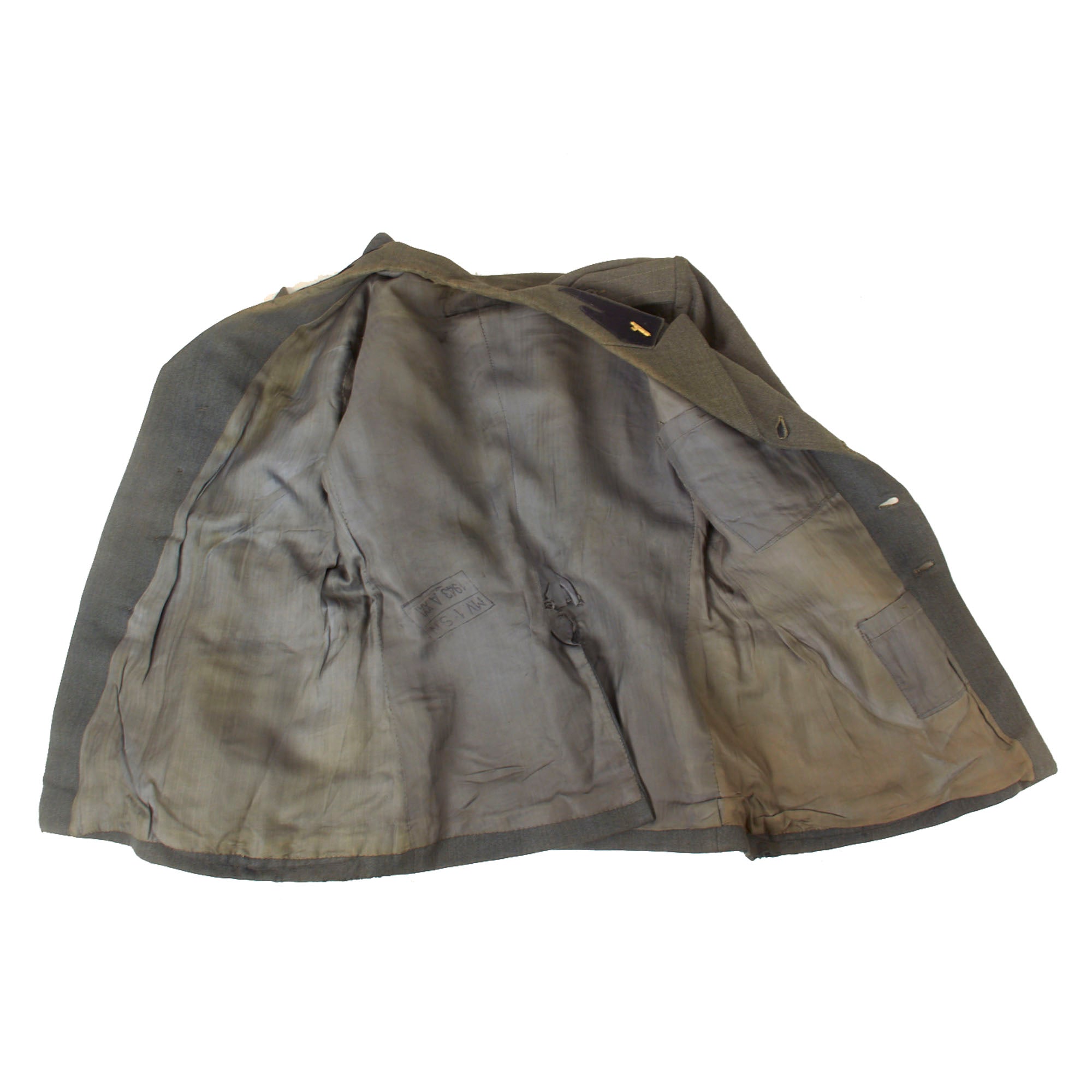 The uniform is in overall good condition and retains a legible stamp on the interior lining: