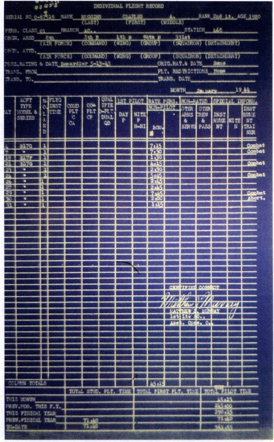 Charles A. Huggins entered the USAAF in May 1942, and served in England from October 1943 with the 94th Bombardment Group, 8th Air Force. He flew 26 missions as Bombardier aboard the B-17 “Rebel Queen”, being awarded the the Distinguished Flying Cross and the Air Medal with three Oak Leaf Clusters. There is certainly more research to be done!