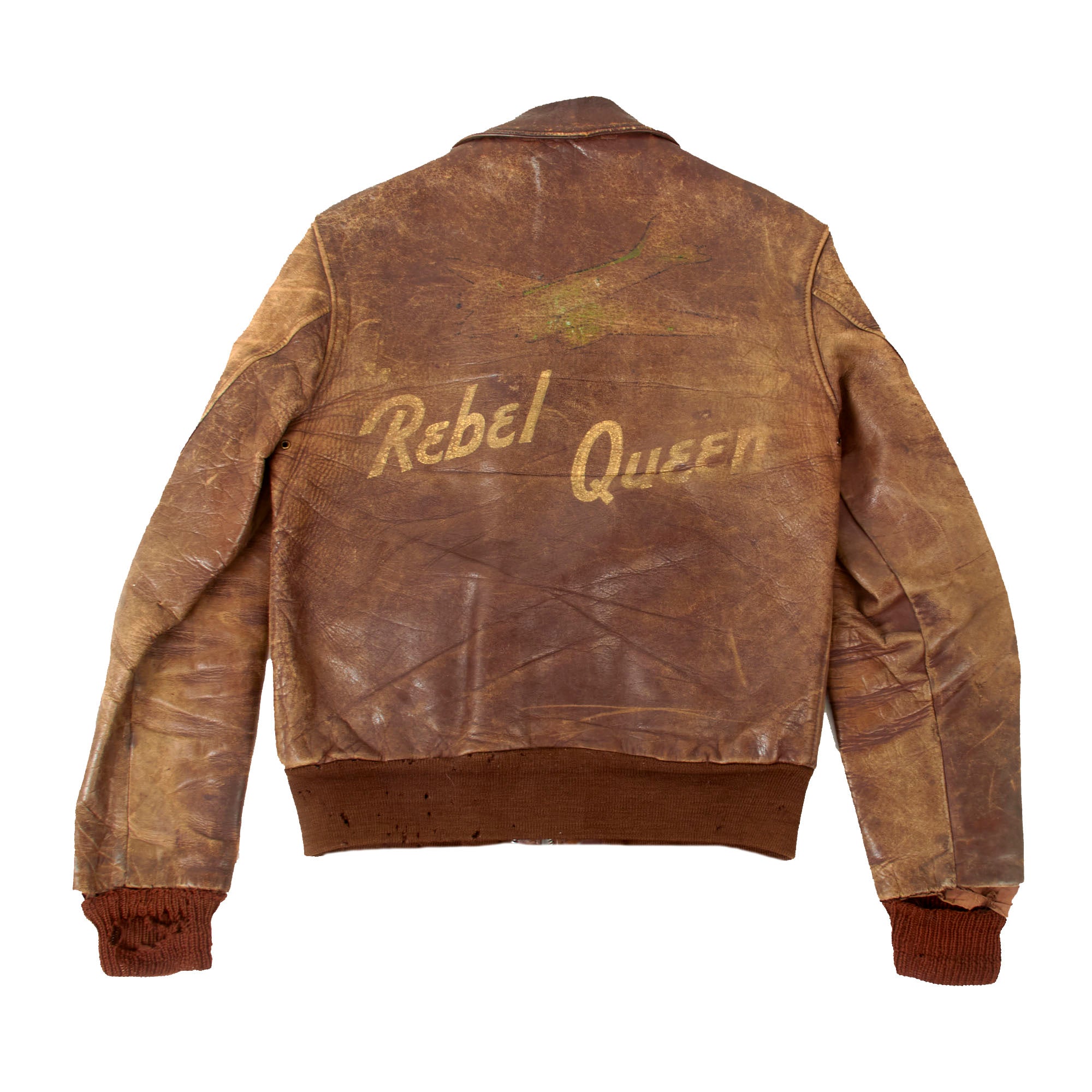 Original Item. One-of-a-Kind. This is the outstanding A-2 Flight Jacket of Distinguished Flying Cross Recipient & Bombardier Lieutenant Charles A. Huggins, 94th Bombardment Group, who served aboard the B-17 “Rebel Queen” during 26 missions in France and Germany. The jacket is beautifully painted to the back with the Rebel Queen but there is heavy wear and paint loss. We were able to source his DFC Citation, which reads: