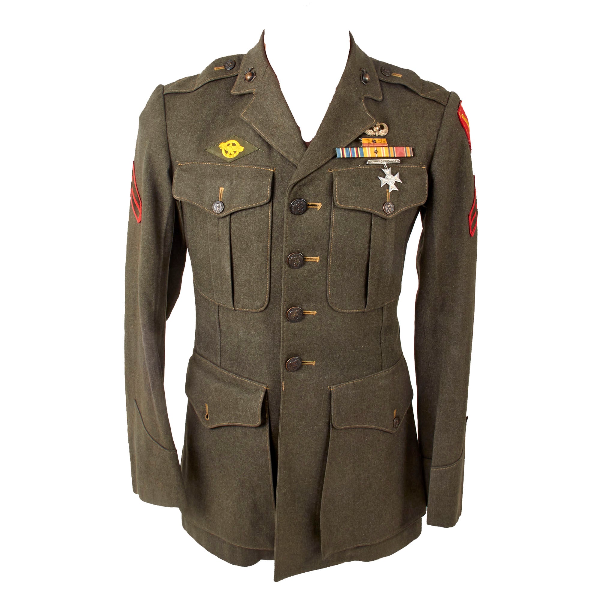 Original Item. One-of-a-Kind. This is a great Paramarine Service Uniform named to Private First Class and Assistant Cook (Corporal) William Roy Robertshaw who was a member of the 4th Parachute Battalion, First Marine Parachute Regiment, First Marine Amphibious Corps.