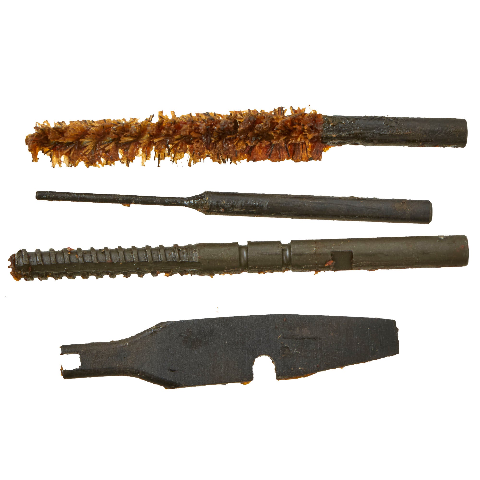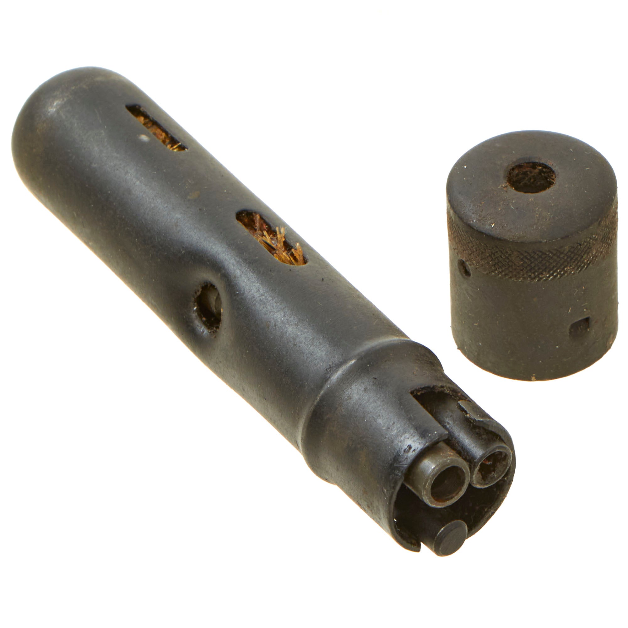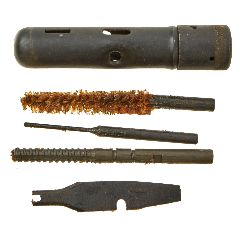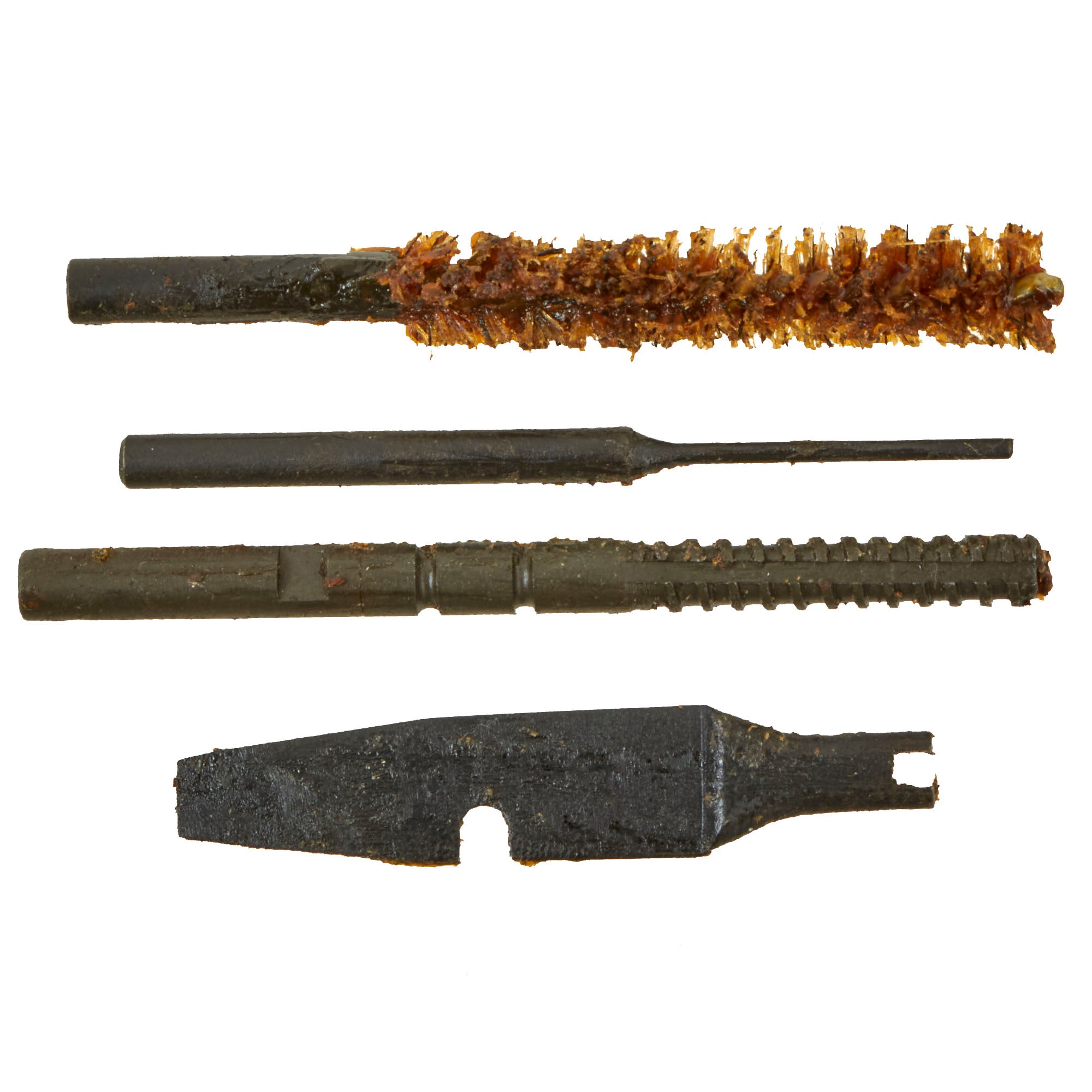 Original Items: Very Few Available. This is a wonderful opportunity to add a genuine AK-47 Buttstock Cleaning Kit that is also a perfect fit for the Semi-Automatic SKS Rifle. The kits come complete with Rod Handle, 7.62x39mm Bore Brush, Takedown Tool and two-piece storage tube that fits in original issued buttstocks. The various kits may or may not have markings, they have been used and would need to be cleaned if not being used as a display item.