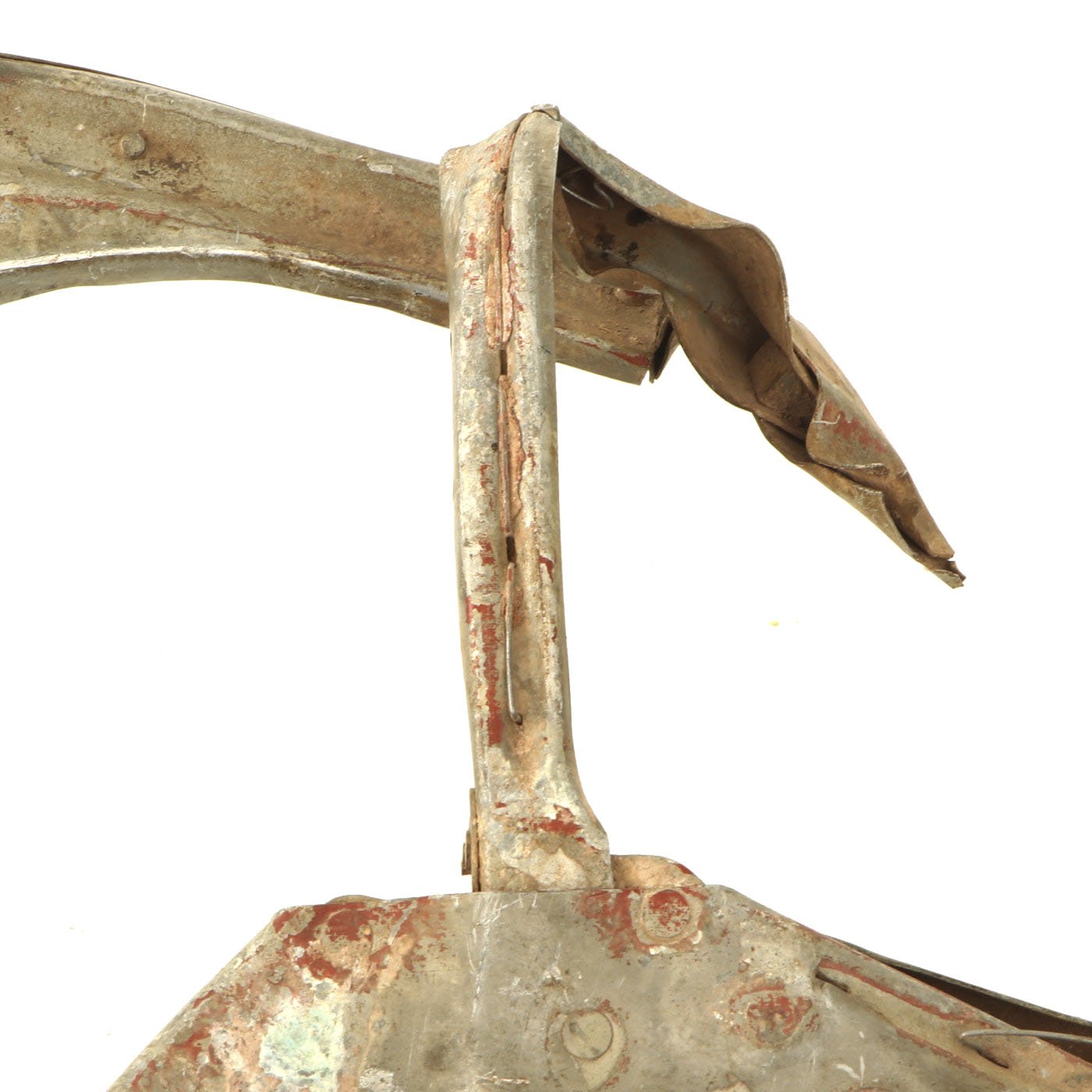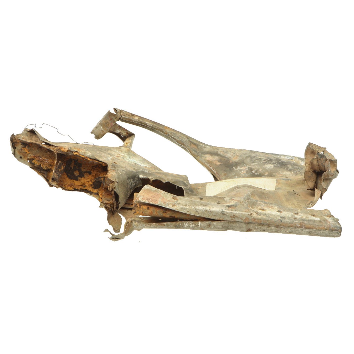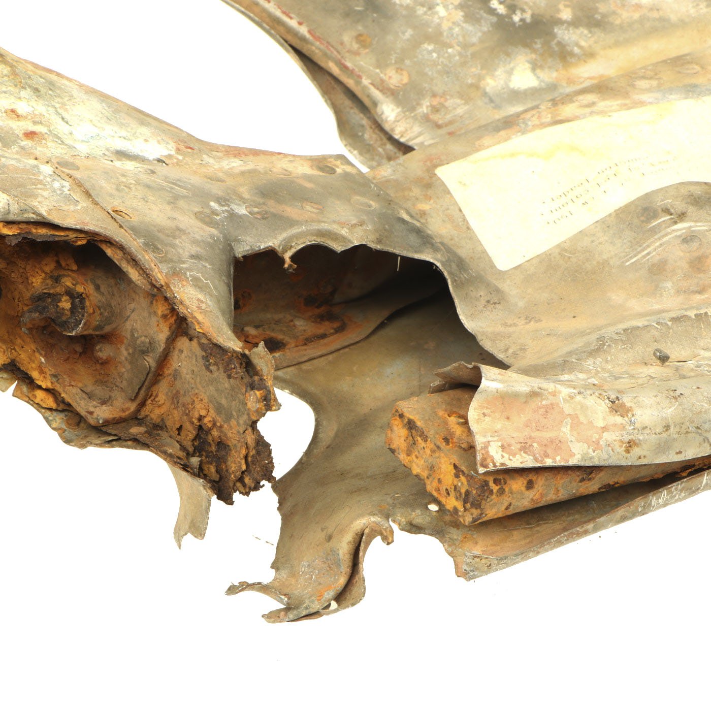 This is a piece of a Messerschmitt Bf 109 aircraft. We were told it is from the "tail section" which if that is the case it would then appear to be the top section de to the curved edge. This piece measures approximately 22" x 15".