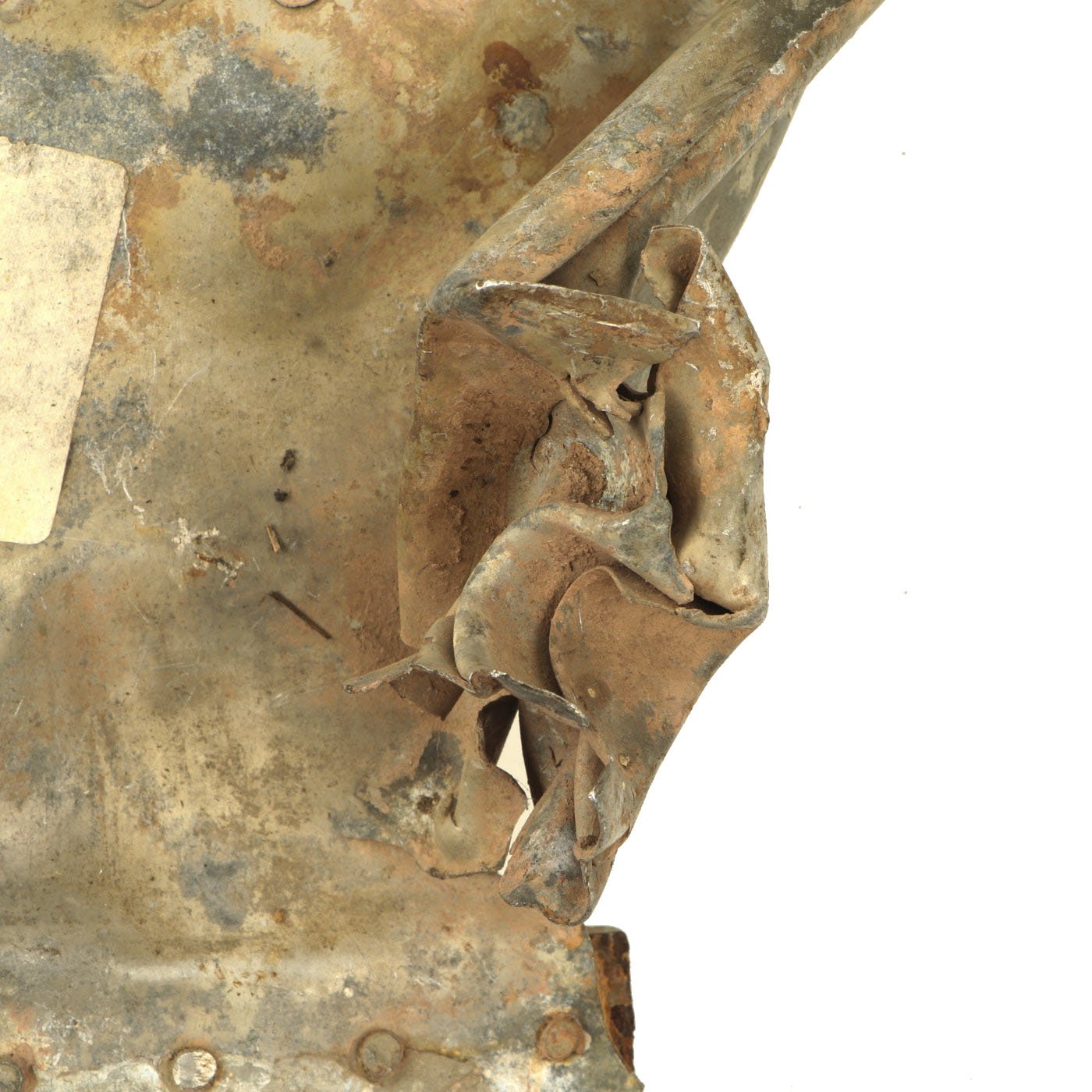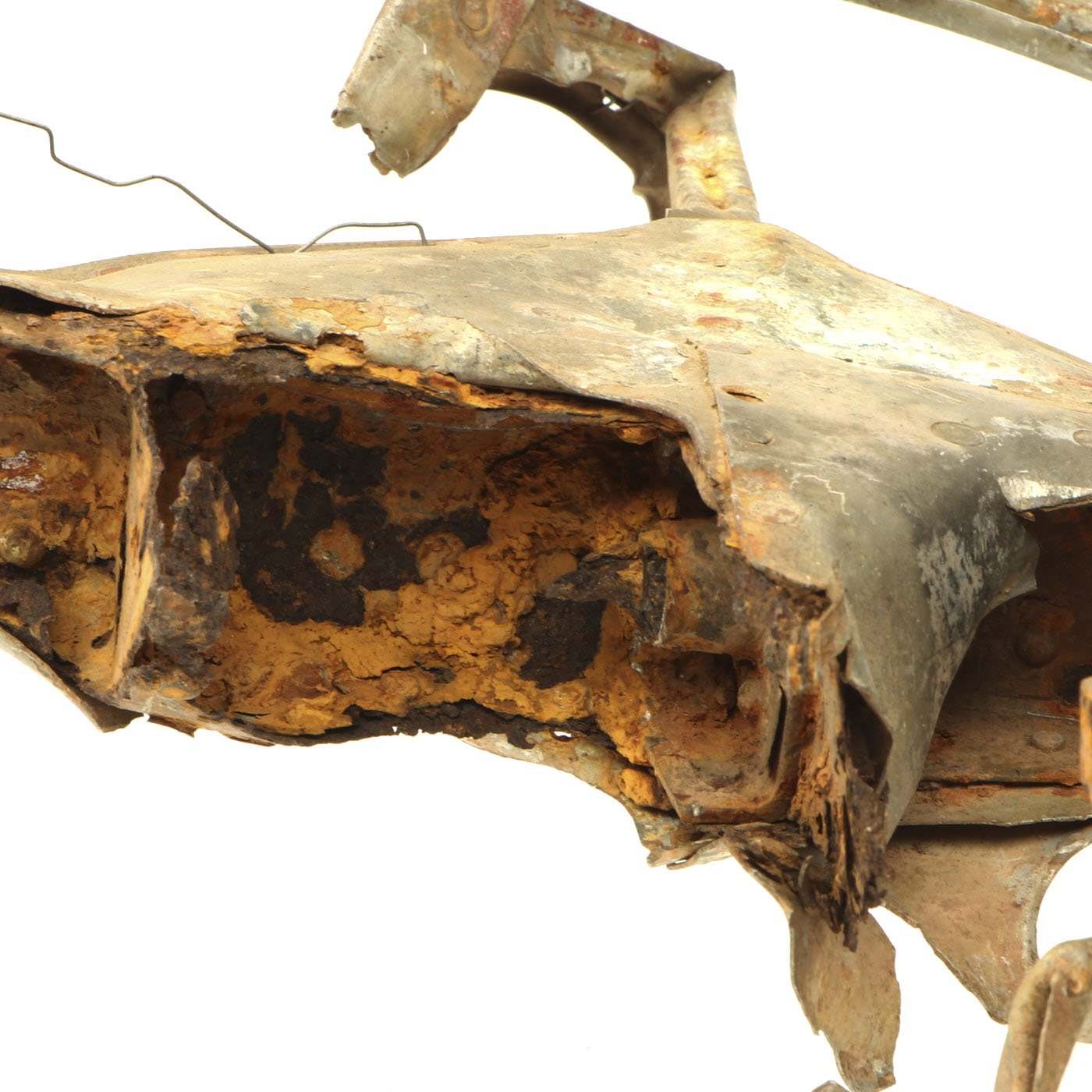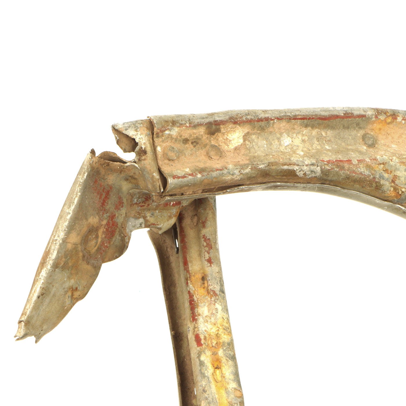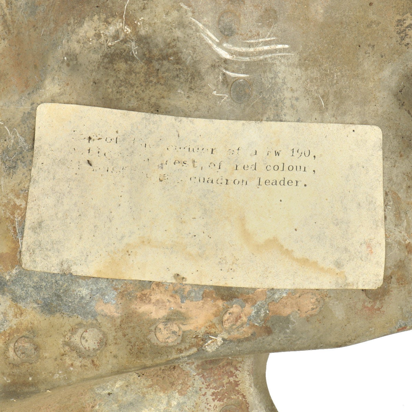 This is a piece of a Messerschmitt Bf 109 aircraft. We were told it is from the "tail section" which if that is the case it would then appear to be the top section de to the curved edge. This piece measures approximately 22" x 15".