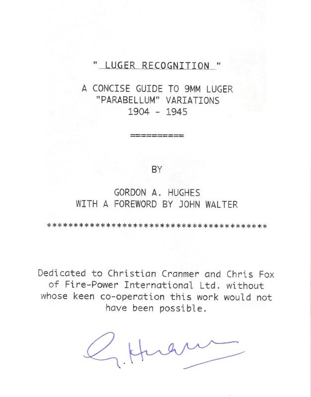 Soft cover, 52 pages by Grodon A. Hughes. ?A Concise Guide to 9mm Luger ?Parabellum? Variations 1904-1945?.