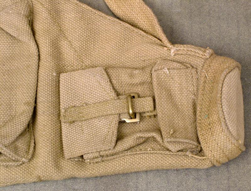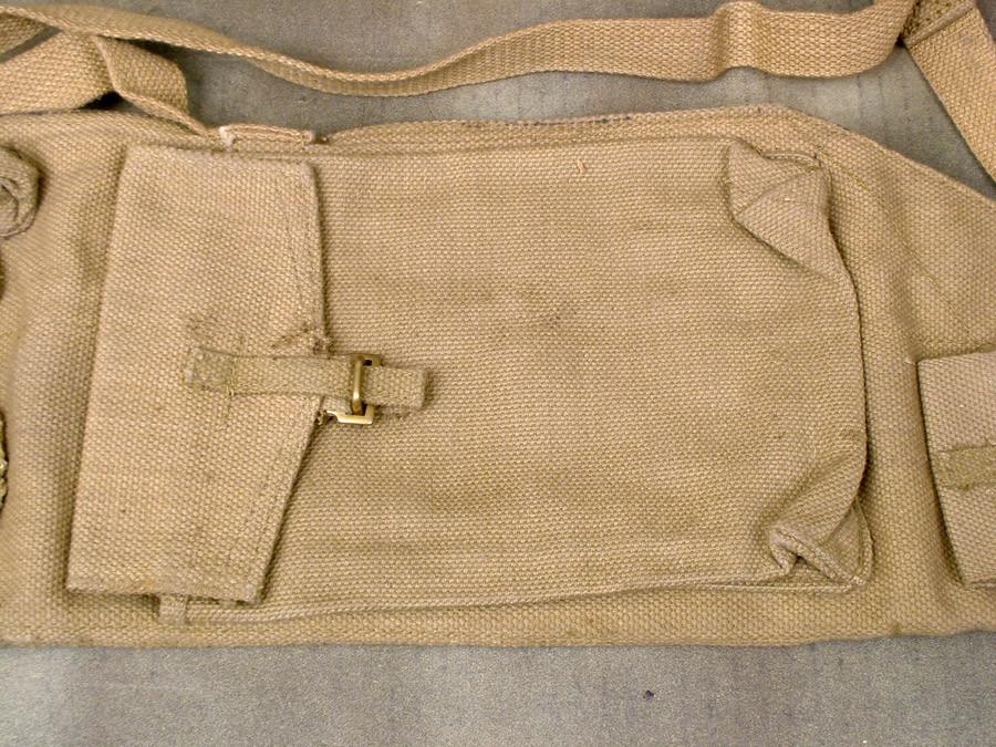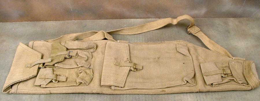 Original Item: Complete with carrying sling, these are the heavy web constructed Bren spare barrel carriers with additional replacement parts, etc. Fully marked and WWII dated, excellent condition, a mandatory item for the Bren Gun Section.