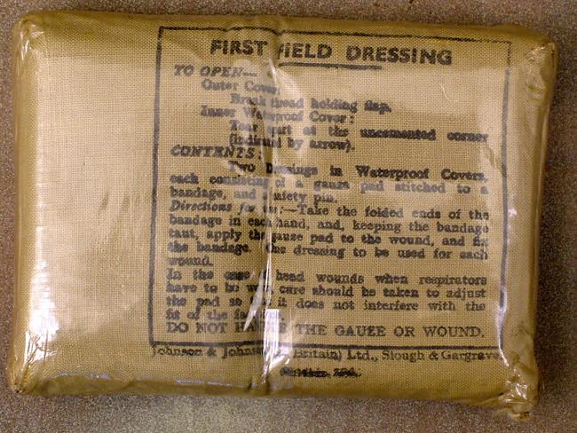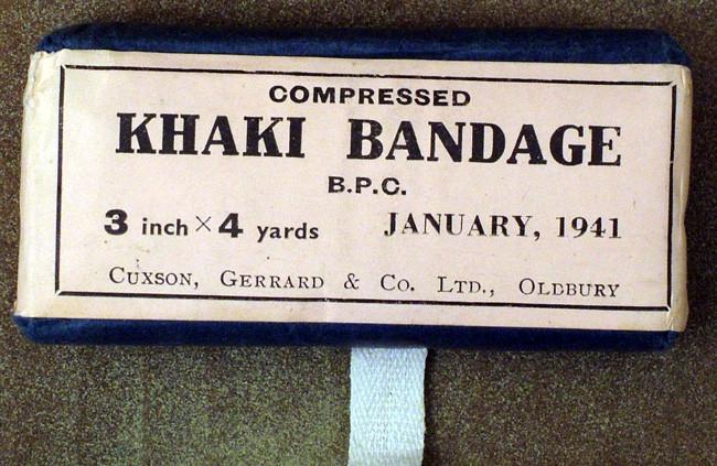 Original Item: As standard issue to all combat troops here is a selection of two different bandages/field dressings, each in original WWII dated packaging. A tourniquet to stem bleeding and a "Toe Tag" dated 1940 to be attached to the injured/unconscious casualties giving details for oncoming medical units in battle conditions.