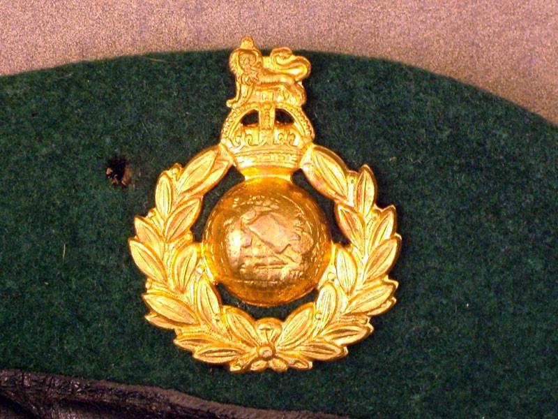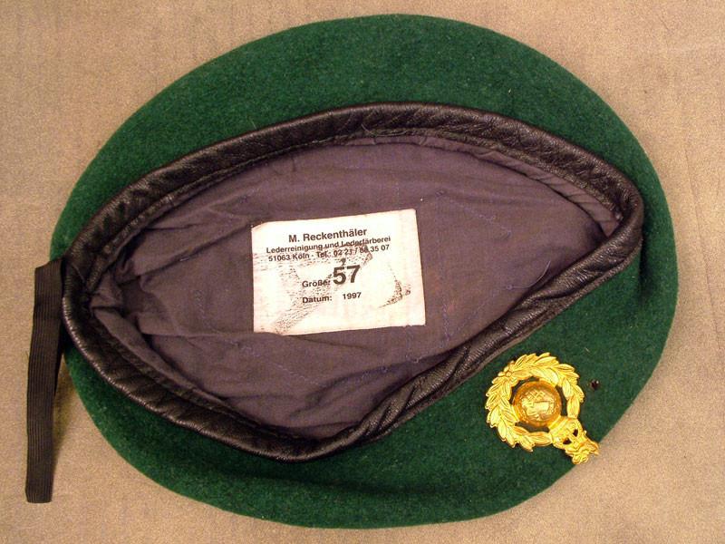 Original Item: Quality NATO issue Berets with leather sweat bands each fitted with new made WWII Cap Badges to simulate WWII issue. Showing slight use only. Dark Green with Regimental "Globe" Beret Badge.