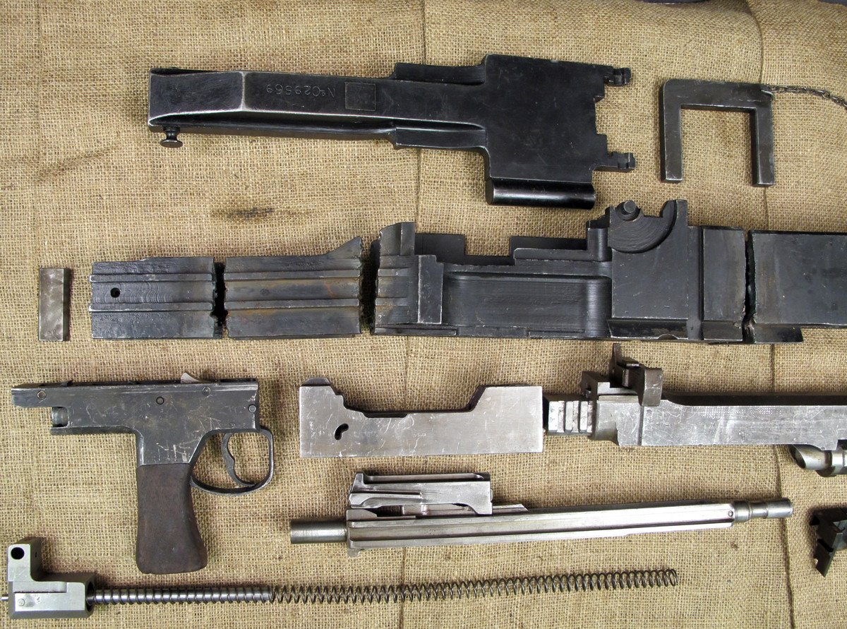 This parts set comes with a demilitarized receiver, barrel, pistol grip group, top cover, and all the internal parts. IMA is also providing a copy of three wartime British Ministry Of Defense manuals that cover operation, stripping, parts identification, and ammunition: