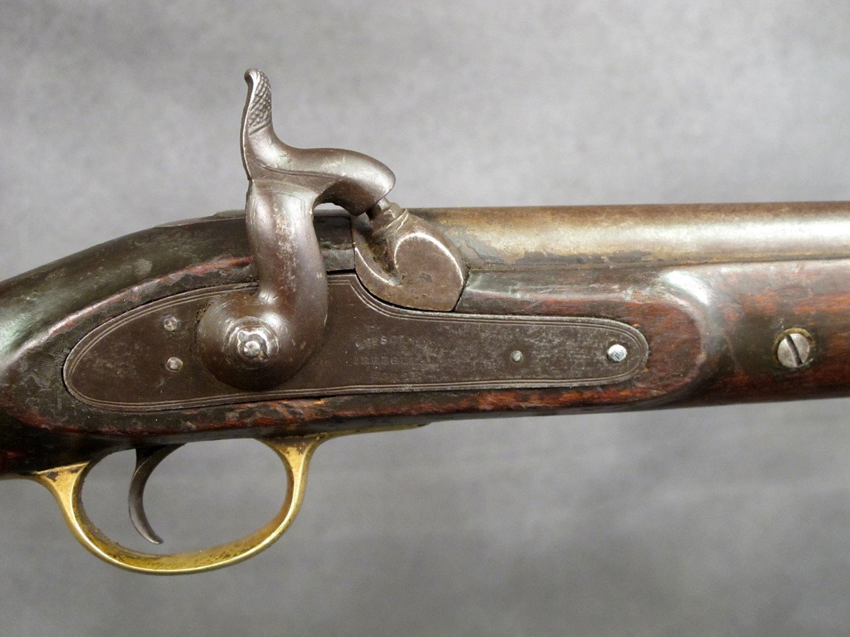 IMA is pleased to offer the only example we found from our Nepal cache purchase; adopted in 1846 this is a magnificent percussion saddle ring cavalry carbine fitted with two rings, London proofed, almost certainly made by "Garden of 200 Piccadilly, London" according to David Harding in his wonderful "Small arms of the East India Company 1600-1856" Volume 2 pages 520/521.