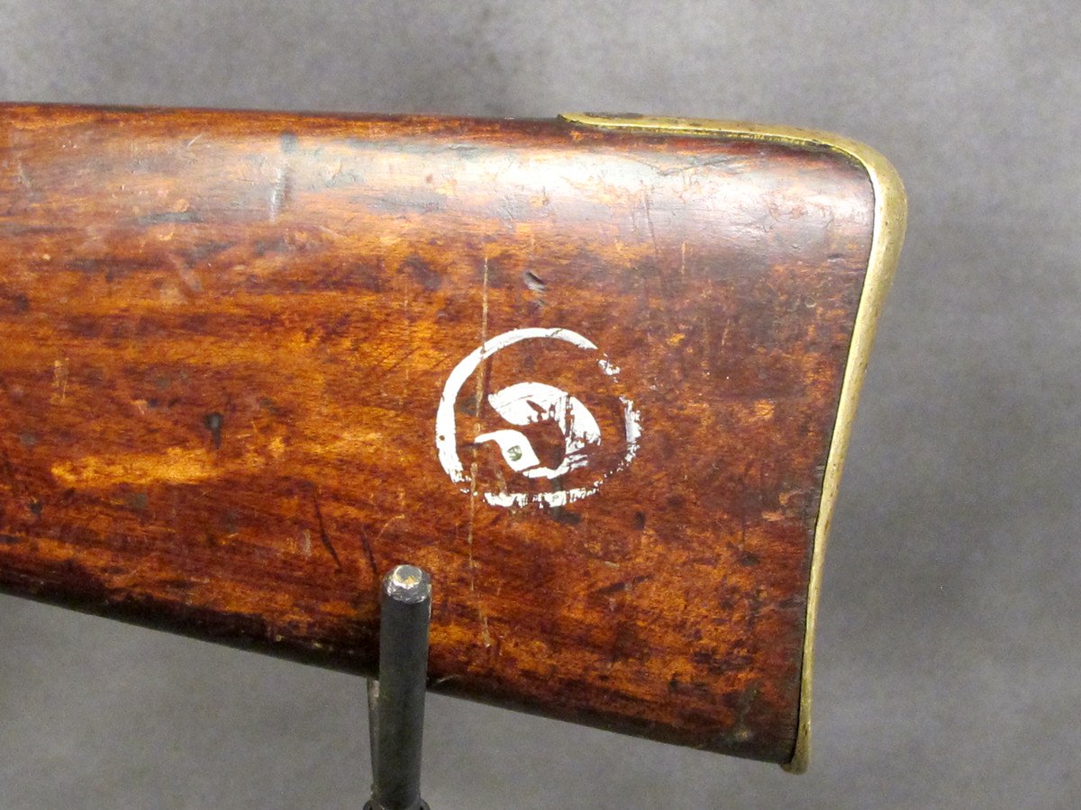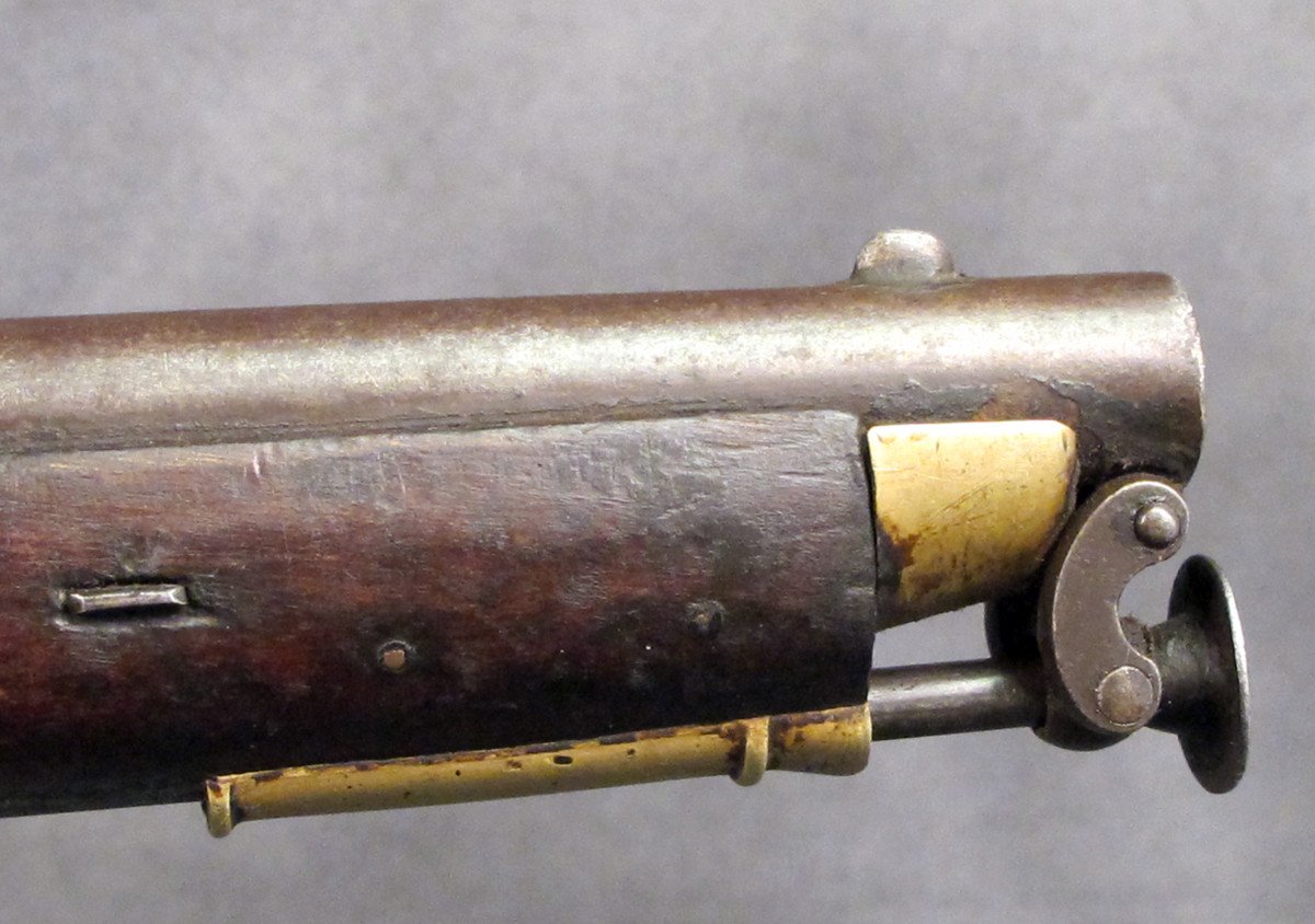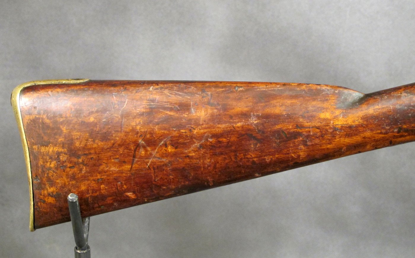 By agreement with England the Nepalese supplied 12,000 troops to assist the British put down this uprising and were well rewarded for doing so. Many Mutineers fled India and crossed into Nepal and by Treaty with England the Nepalese disarmed these Rebels and were permitted to retain their weapons provided they hanged every Mutineer that came into Nepal. Not surprisingly the Nepalese kept the confiscated weapons but allowed these "new immigrants" to settle in Nepal who then became the ancestors of today's Nepalese "Indian" minority population. We should however note that unlike most other arms from the Nepal cache this carbine has no native markings, only English.