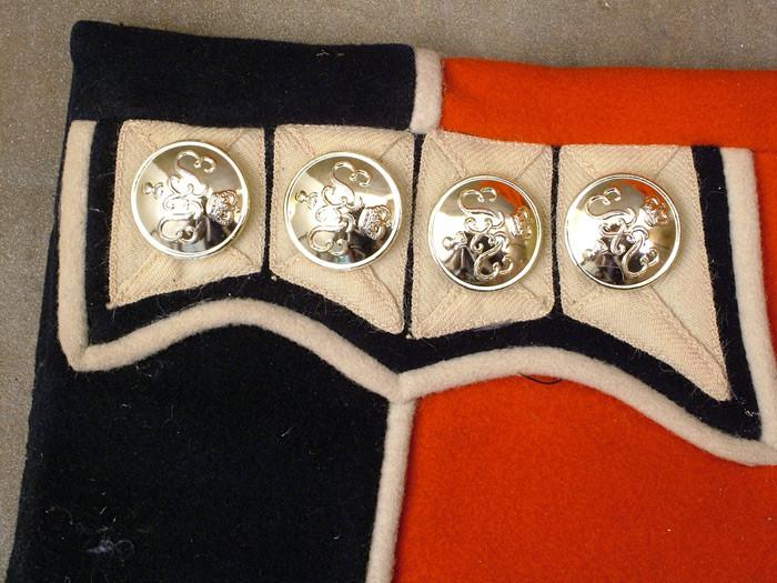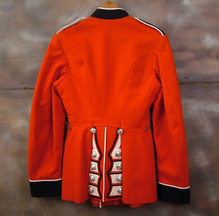 Original Item: In truly excellent condition; these are the Red Tunics with dark blue trim of the GRENADIER GUARDS, complete with the correct regimentally marked buttons. Released from the British Ministry of Defense, these are original top quality military issue, often bearing the Guardsman's name on the interior. A fabulous Display item! As these lads were combat ready, these are going to be a tough fit for today's American male, so no sizing is available; most ar about size 38-40. Very few only, completely lined as issued Grenadier Guards Parade Tunic.