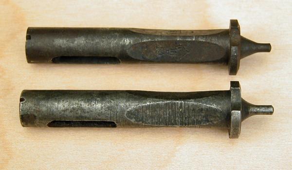 Original Item: The first striker issued with the early Martini-Henry rifles was the Mk I. It immediately turned out to be too fragile, and before the initial field testing of the Martini was done, the Mk I was replaced with a strengthened version, the Mk II. The Mk I was in use for such a very short time that it may be the rarest Martini component part. IMA has found a very, very few original British Mk I strikers among the Mk II and Mk III Martini strikers it uncovered in Nepal. At this time, we have three types: LSA manufacture, Enfield manufacture, and British marked (the broad arrow is quite legible, but the manufacturer?s inspection stamp is unclear). In the two comparison pictures, the heavier Mk II is shown above the Mk I in the first picture, and in the nose-to-nose picture, the Mk I is on the left.
