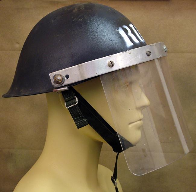 Original Item: These are original British Mark IV steel helmets in the riot helmet configuration with heavy perpex face shield that is hinged in a visor style. Complete with liners these have all been painted black with the white initials R.U.C stenciled on front and rear representing the Royal Ulster Constabulary. For the last 40 years these were the helmets used by the Northern Ireland Police for Riot Control that were seen almost daily on every news channel around the world during the unrest in Northern Ireland. Another piece of history from within our lifetime. Ready to display and wear!