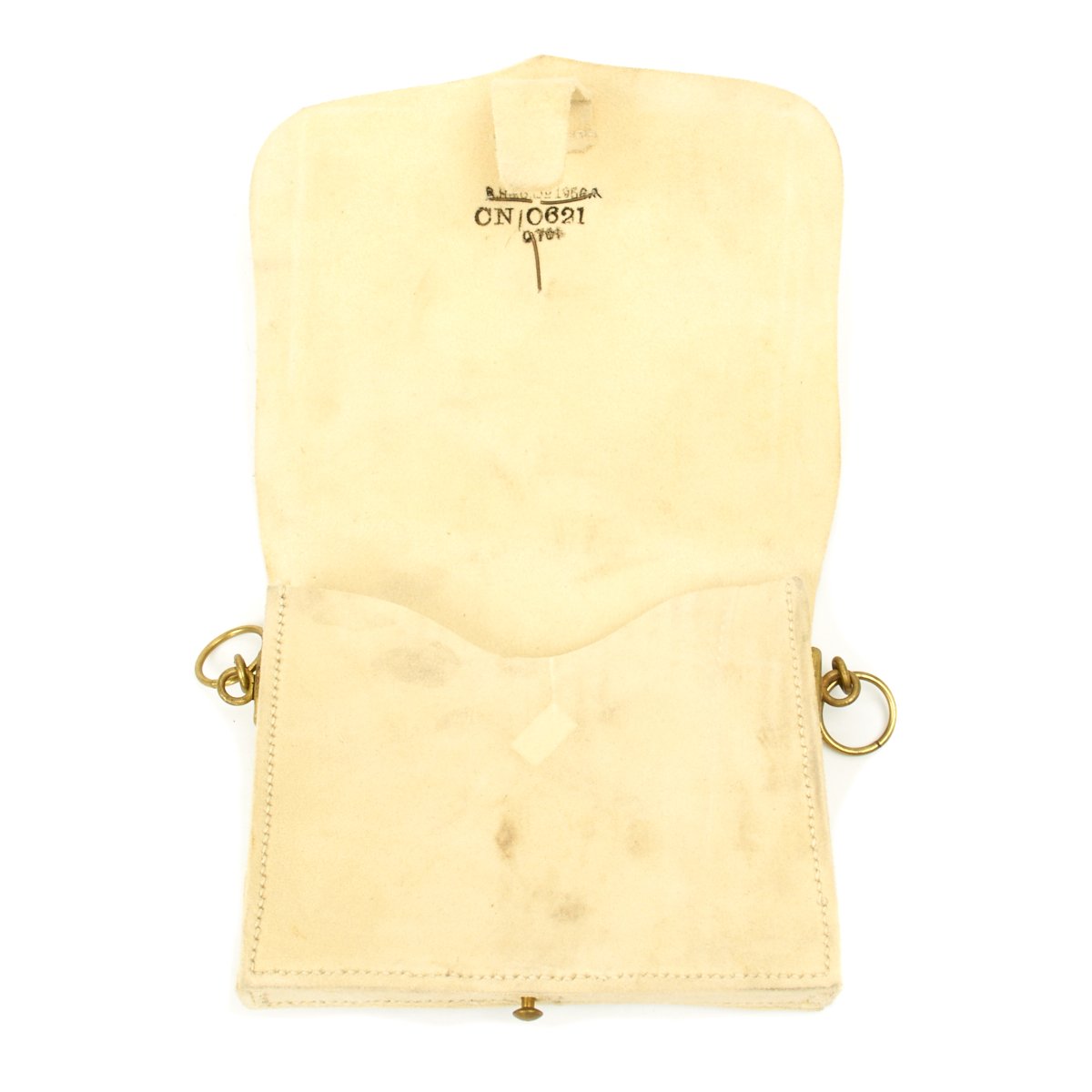 Original Item: These are a real hold-over from the Victorian Era. Large cream Buff Leather Document Pouches bearing Makers names and dated in the 1950s. Probably un-issued and fresh from storage; these all bear the brass British Royal Coat of Arms Badge. Complete with side hanging rings, these were originally designed to carry Orders on the Battle Field in Victorian times, long before radios, cell phones and the like... Another bit of British nostalgia that has been kept alive into the 21st century. Measures: 8" L x 2" W x 6" H