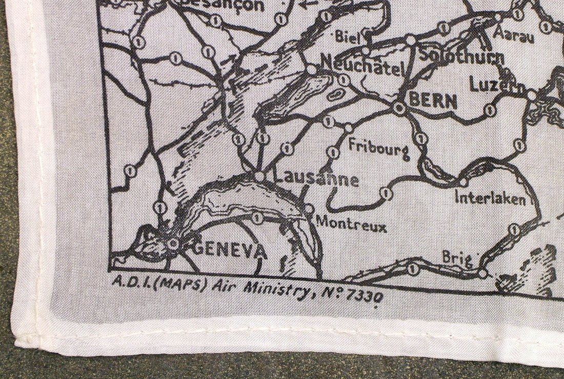 Luckily this small quantity of un-issued maps, which are folded like handkerchiefs, were recently discovered in an R.A.F facility in rural England. This may be the last opportunity to add one of the exceptionally rare and interesting "WW2 Escape Maps" in virtually like new condition to your WW2 collection.