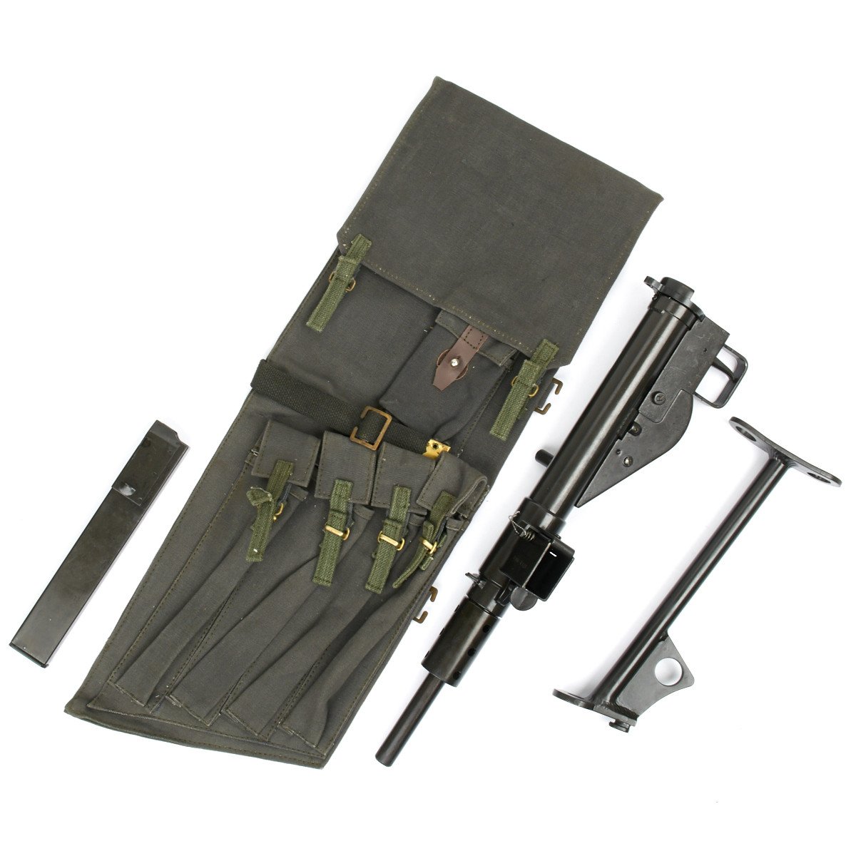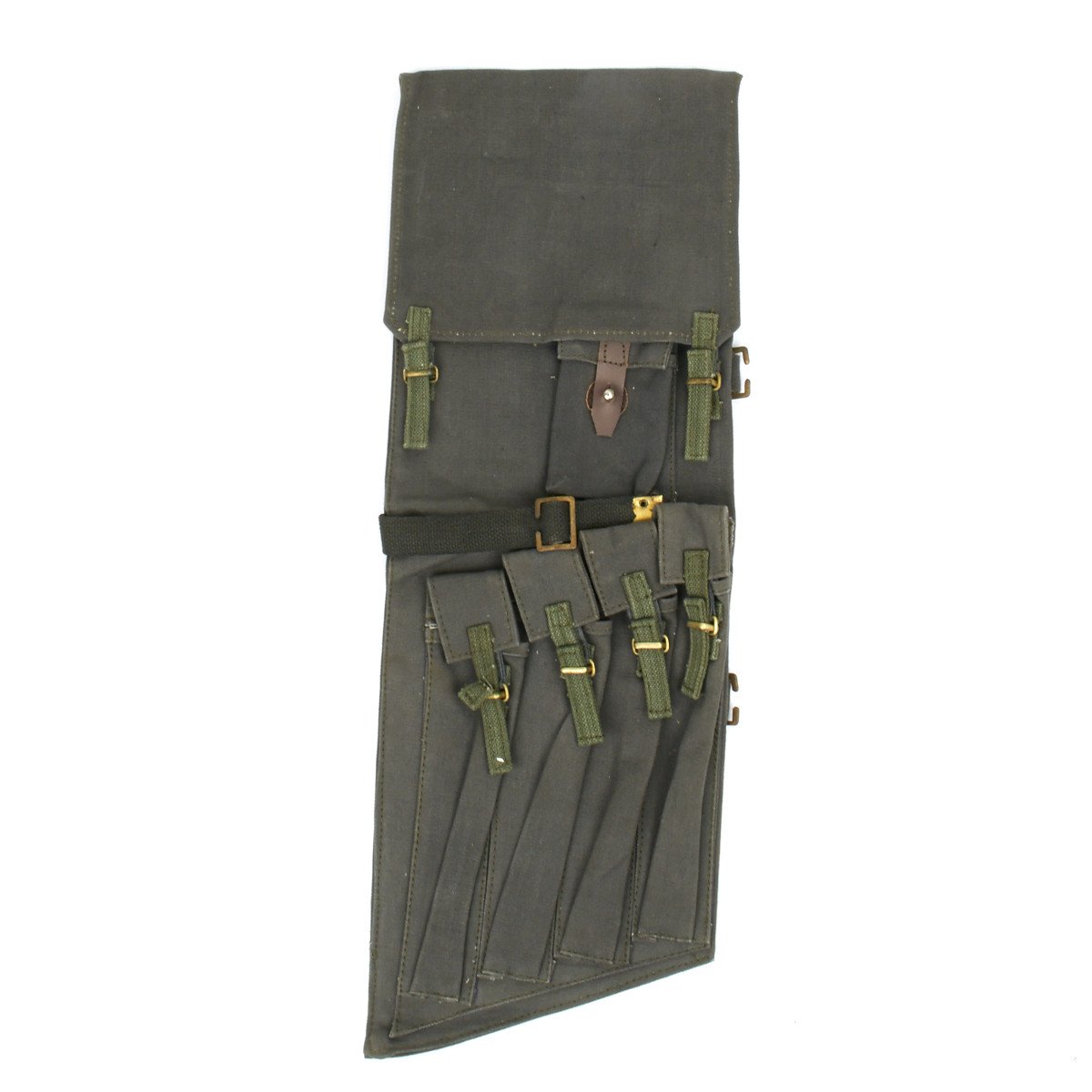 New Made Item: Constructed from heavy quality Canvas with brass buckles and fittings, these bags were designed to transport any model Sten SMG with butt detached. Exterior of bag has pouches for four individual 32 round magazines, a pouch for the magazine loader, as well as various strap buckles for the attachment of sling or body harness.