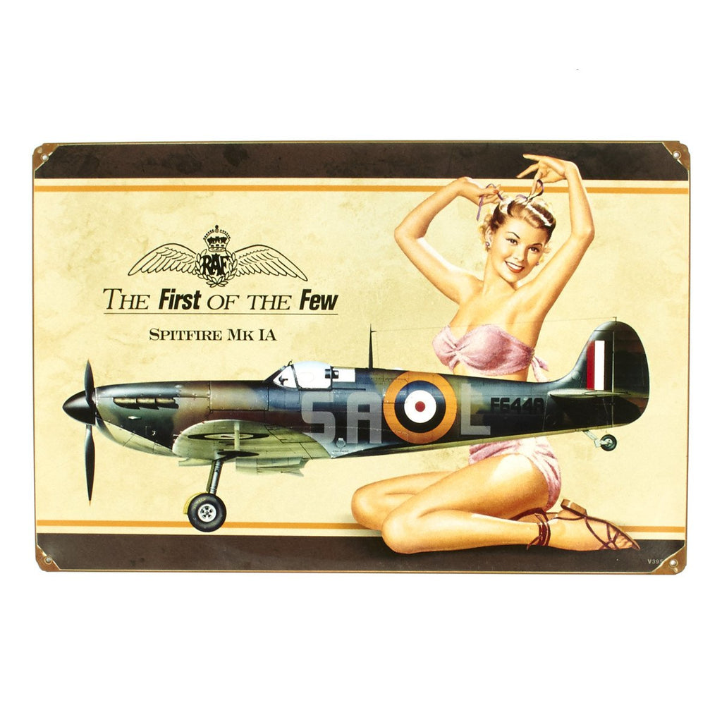 British WW2 Vintage Metal Sign: Spitfire Pinup