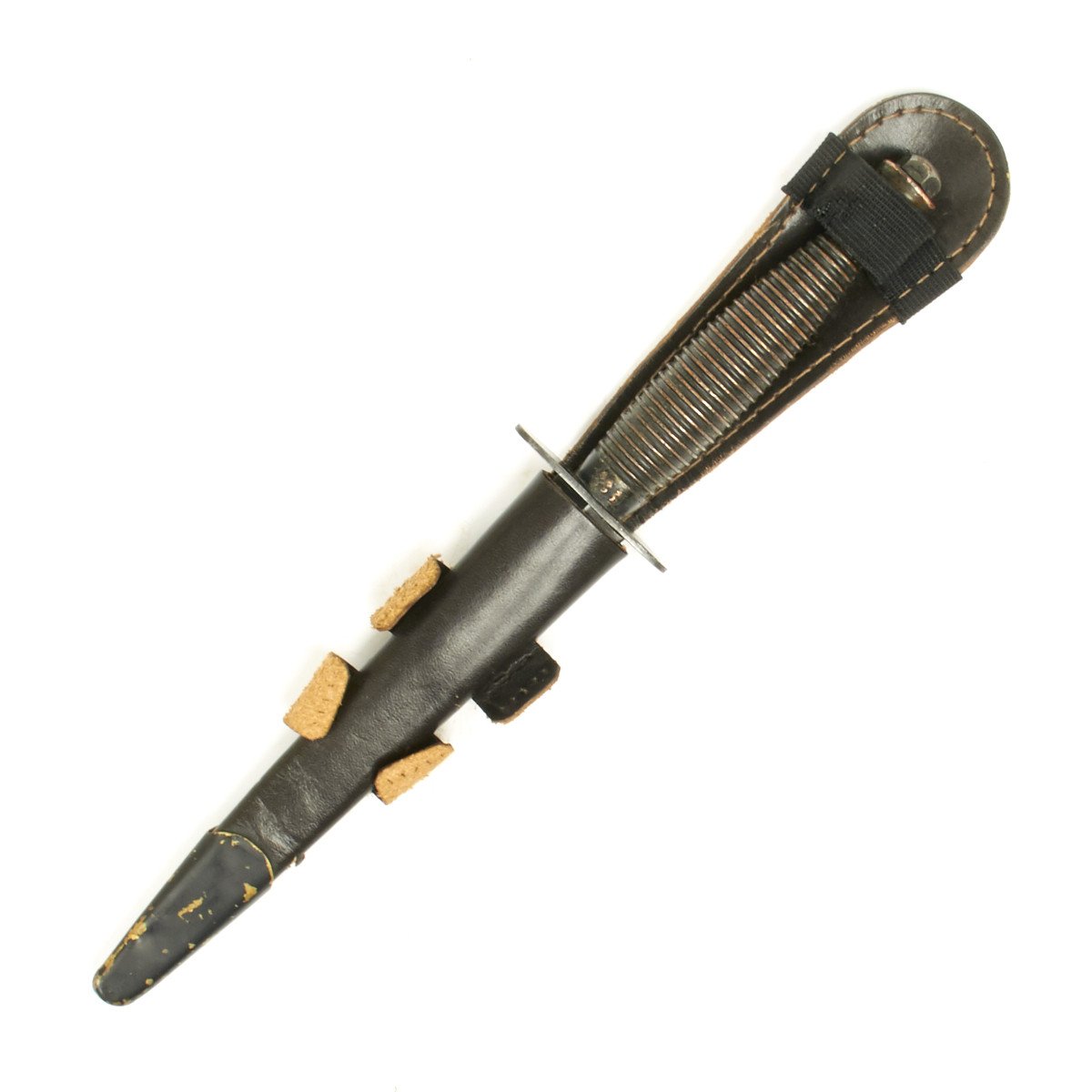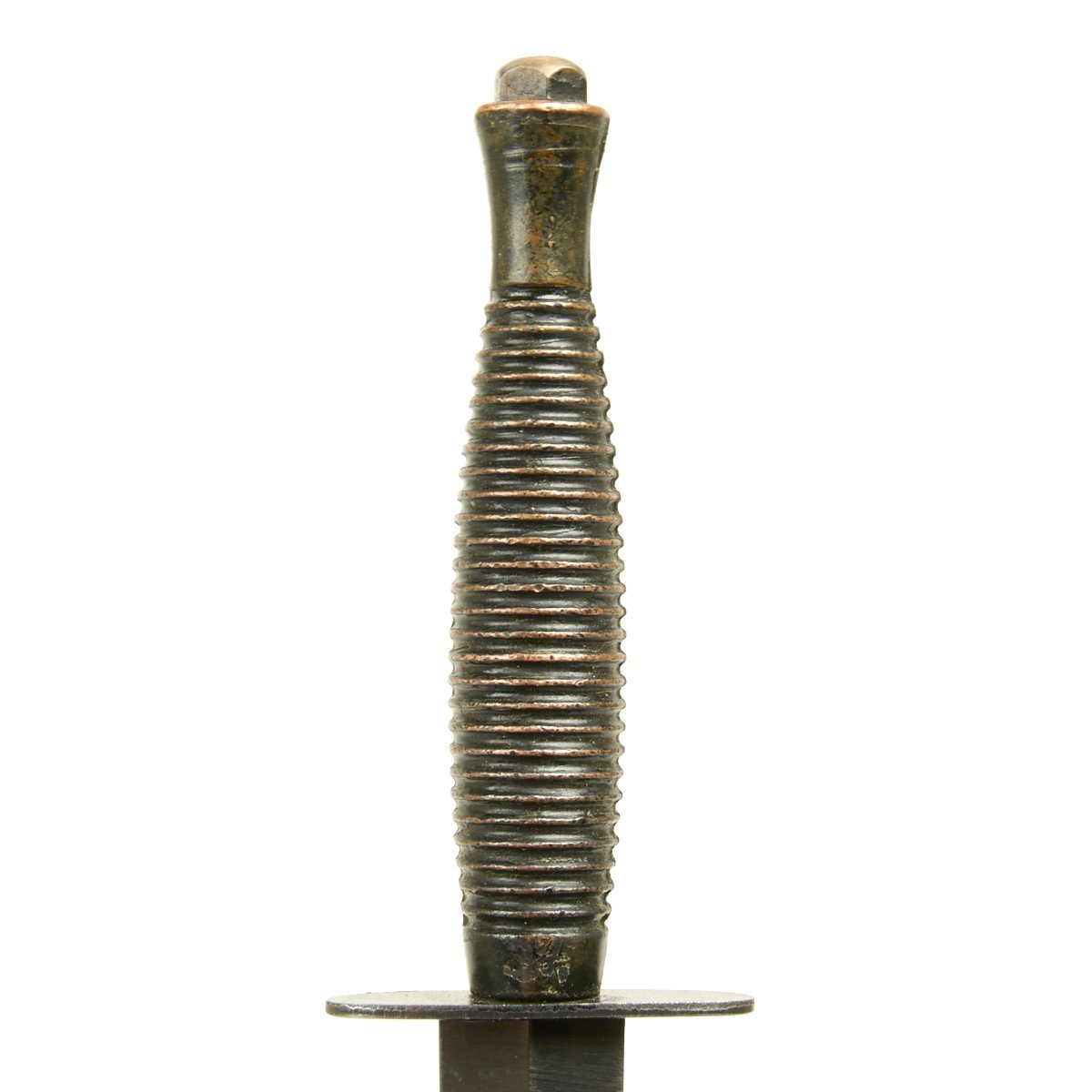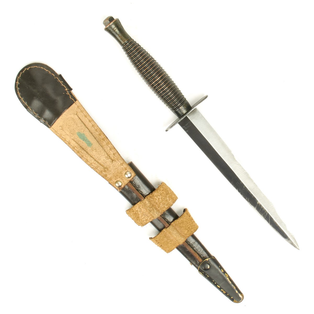 - New Made Item: This is a very high quality reproduction FairbairnSykes Their Pattern Fighting Knife. Made over 20 years ago, it is easily among the highest quality versions we have ever seen. It is razor sharp, as heavy as the originals and seems correct in every way. The FairbairnSykes fighting knife is a double-edged fighting knife resembling a dagger or poignard with a foil grip developed by William Ewart Fairbairn and Eric Anthony Sykes in Shanghai based on concepts which the two men initiated before World War II while serving on the Shanghai Municipal Police in China. The F-S fighting knife was made famous during World War II when issued to British Commandos, the Airborne Forces, the SAS and many other units, especially for the Normandy landings in June 1944. With its acutely tapered, sharply pointed blade, the F-S fighting knife is frequently described as a stiletto, a weapon optimised for thrusting, although the F-S knife is capable of being used to inflict slash cuts upon an opponent when its cutting edges are sharpened according to specification. The Wilkinson Sword Company made the knife with minor pommel and grip design variations. The F-S knife is strongly associated with the British commandos and the US Office of Strategic Services (OSS) and Marine Raiders (who based their issued knife on the Fairbairn-Sykes), among other special forces / clandestine / raiding units. It features in the insignia of the British Royal Marines, the Belgian Commandos, the Dutch Commando Corps, founded in the UK during World War II, the Australian 1st Commando Regiment and 2nd Commando Regiment, and the United States Army Rangers, both founded with the help of the British Commandos. Large numbers of Fairbairn Sykes knives of varying types, including some with wooden grips, were used by the 3rd Canadian Infantry Division that landed on Juno Beach on "D" Day and by the men of the 1st Canadian Parachute Battalion who jumped and fought on the same day. A solid gold F-S fighting knife is part of the commandos' memorial at Westminster Abbey. The first batch of fifty F-S fighting knives were produced in January 1941 by Wilkinson Sword Ltd after Fairbairn and Sykes had travelled to their factory from the Special Training Centre at Lochailort in November 1940 to discuss their ideas for a fighting knife. The F-S fighting knife remains in production because of continued use in hand-to-hand combat situations around the world.