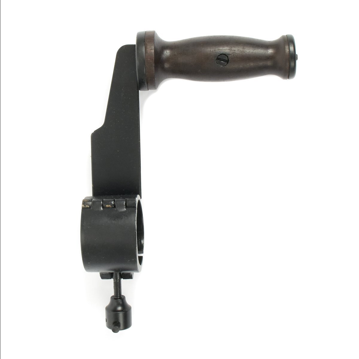 New Made Item: Browning .30 Caliber Machine Gun carry handle Assembly that locks around the Ventilated Barrel Jacket immediately in front of the receiver with a quick release threaded locking latch. Complete with folding steel handle and wooden grip. Very nice quality item and a great accessory for the M-1919A4 LMG.