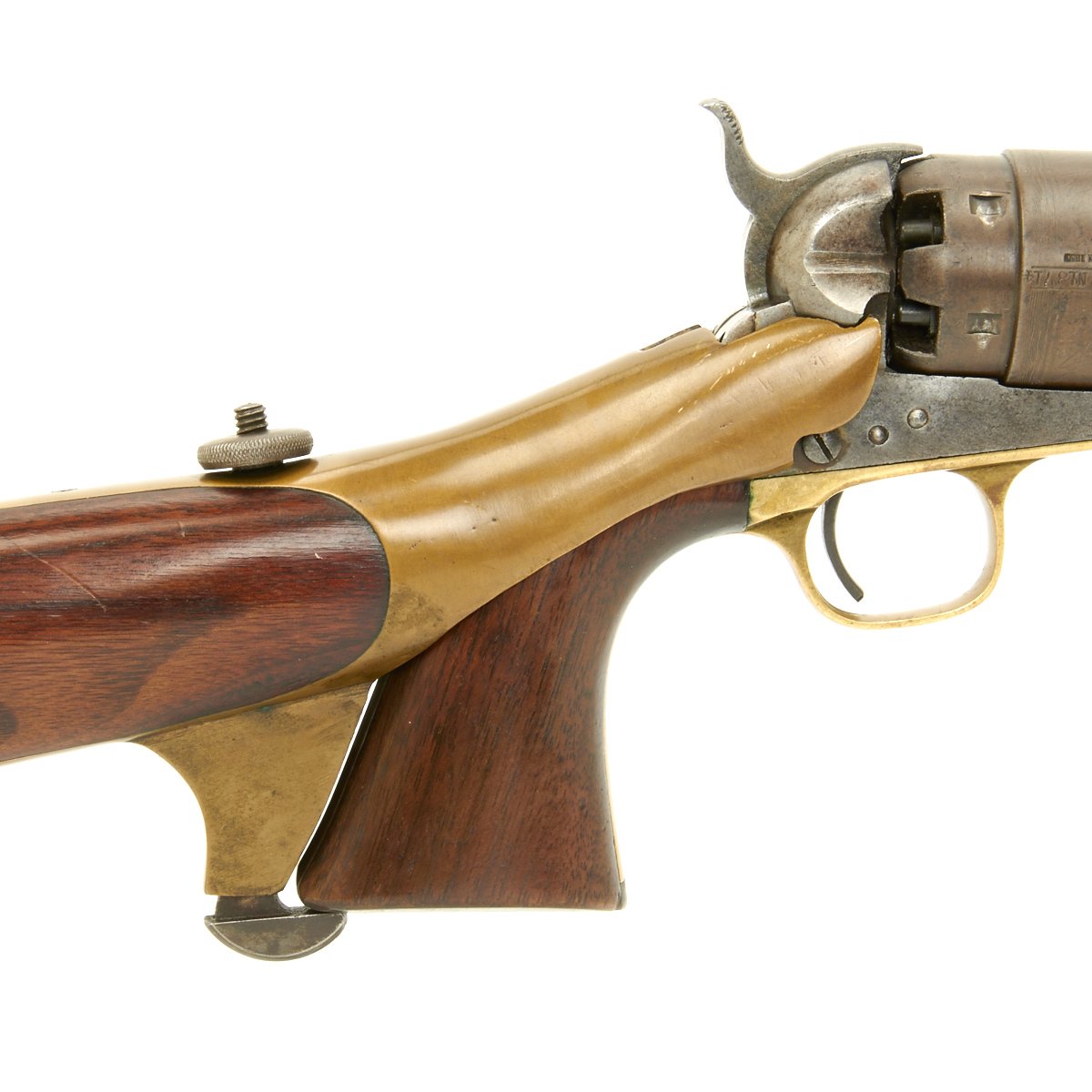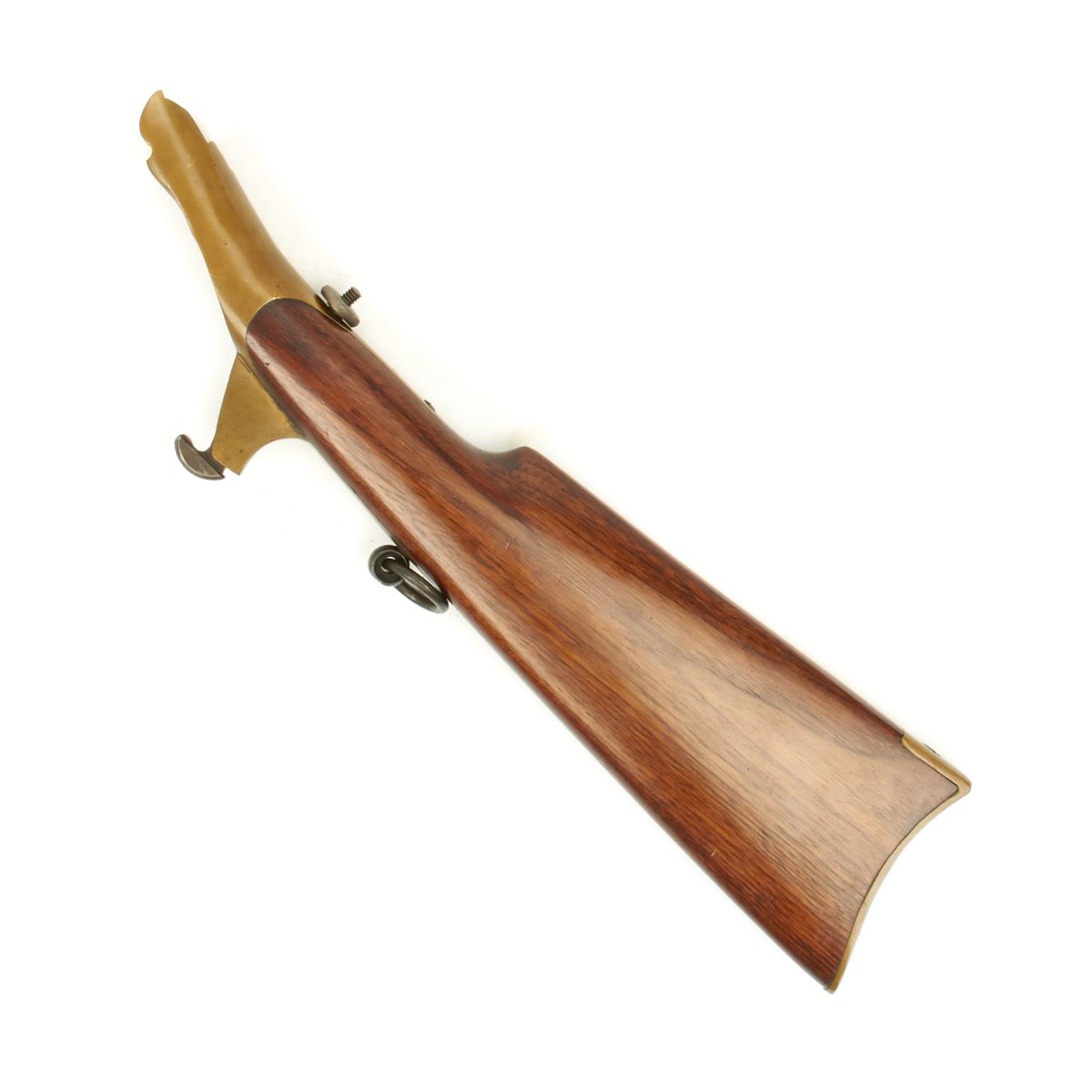New Made Item: One only. This is a high quality 1960s replica of the shoulder stock for the Military Issue Colt 1860 Army percussion Revolver. The build quality is extremely high, and due to the age it now has an excellent patina on the metal and wood, making it an ideal addition to any early early "4 Screw" Colt 1860 Army, which have the two additional screw bolsters on the side for butt stock attachment, as well as the appropriate recoil shield and butt strap cutouts. Please note that this stock will only fit the early military issue 4 screw revolvers.