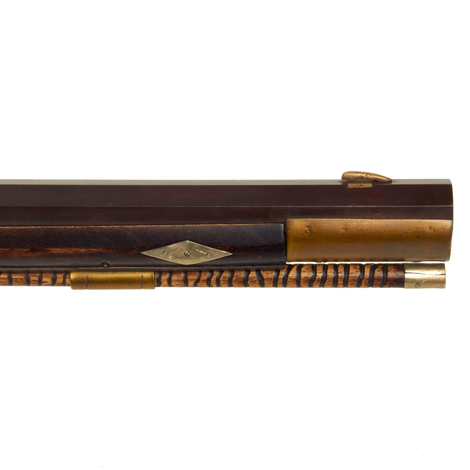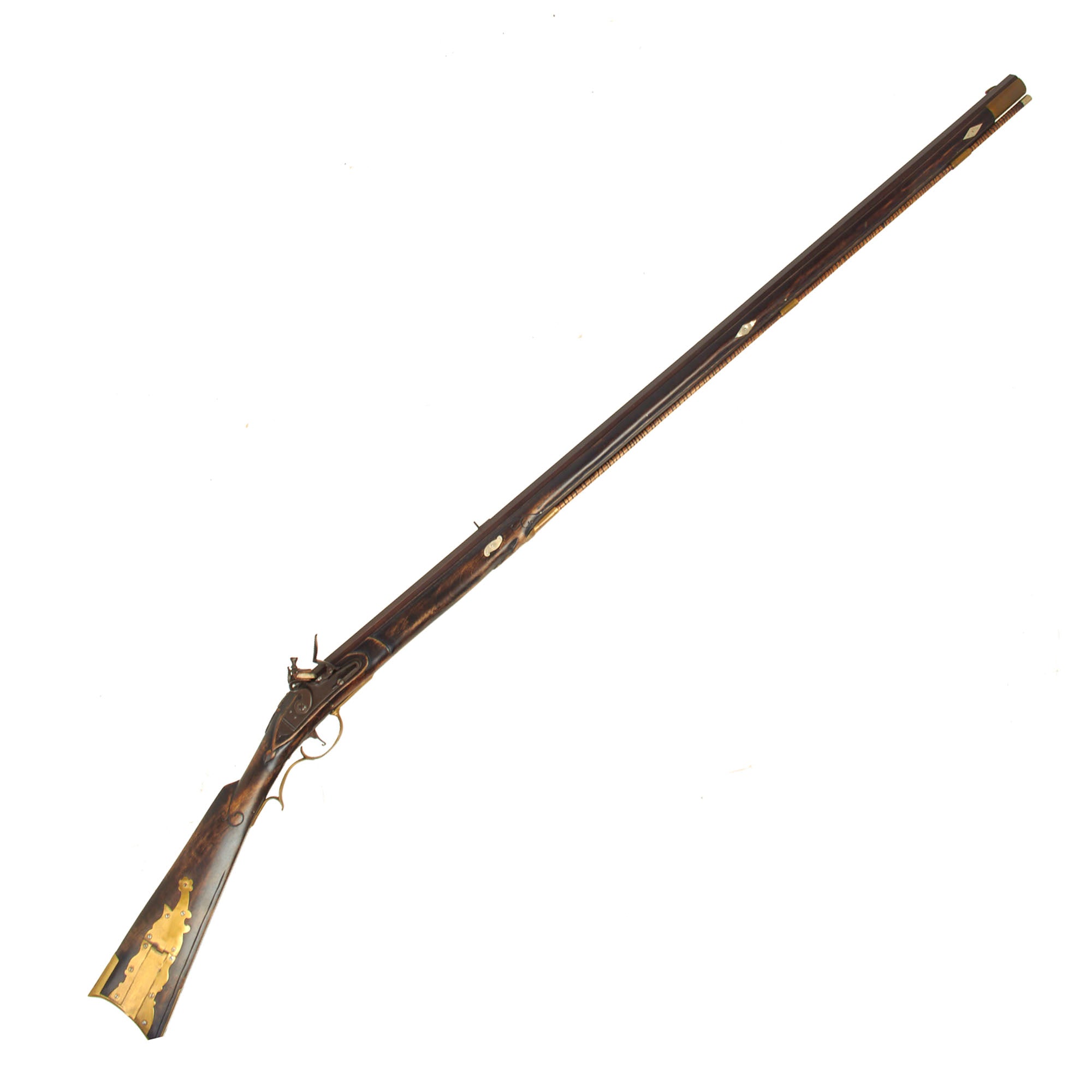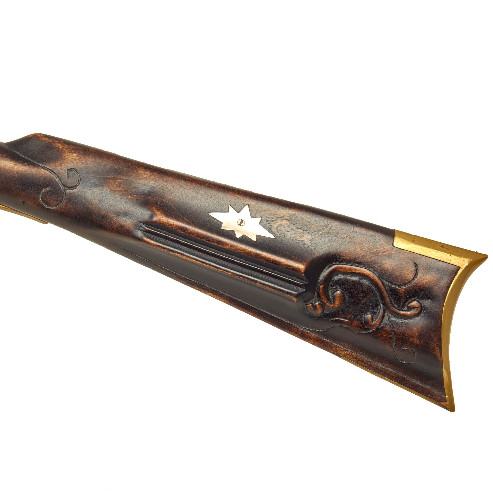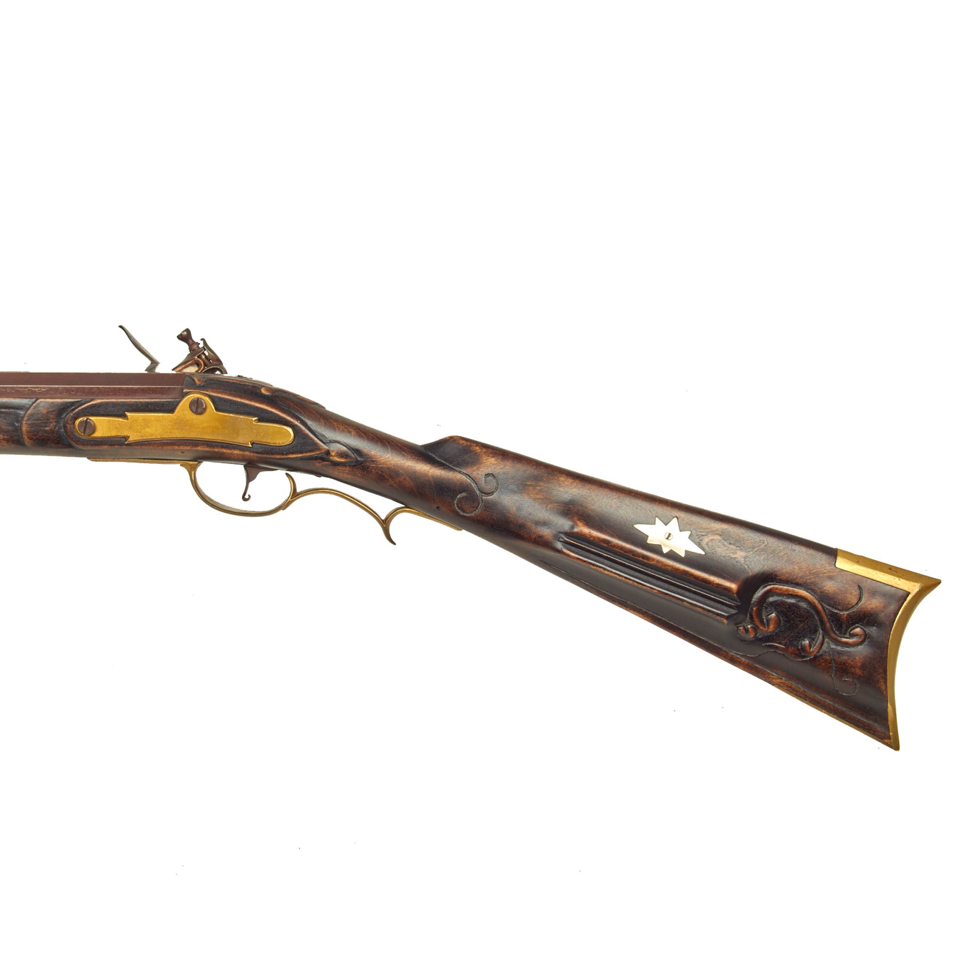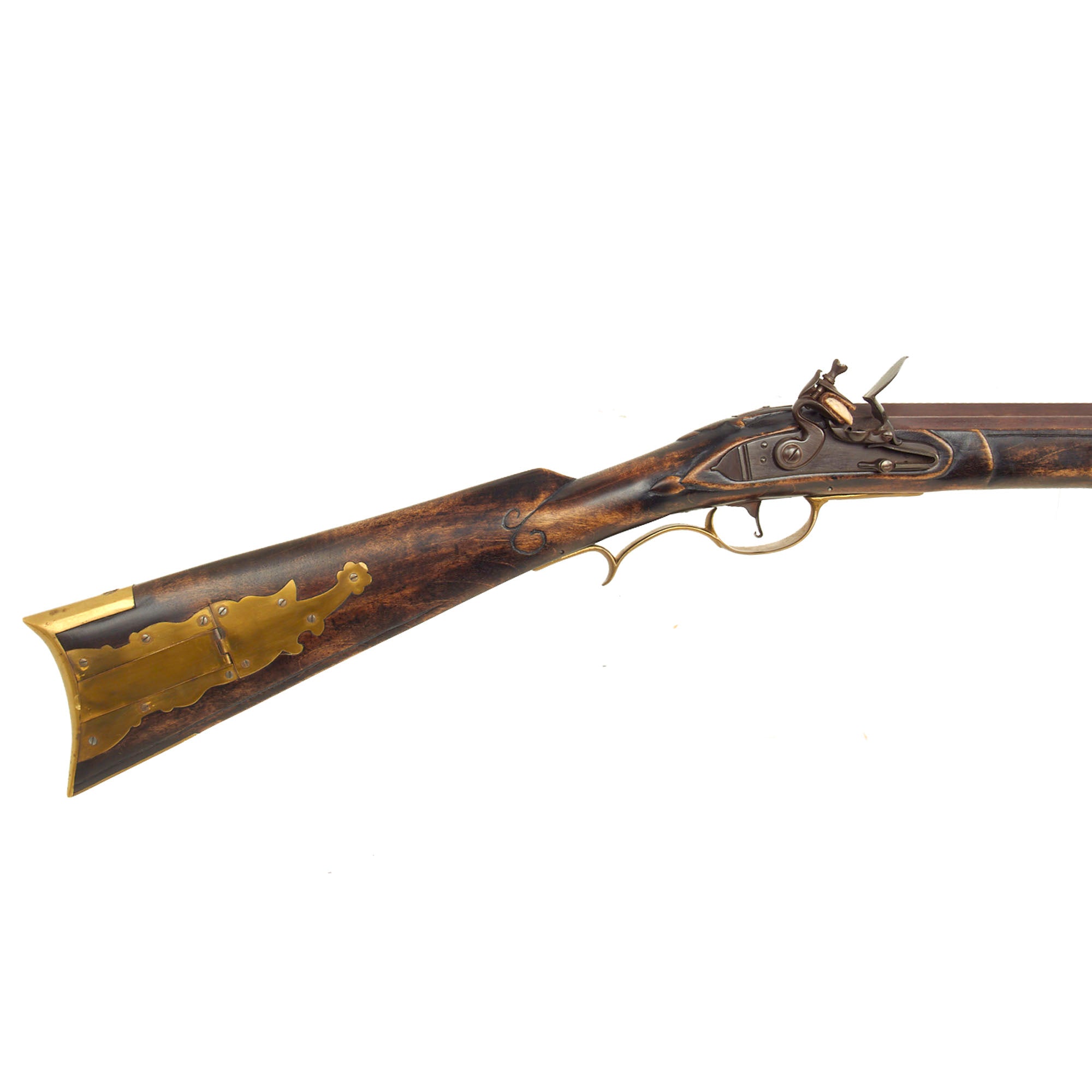 Contemporary Replica Item: Only One Available. Here is a very nice recent production octagonal barreled "Kentucky" style rifle, which more correctly is known as a Pennsylvania Rifle. Recently interest in the style has undergone quite a resurgence, and rather than risk damage to a valuable antique, many companies and artisans have started producing the style again. This example may possibly have been made from a kit of some sorts, but was definitely expertly assembled from high quality components.