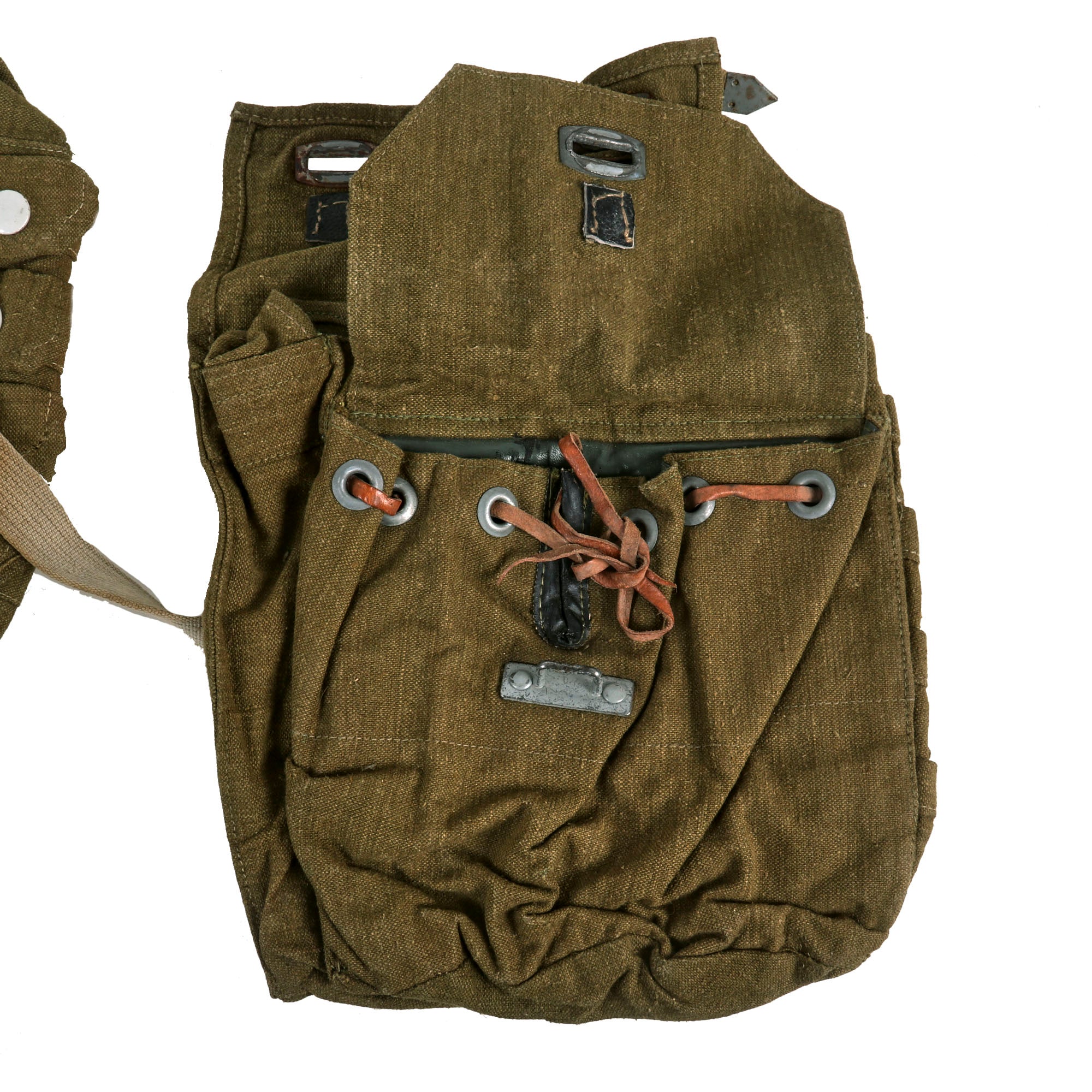 Original Items: One Set of Two Available. Here we have a great set of left and right side pouches from the German WWII Pioniersturmgepäck Pioneer Combat Engineer Assault Pack Assembly adopted by the German Army on March 27th, 1941. These pack assemblies consisted of a backpack hooked onto the standard belt support straps (Y straps) with two side pouches; to be worn in place of, or in addition to, ammunition pouches. This set is the left and right side pouches only, and does not include the central pack.