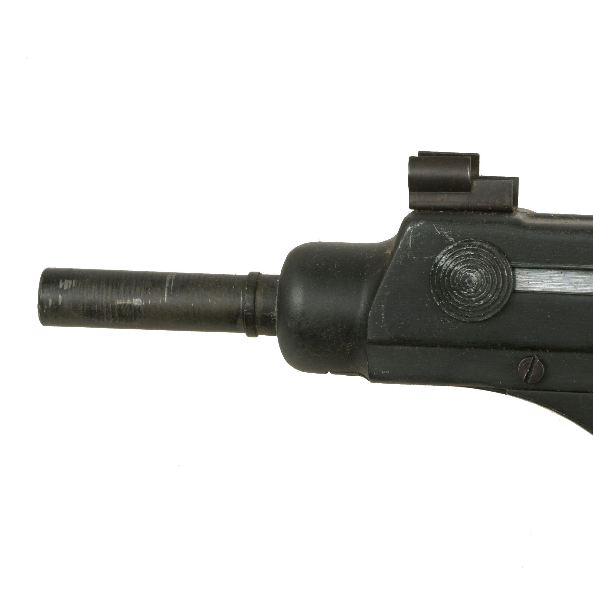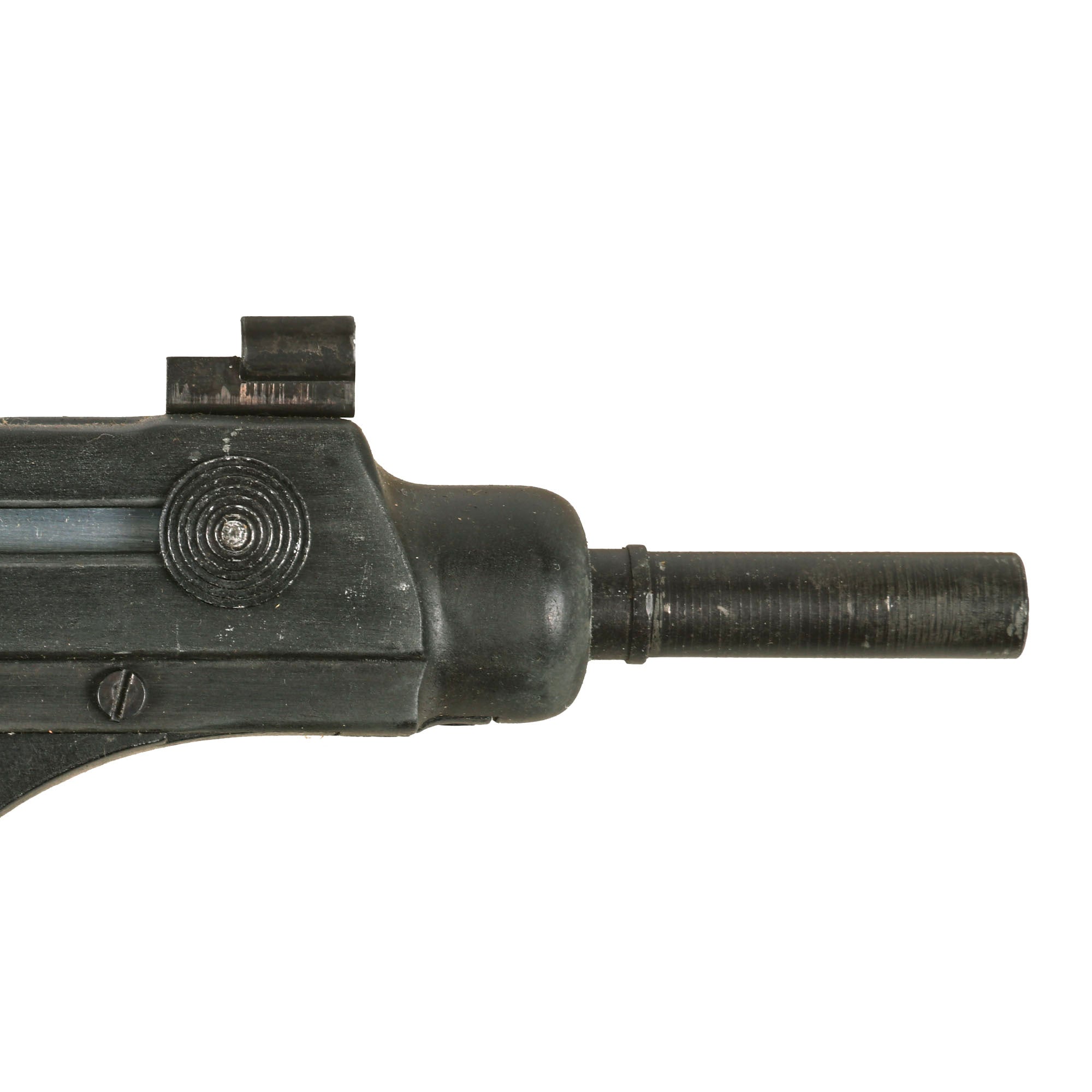 Designed to fire brass blank blow back rounds (rounds are not included). When the brass cartridges are fitted with the proper caps, this replica is designed to fire in semi and full auto modes. The tolerances are tight and the machining is accurate. These replica blow-back blank guns are essentially very realistic and sophisticated toy cap guns. They ignite a small primer that fits into the brass “cartridges” which, when the trigger is pulled, creates a small ignition that in turn cycles the bolt to blowback, eject the spent casing, then chamber another “round” to repeat the process. It will fire in semi-automatic or full automatic mode. The brass cartridges are 100% reusable. Brass cartridges are not included. Overall condition of this example is excellent.