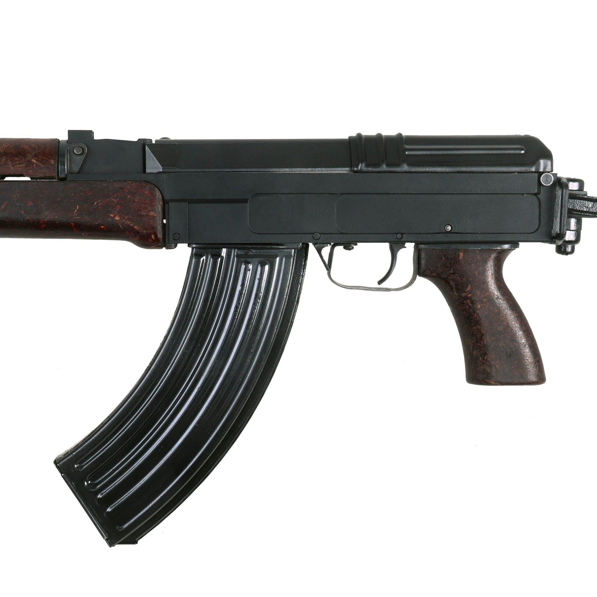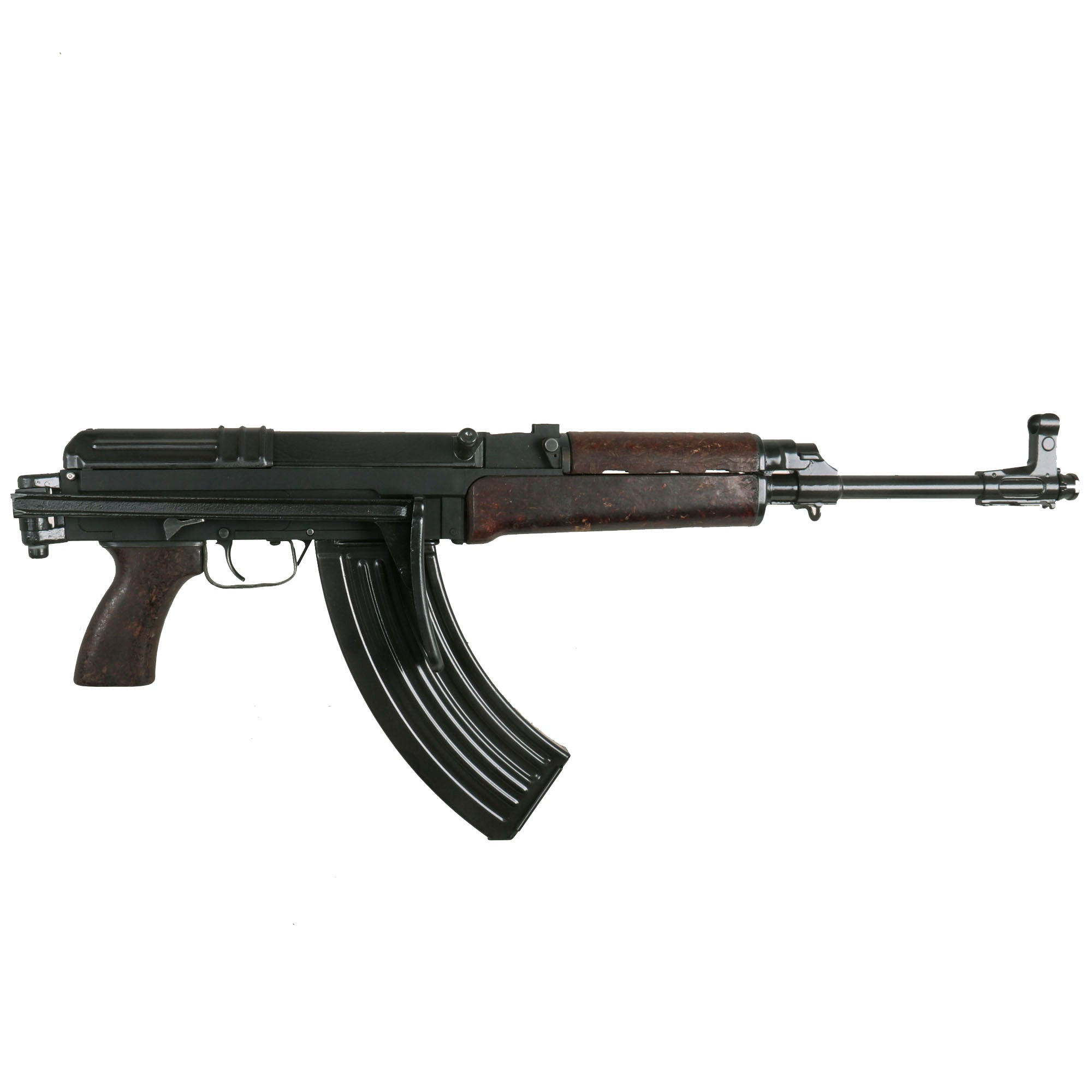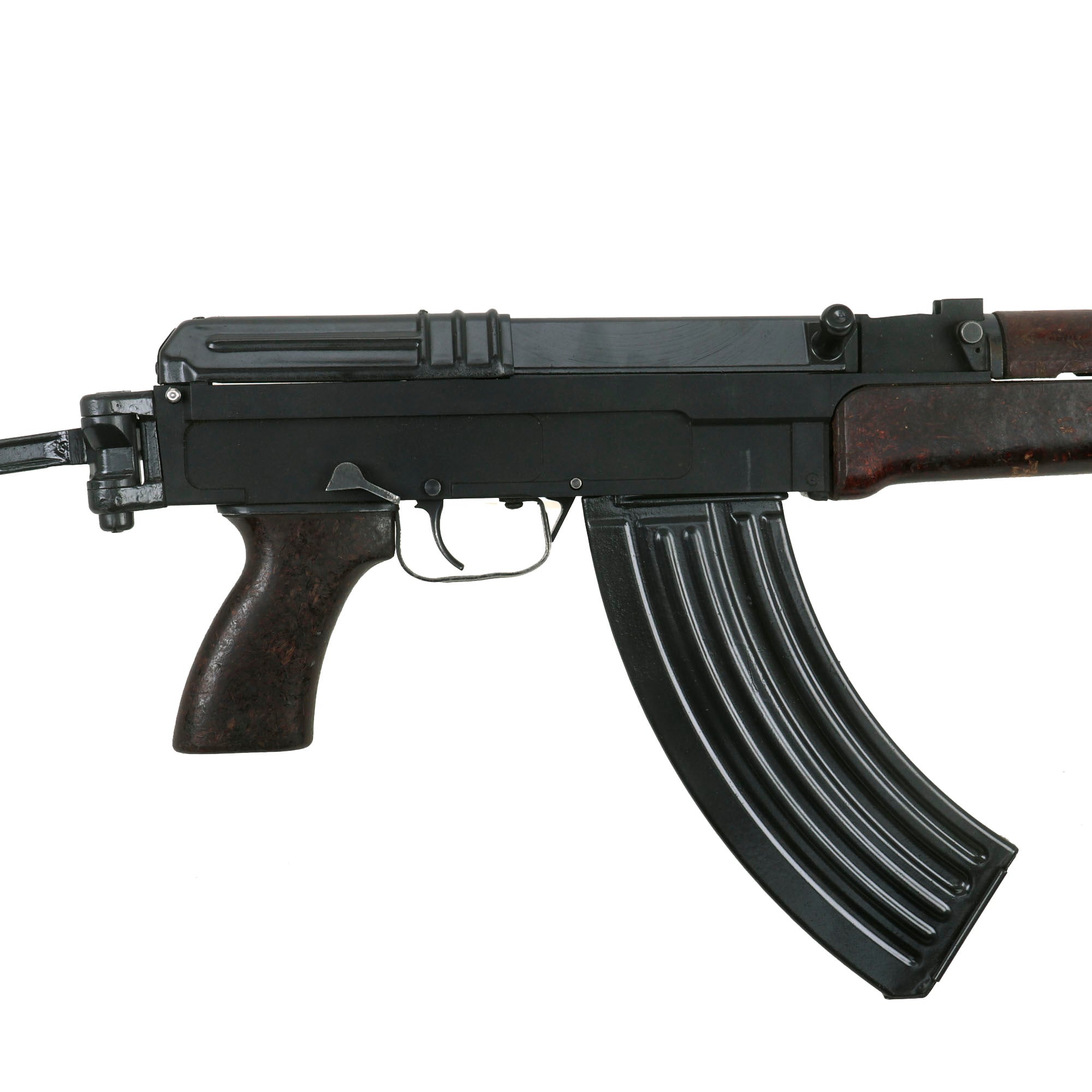 New Made Replica Item: This Vz58 is an incredibly accurate non-firing replica constructed of metal, plastic, and bakelite. The weight and feel are true to the Czech Army issue while the quality of materials and attention to detail bring this rifle to life. There is no better choice for re-enactors and Czech Army buffs than this Vz. Assembled with the lovely infantry red bakelite butt stock. This is a dummy rifle, even though it looks real, live ammunition cannot be loaded into it, nor can it be converted to fire live ammunition. The magazine well is completely blocked off, per manufacturer's design. This bolt on this example does not move back and forth, but the trigger does pull. We are not sure if the ability of the bolt to move was removed, or whether it has been modified. You can however insert a magazine and run mag drills like you would with any other type of magazine fed rifle, but it is impossible to chamber a live or dummy round.