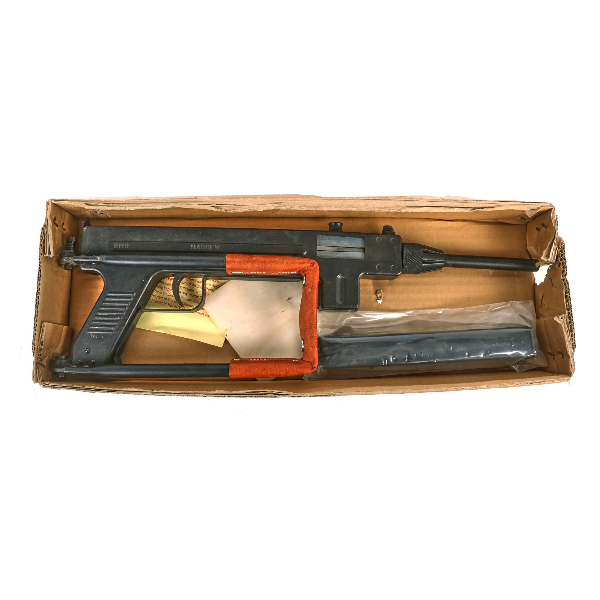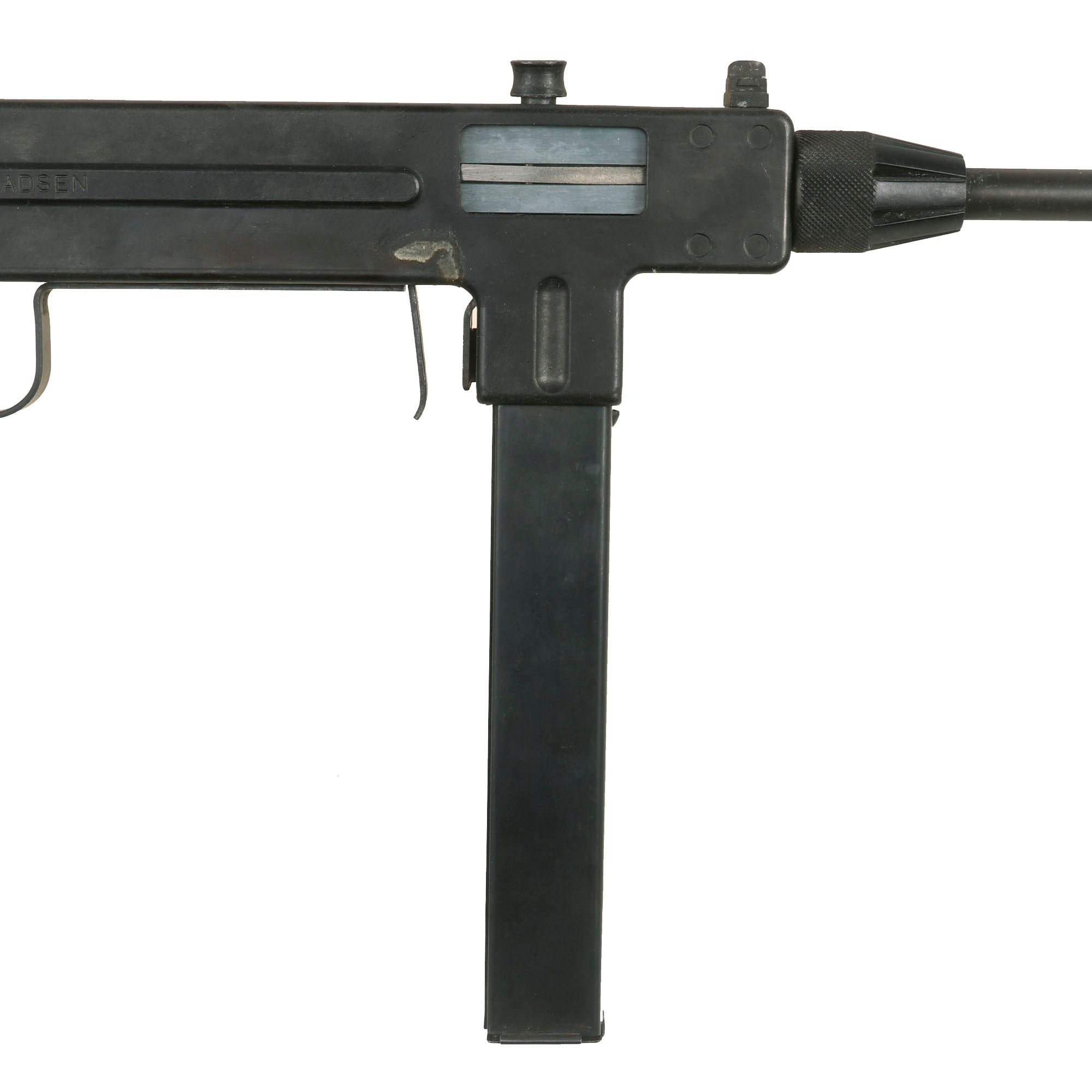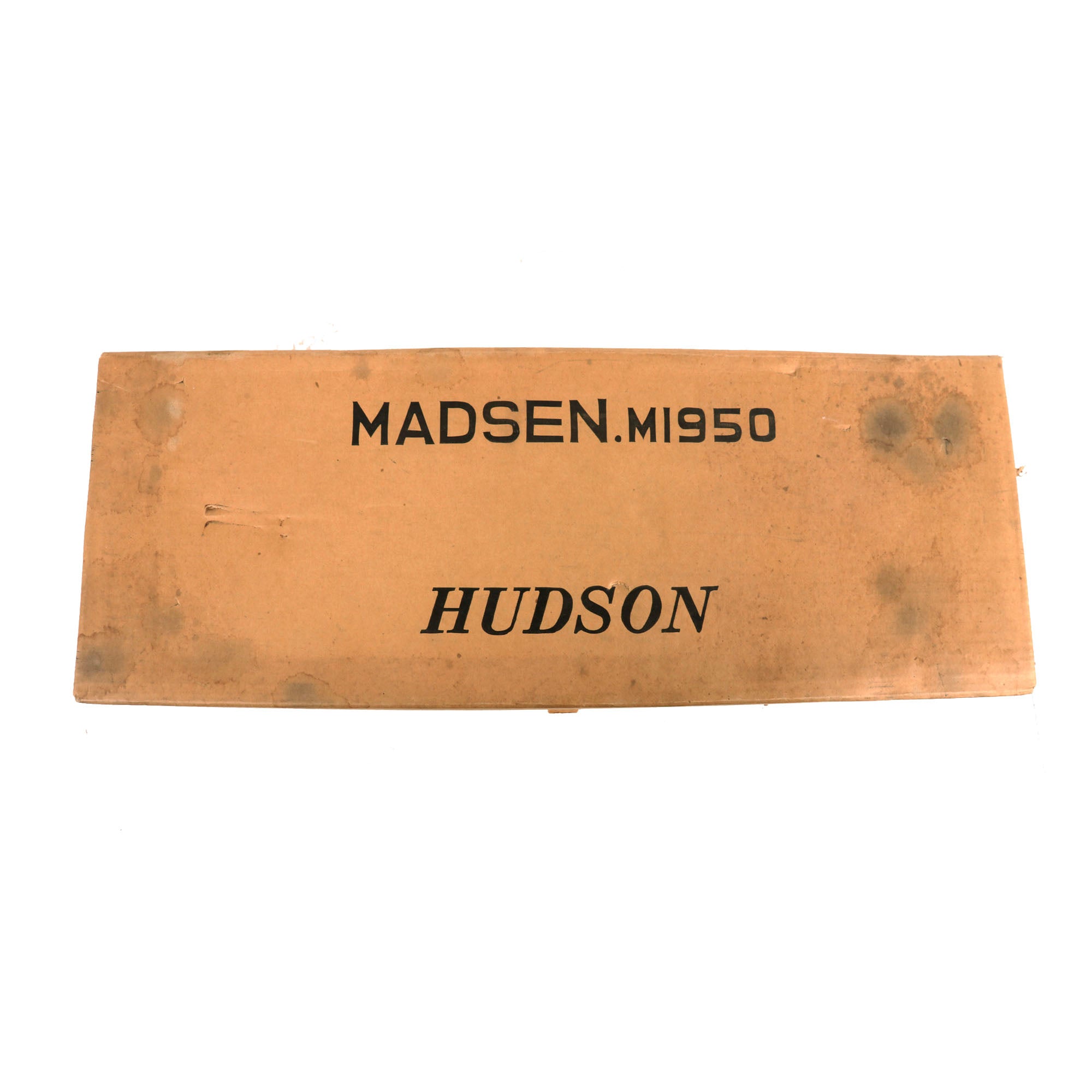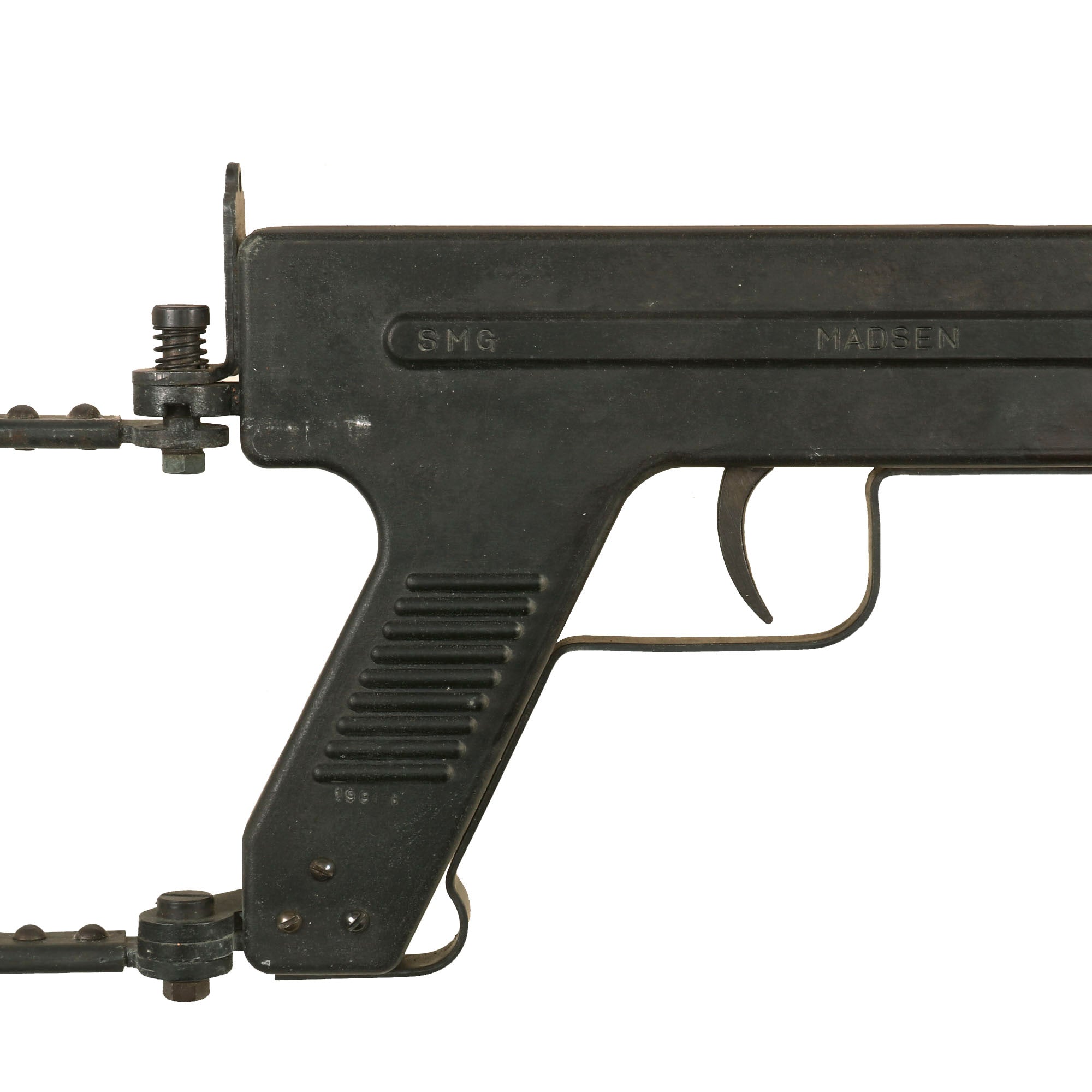 Original Item: Only One Available. This is a very good condition Hudson Toy Company of Japan blank fire Danish Madsen M-50 Sub Machine Gun Replica. These replica toys guns were built to extremely high quality standards and have become incredibly collectible in their own right. The example features a real hardwood stock with metal construction. Functional spring loaded thumb lever activated magazine release, functional trigger with bolt action that fires from the "open bolt" position, metal screws, fixed forward combat sights with adjustable rear sights, safety, all metal drum magazine and more. Entire replica will break down and function as the original but CANNOT BE MADE TO FIRE REAL AMMUNITION. This is not a gas operated gun and does not fire plastic pellets of BBs.