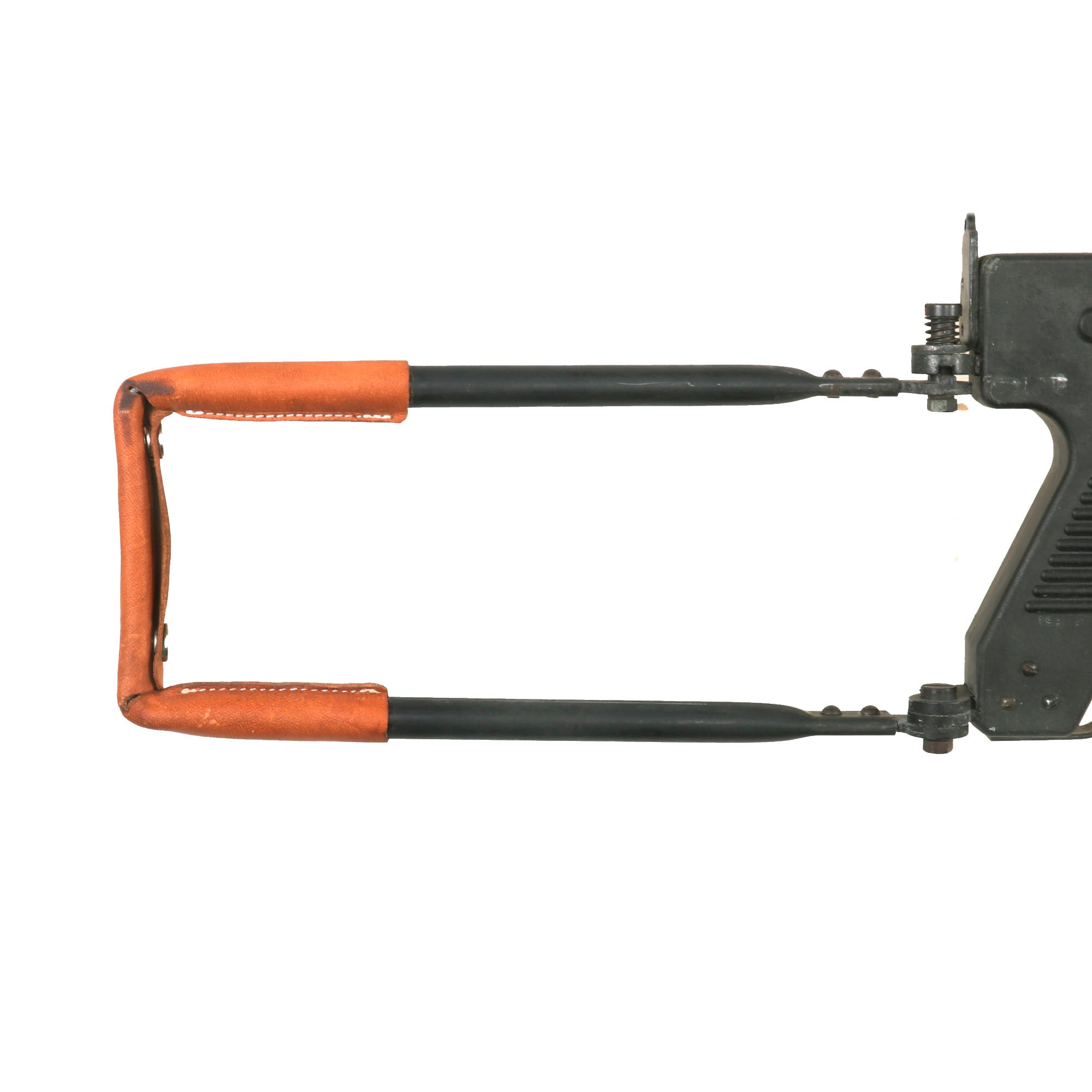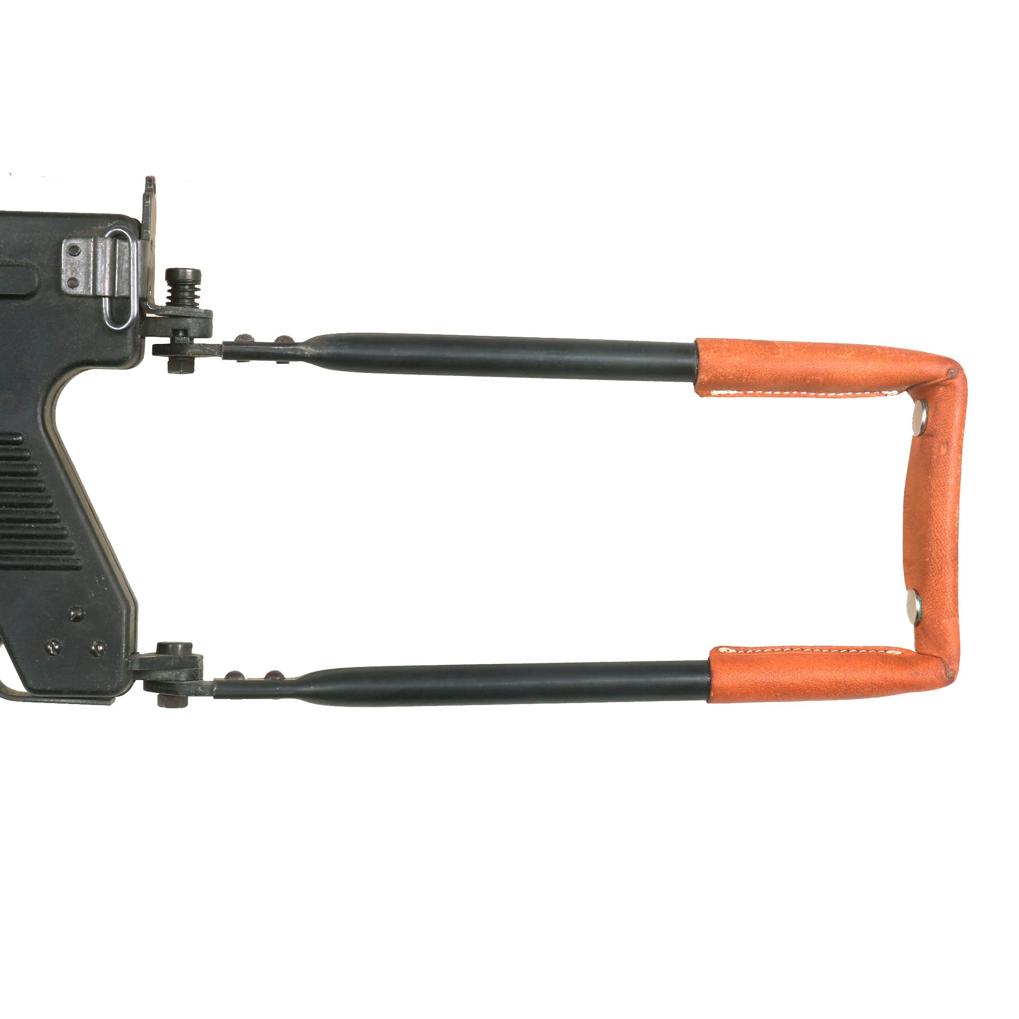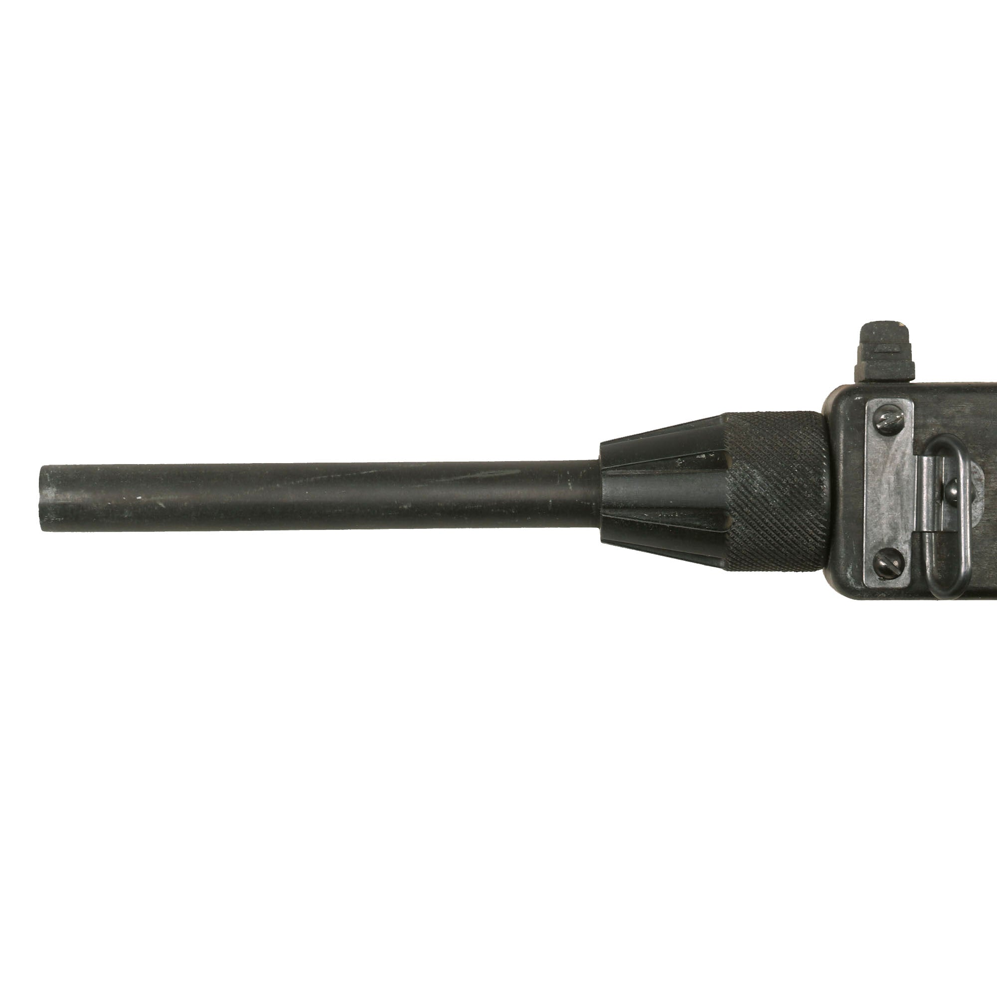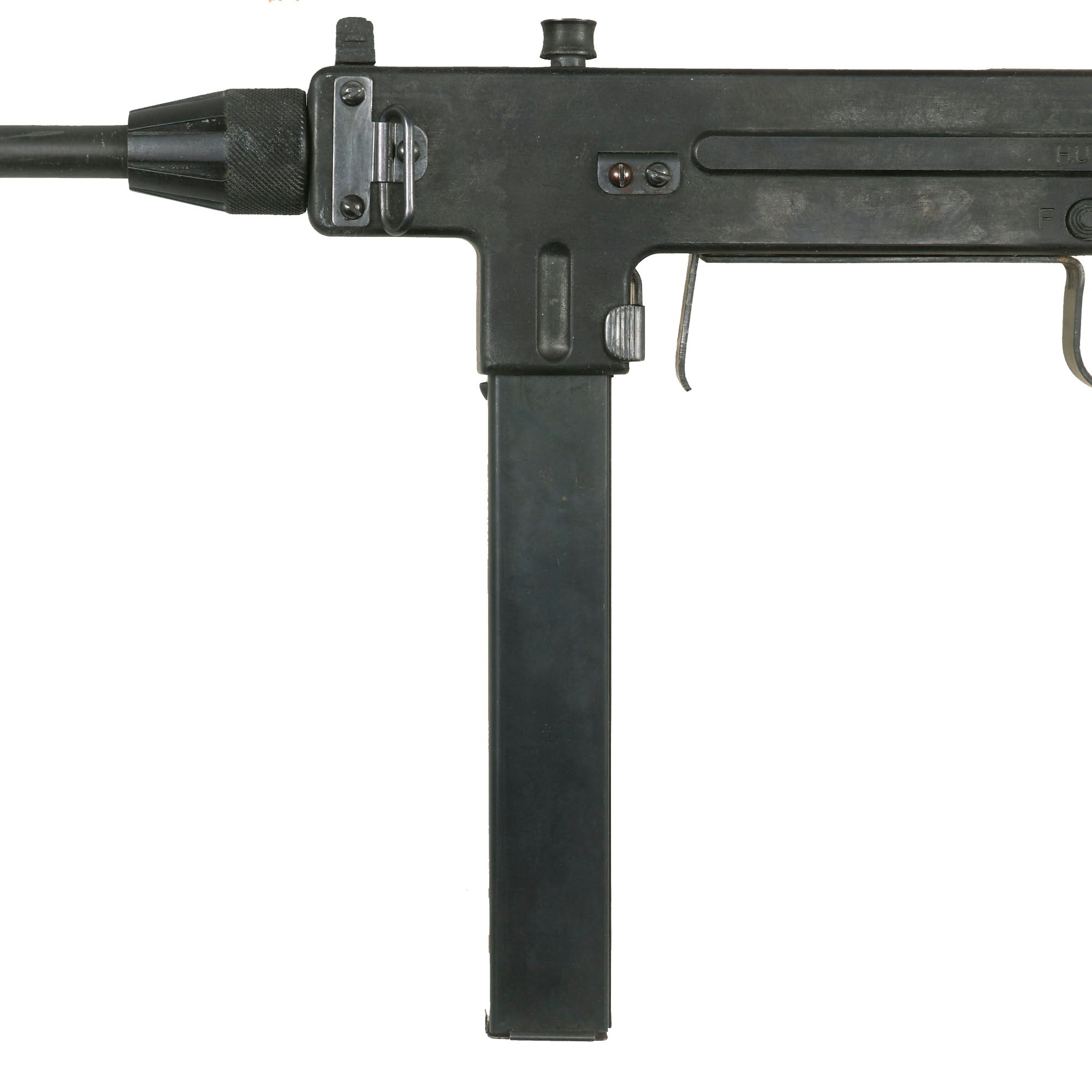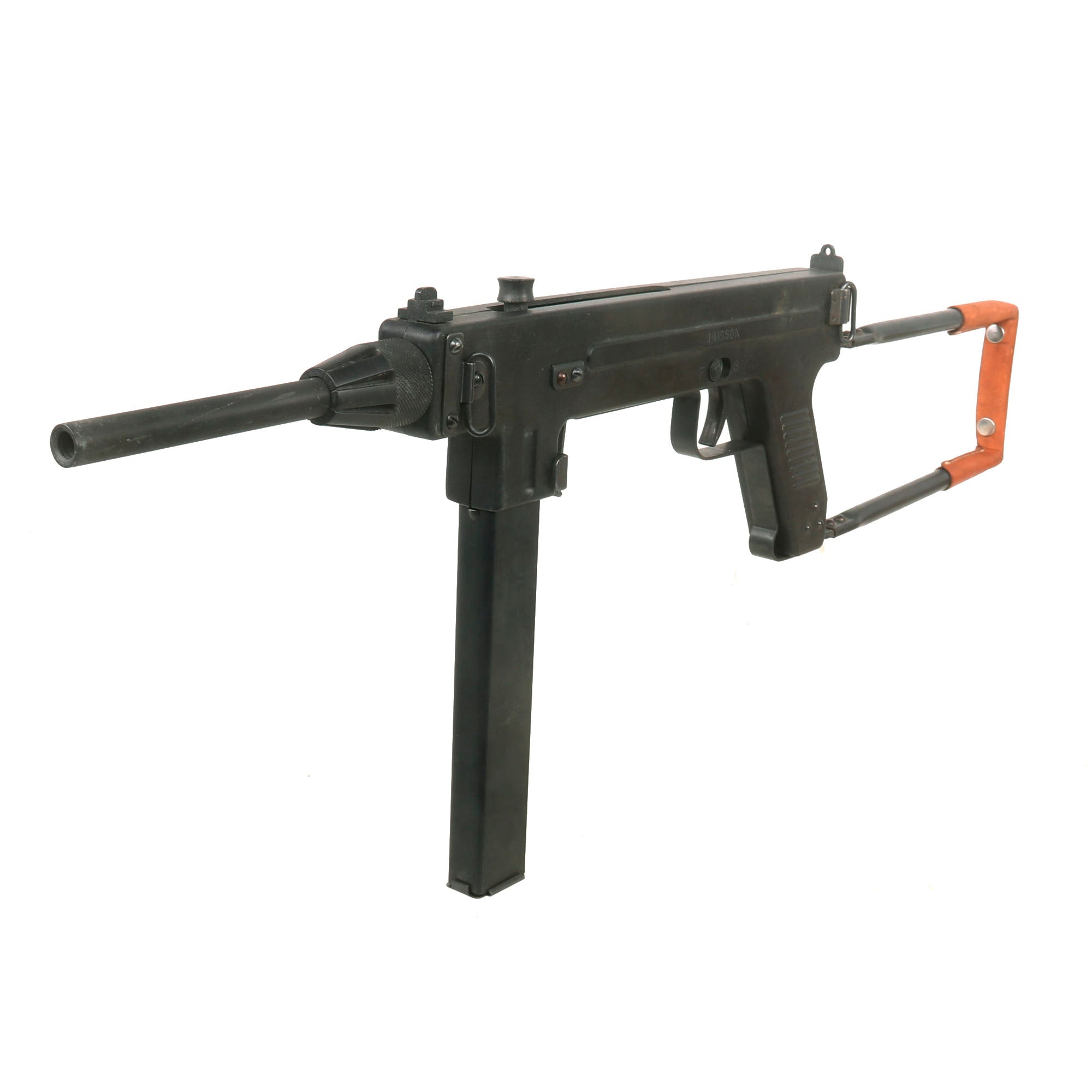 Designed to fire brass blank blow back rounds (rounds are not included). When the brass cartridges are fitted with the proper caps, this replica is designed to fire in semi and full auto modes. The tolerances are tight and the machining is accurate. These replica blow-back blank guns are essentially very realistic and sophisticated toy cap guns. They ignite a small primer that fits into the brass “cartridges” which, when the trigger is pulled, creates a small ignition that in turn cycles the bolt to blowback, eject the spent casing, then chamber another “round” to repeat the process. It will fire in semi-automatic or full automatic mode. The brass cartridges are 100% reusable. Brass cartridges are not included. Overall condition of this example is excellent.