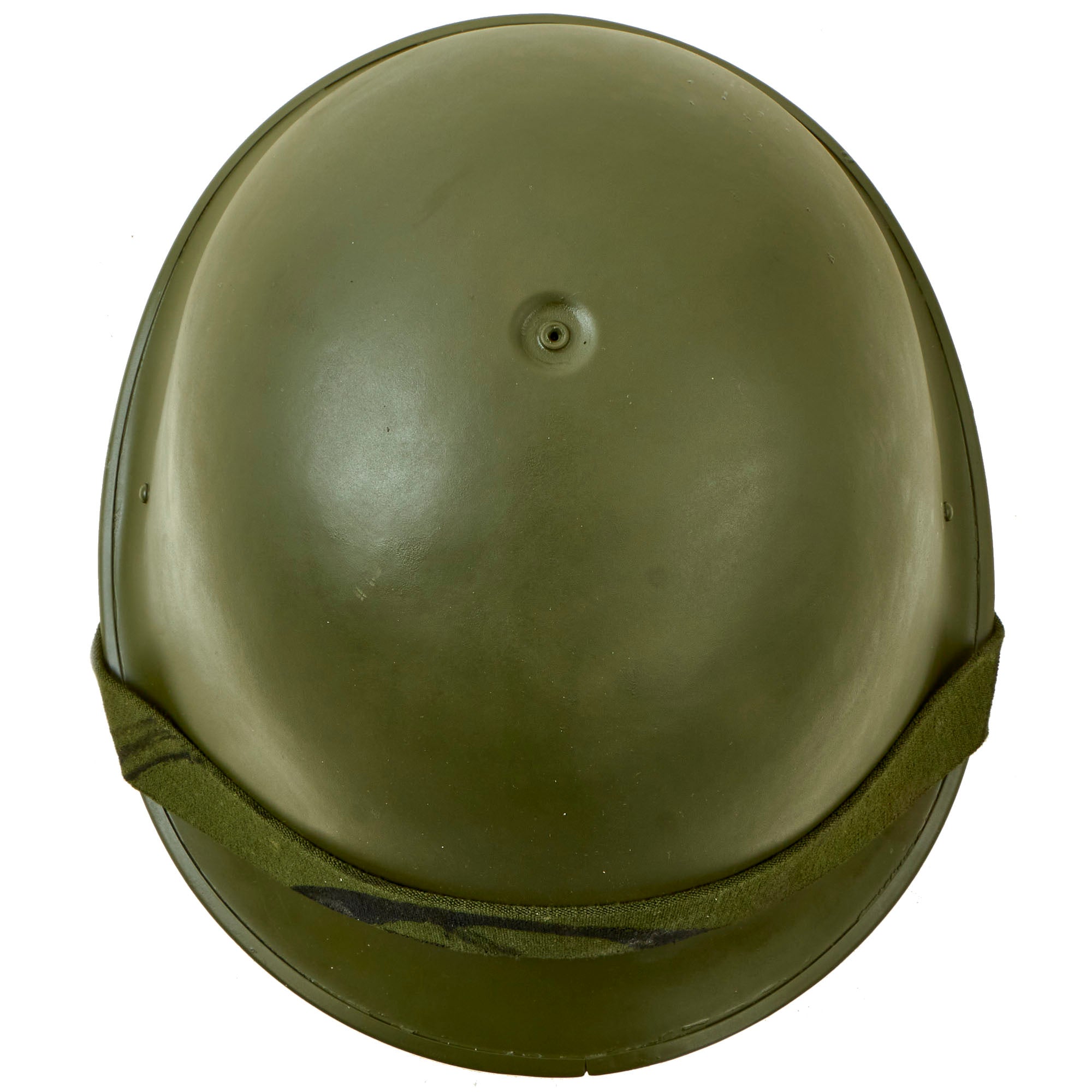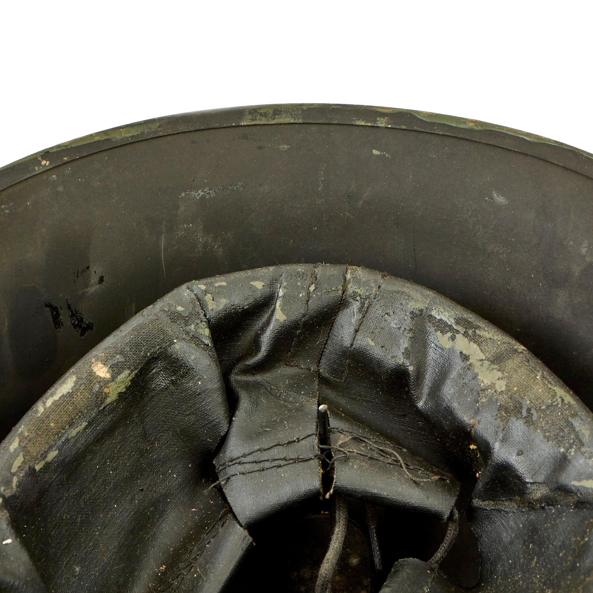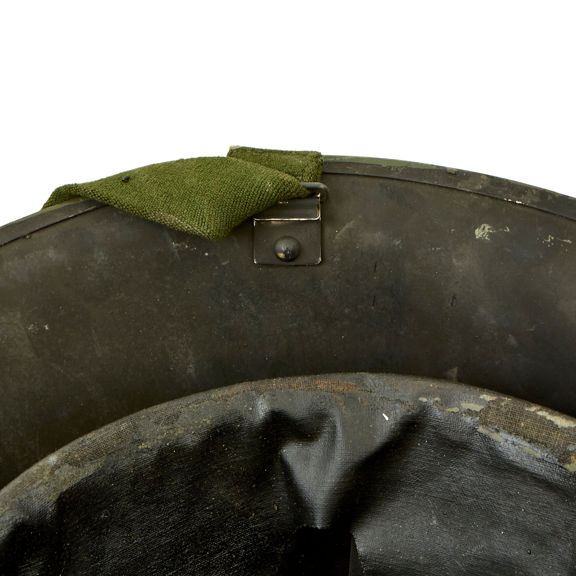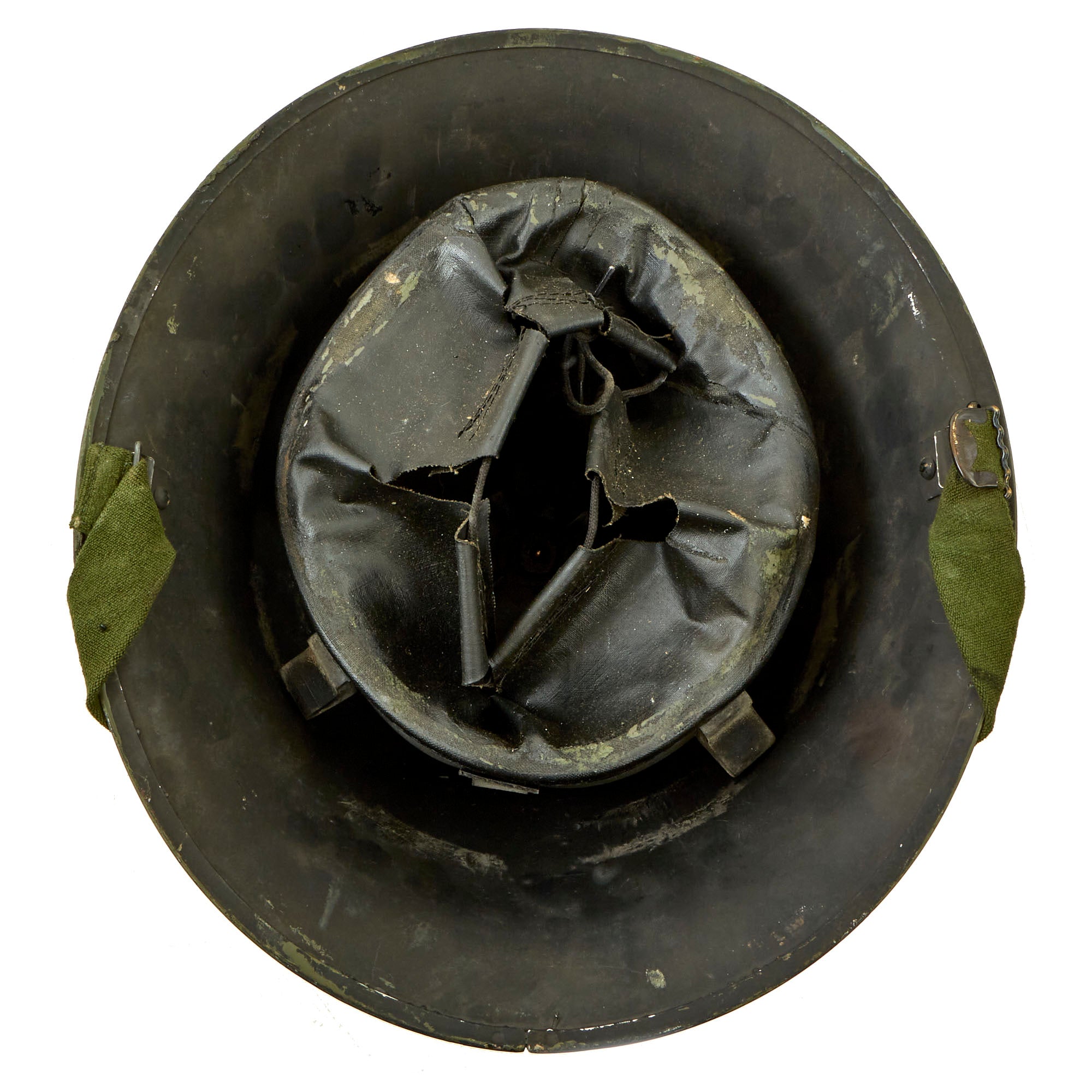 Original Item: Issued for use in the D-Day invasion of Europe in 1944; this is the next steel helmet pattern to be adopted by the British after the Dough Boy style of WWI. In use through the close of WWII and in regular use through Korea and the Falkland war.