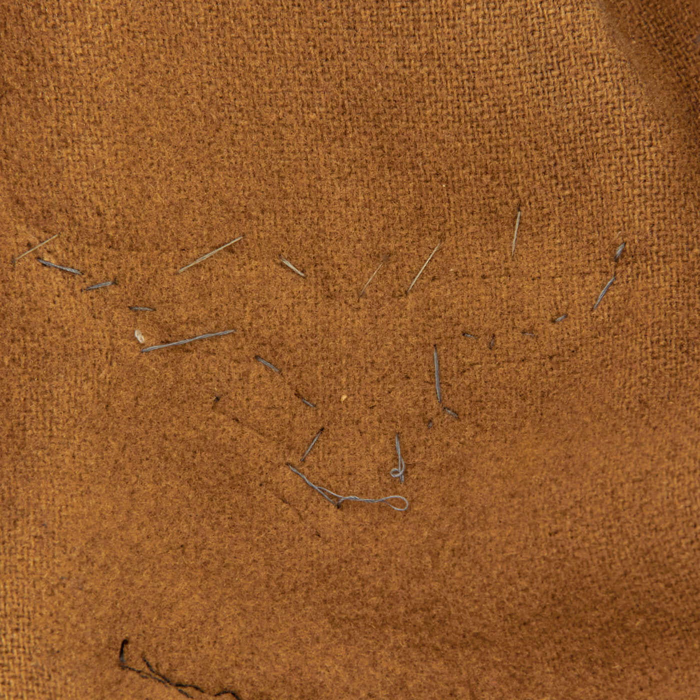 The jacket features a vertical front double row button closure, and the front features two slanted pockets on each side, which are secured with buttons matching the main closure. There are also button closures for the ends of the sleeves for a more snug fit. The lay down collar has a button under the right side for securing the top of the closure when used in flight as opposed to on the ground. The buttons are all bakelite, and do not look to have any maker markings on them.