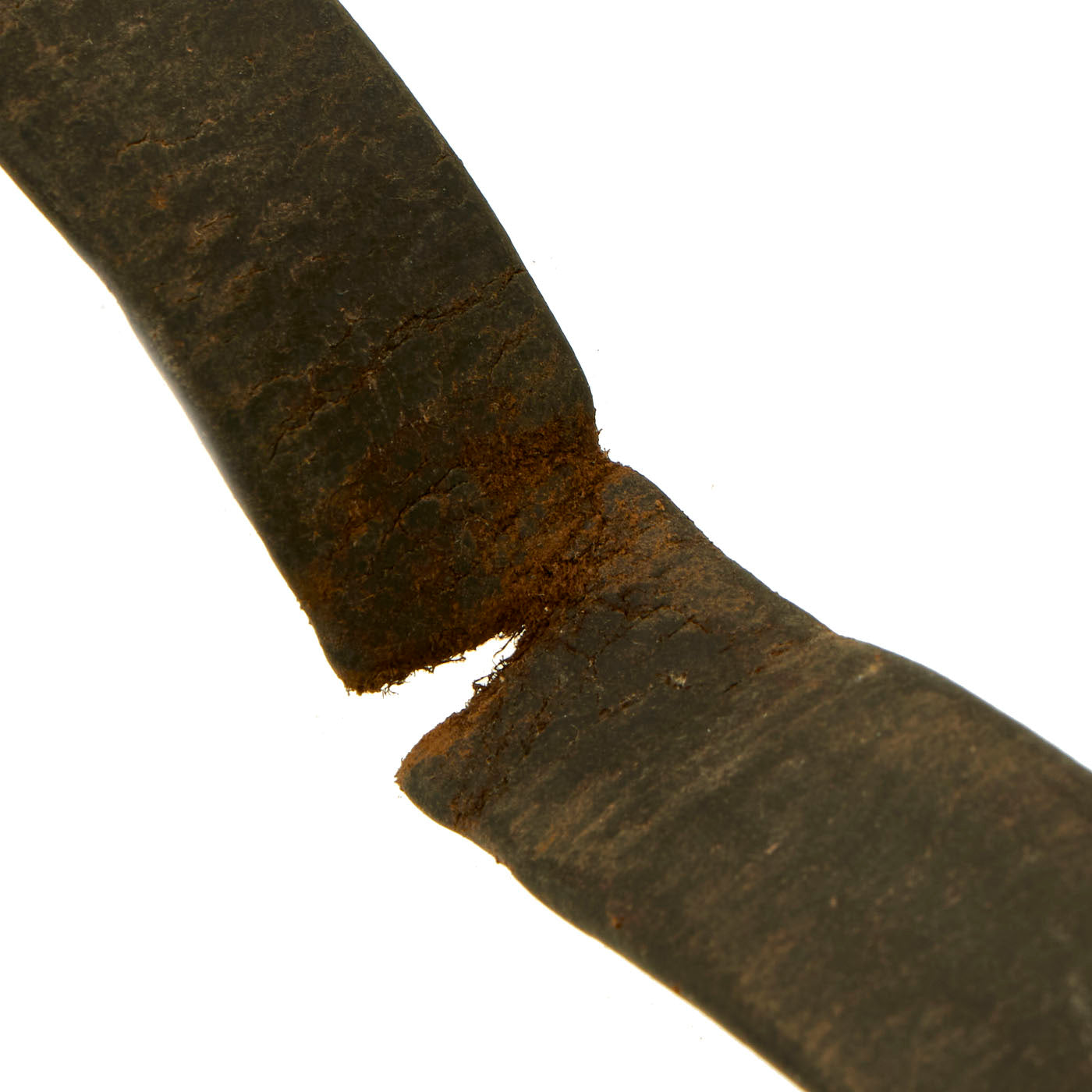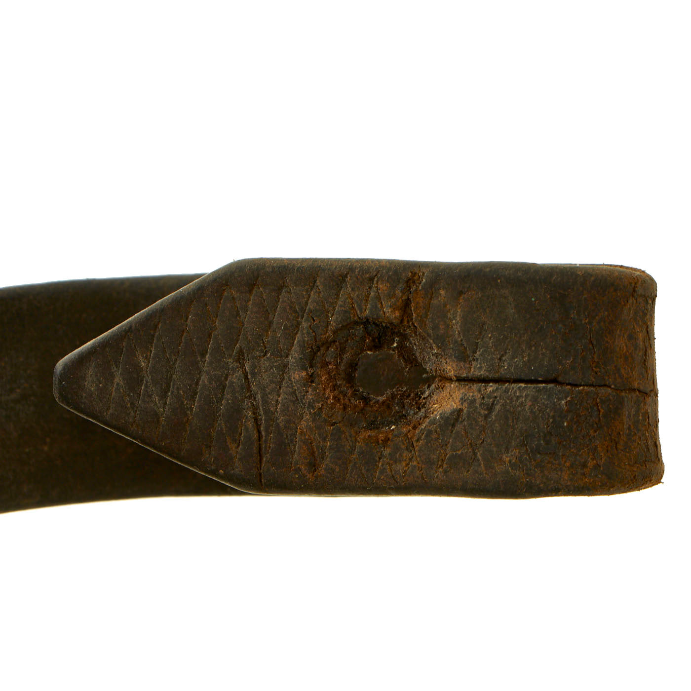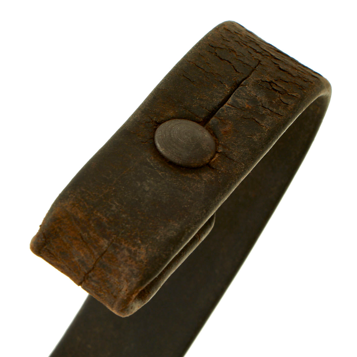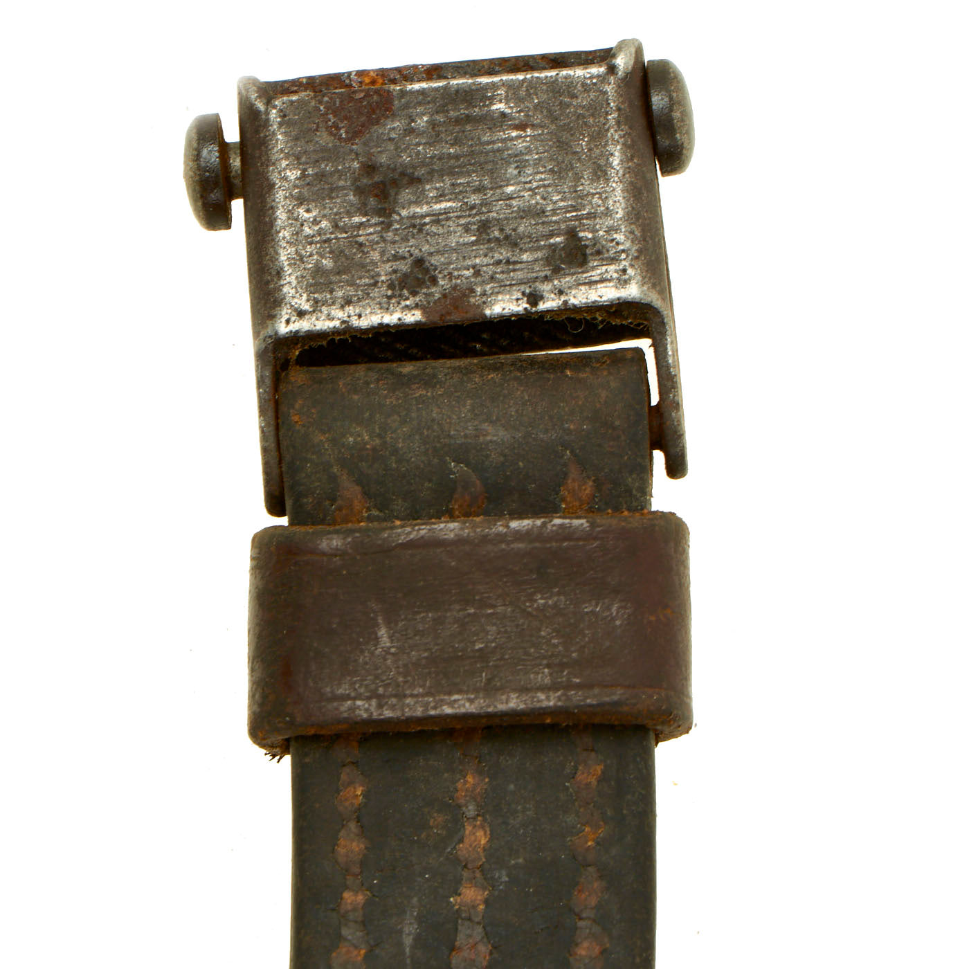 The slings are made of thick brown crosshatched leather with steel hardware. Each sling is fitted with its original steel sliding buckle. The slings are in good, serviceable, condition Some slight variation should be expected with the slings. Some may have original markings, some have reproduction markings, small slight nuances with hardware, and so on.