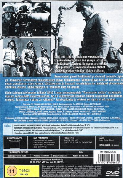 Synopsis; ?It is the summer of 1941. An eastern-Finnish machine gun company receives an order to turn in their surplus equipment. The company is transferred to the front lines. The next morning the soldiers wake to the sound of guns - the war has begun. The Finnish troops attack and quickly move across the border. The young, nervous rookies of the company get their baptism of fire, and the men become familiar with death and the hardships of war. Under strength and badly equipped they fight a superior enemy. The lists of heroes and of the dead seem endless. Edvin Laine's epic interpretation of V?in? Linna's war novel "Tuntematon Sotilas" is an entire chapter in the book of Finnish movie history.? Written by Peter Lagerstrom