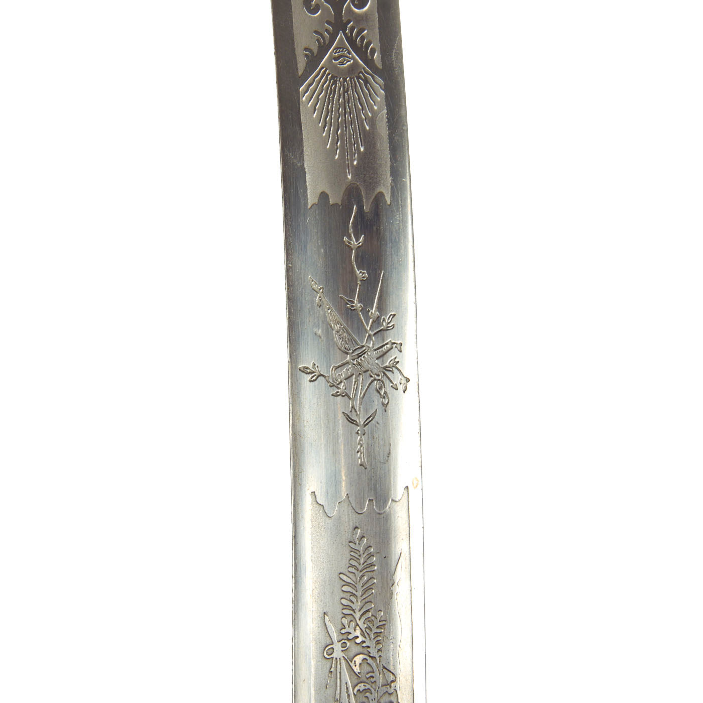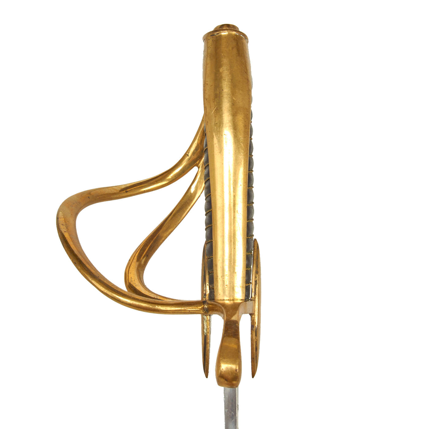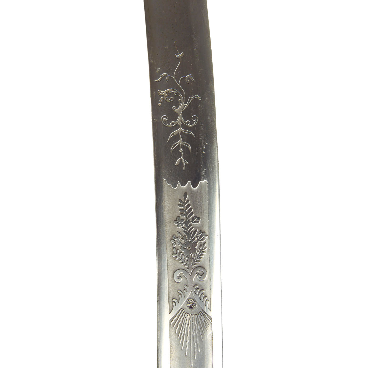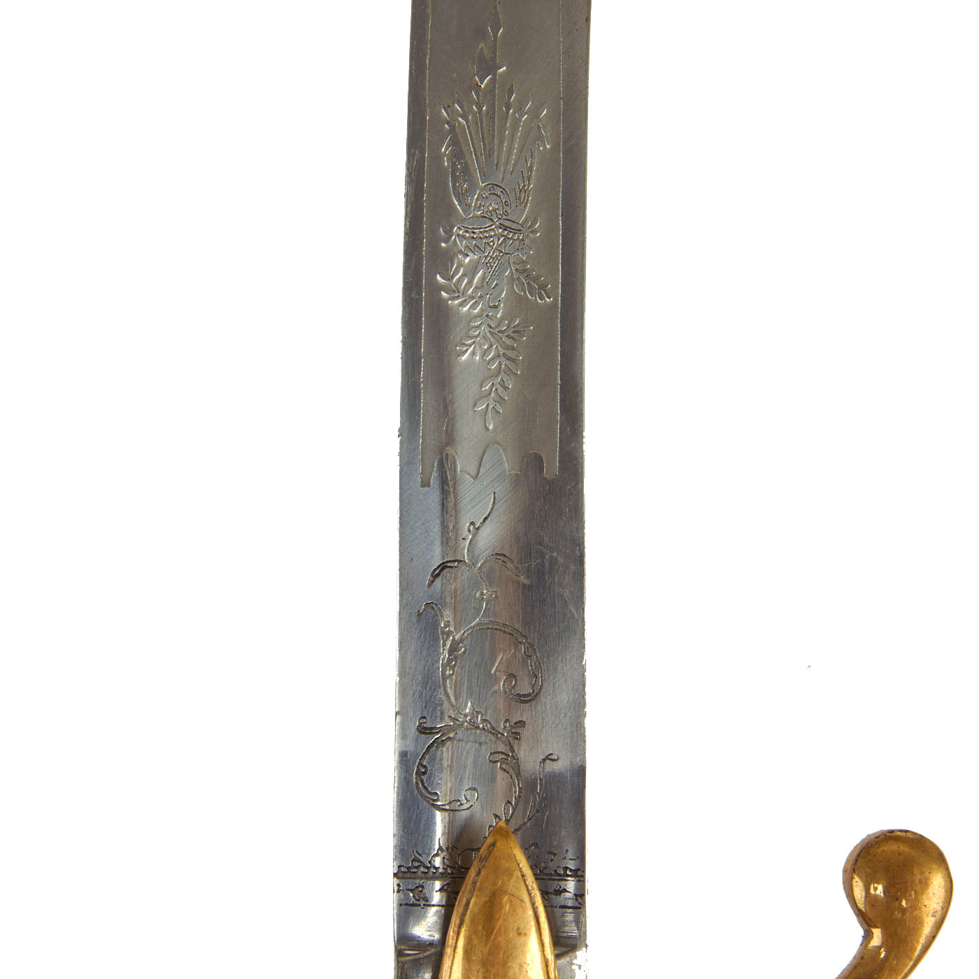 New Made Item: Heavy Brass three bar hilt. Massive curved blade with French Inscription. Compete with all steel scabbard.