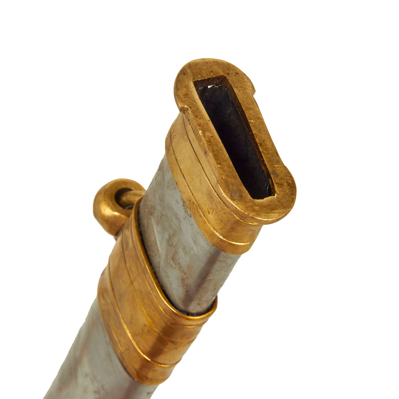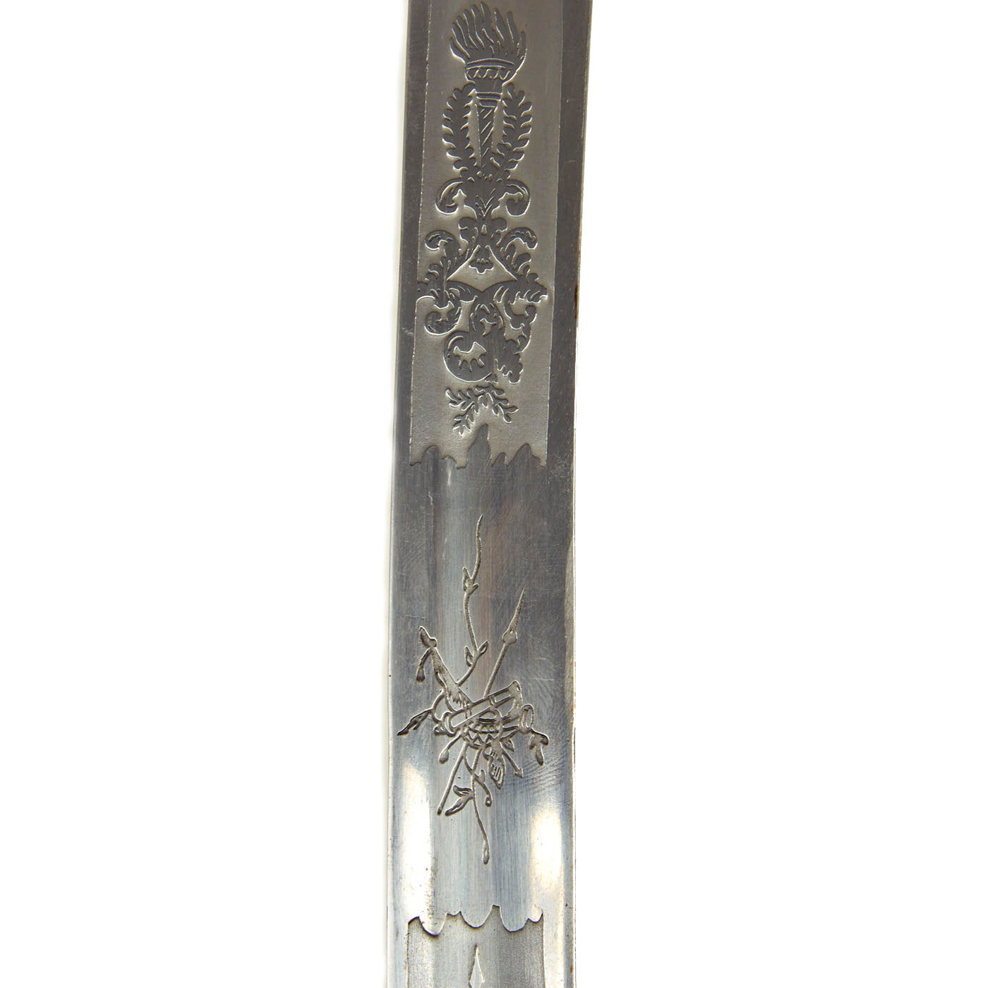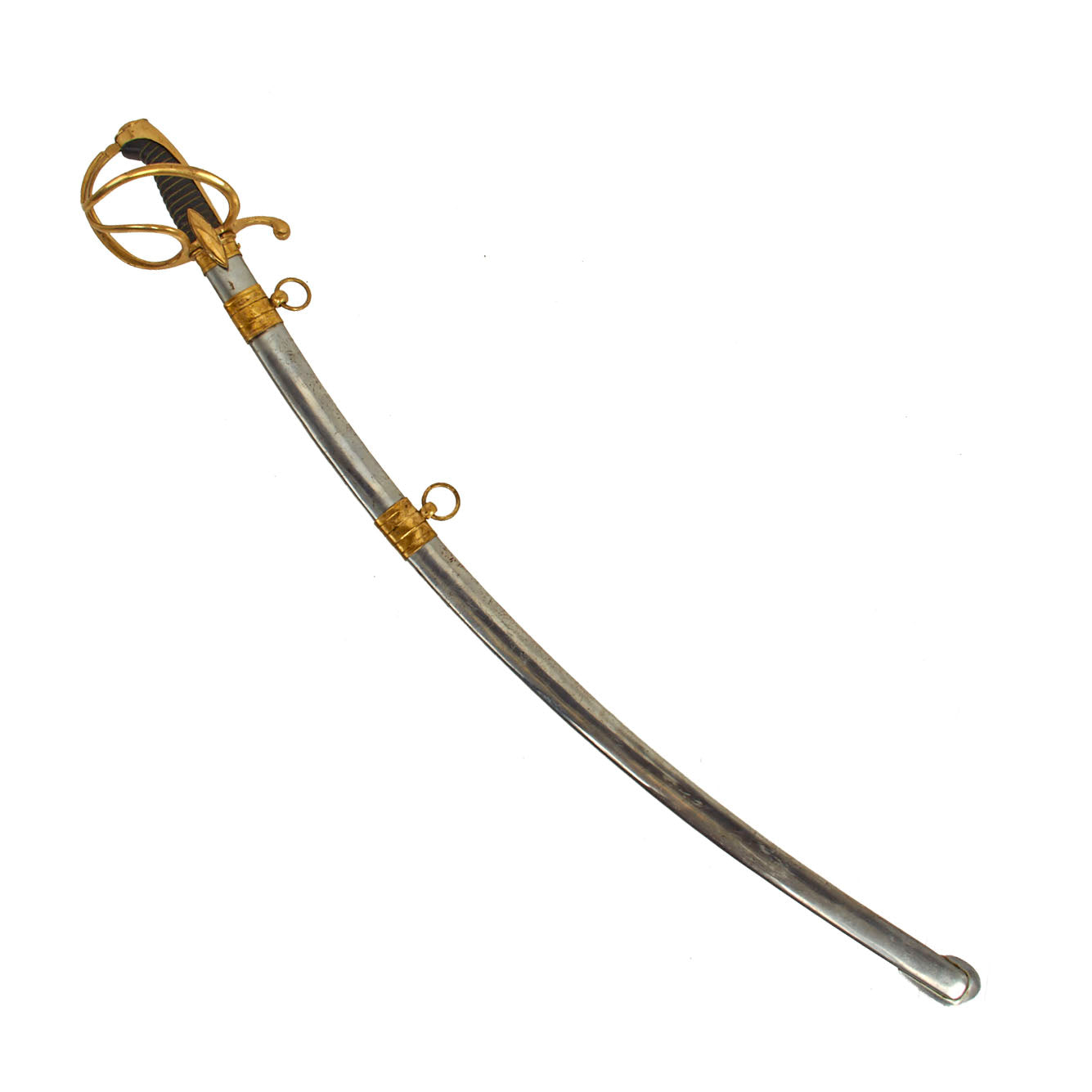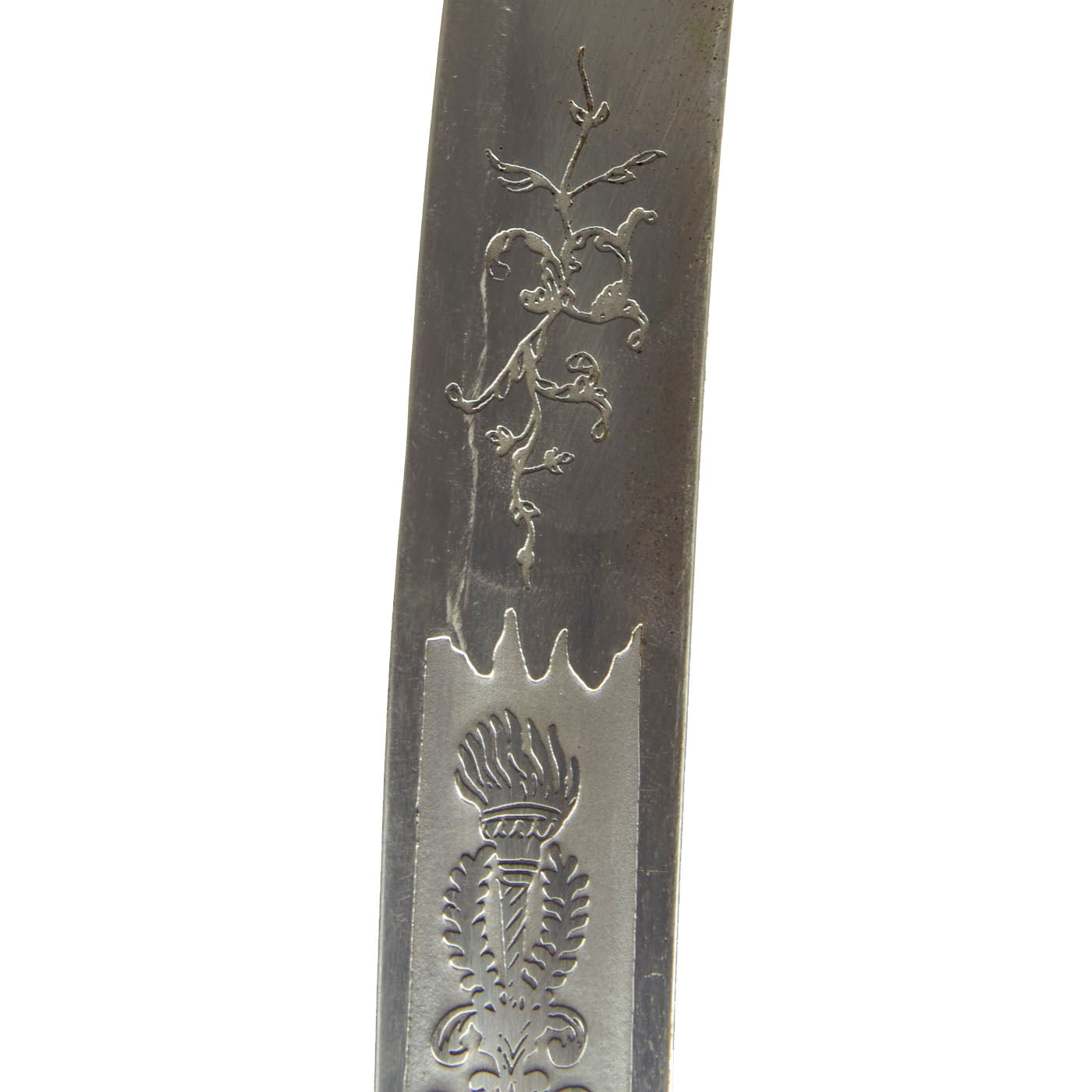 New Made Item: Heavy Brass three bar hilt. Massive curved blade with French Inscription. Compete with all steel scabbard.