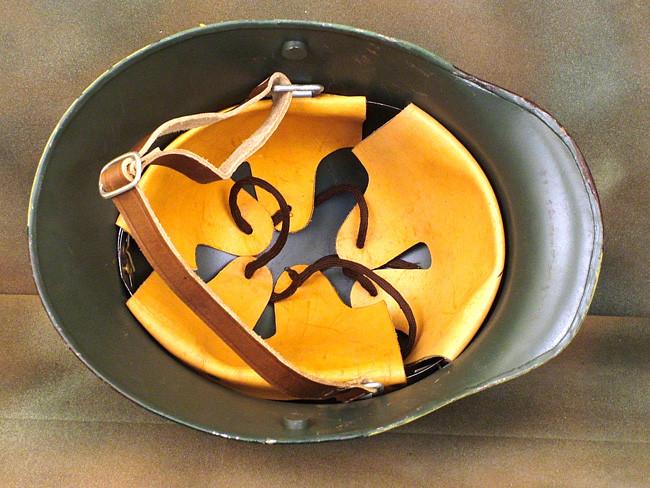 New Made Item: This is a reproduction of the classic German WWI M-1916 Coal Scuttle Helmet fitted with the model 1918 leather liner and chin strap. EXCELLENTLY MADE!