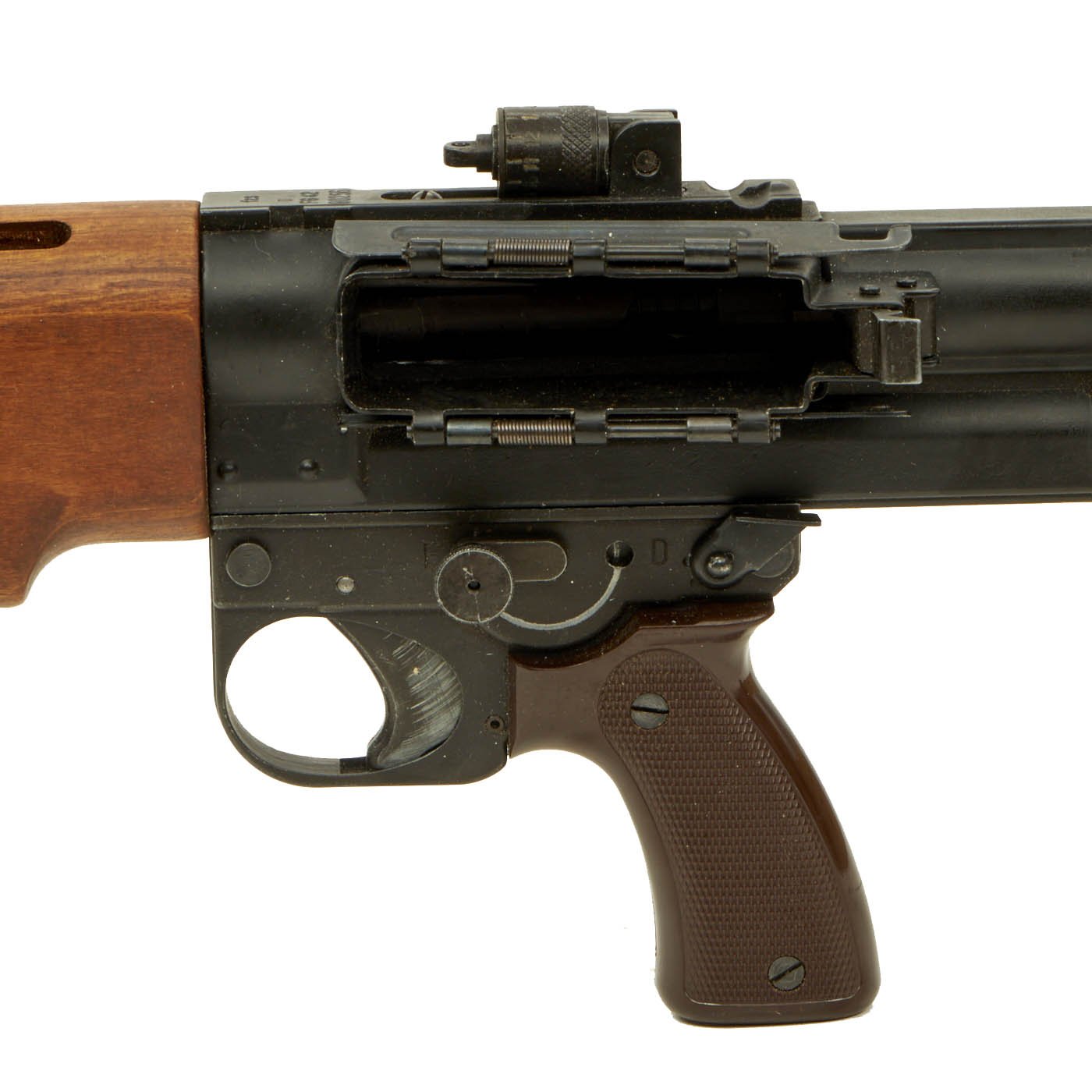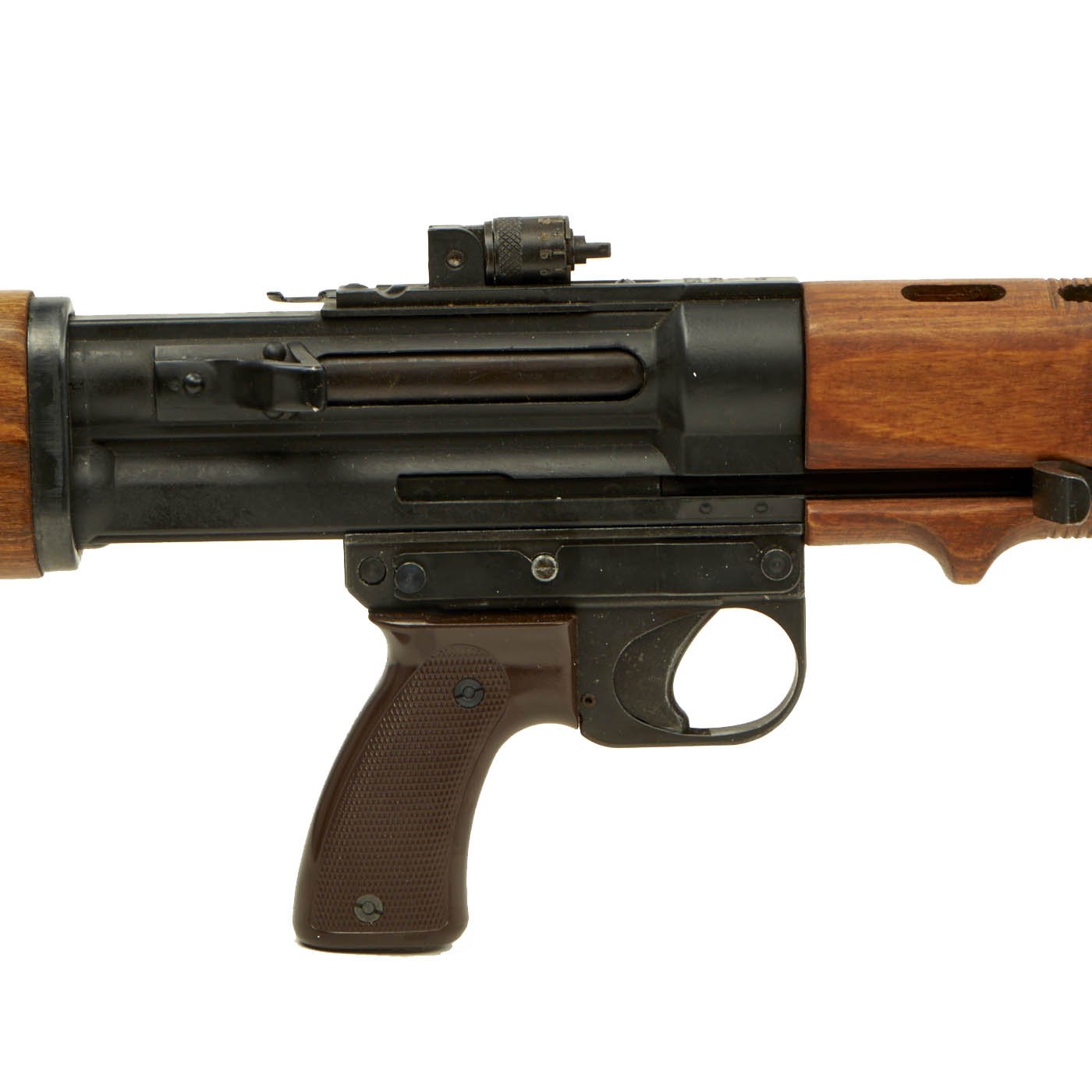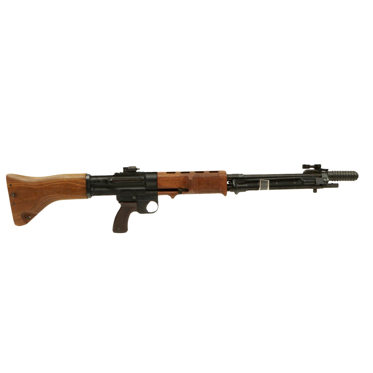 This example is Serial #00256, with a 20 1/2" barrel. This replica is not capable of being fired. The rifle is made of metal parts which are in excellent condition and have very little to no handling wear. The top of the receiver plate is marked "fzs/u", similar to the original German markings. The laminate wood forearm and buttstock are excellent and rifle features a brown plastic pistol grip. Other features include flip-up front and rear sights, and a folding bipod. The original box is included with two magazines.