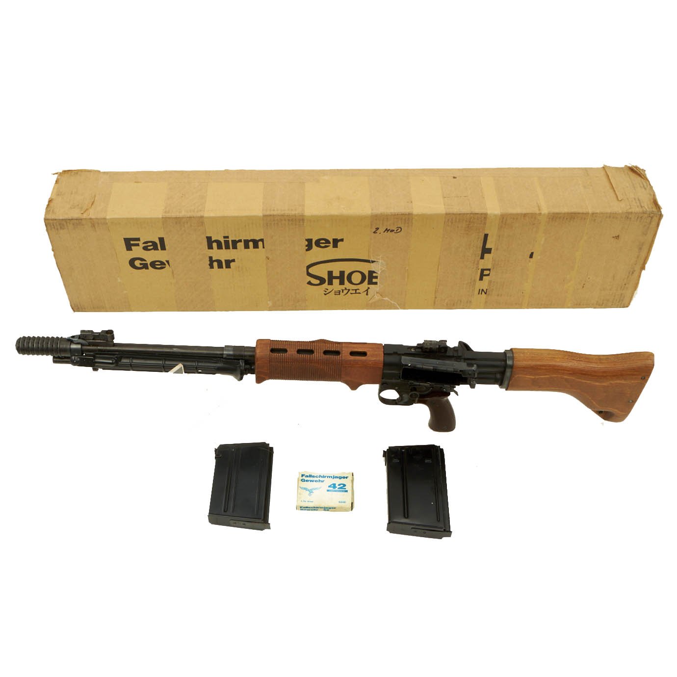 Japanese company Shoei manufactures the highest quality most accurate machine gun replicas on the market today. However, their FG42 has been out of production for many years. When it original came to the market the retail value was $2500. Now that no more are available these have become nearly impossible to find and deactivated original FG42 are never encountered and the one that did emerge in the UK in the early 2000s sold for over $30,000.