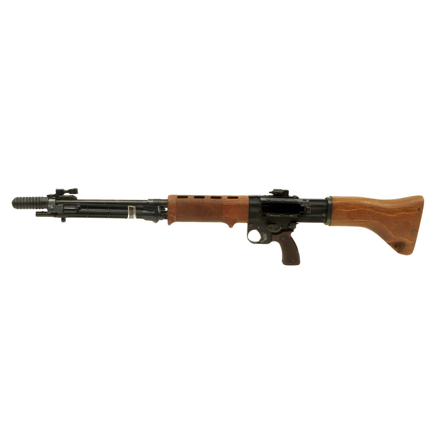 Replica Item: The FG 42 (Fallschirmjägergewehr 42, "paratrooper rifle 42") is a selective-fire 7.92×57mm Mauser automatic rifle produced in Germany during World War II. The weapon was developed specifically for the use of the Fallschirmjäger airborne infantry in 1942 and was used in very limited numbers until the end of the war.