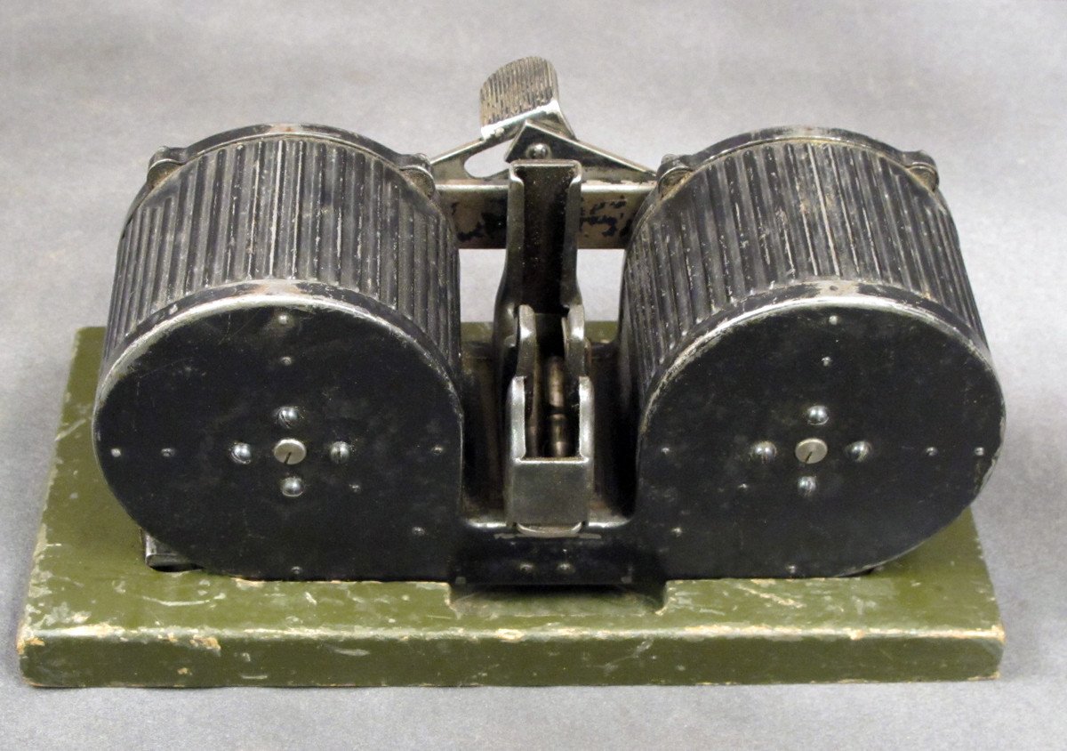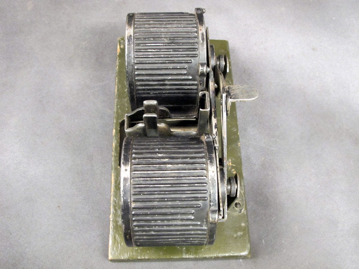 Original Item: Only one set available. Included in this set is a German WWII MG15 75 round Saddle Magazine with Prestof carry handle serial numbered and coded WA 41. Together with an original loader that consists of- Original Wooden Loading Tray, Cartridge Chute and Cranking apparatus to turn the two magazine springs in opposite directions at the same time. This original accessory is nearly impossible to find.