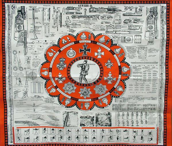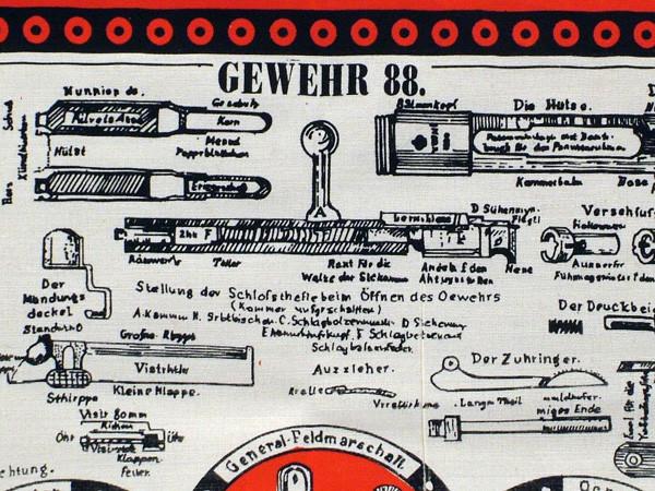 New Made Item: This is an exact copy of the German cloth soldiers scarves issued in the late 1800s showing the complete breakdown of the German Mauser 1888 Rifle . These cloth scarves stood up to the weather and provided prolonged service as an instructional tool as well as a uniform accessory. Quality reproduction with nicely hemmed edges. Great display items.